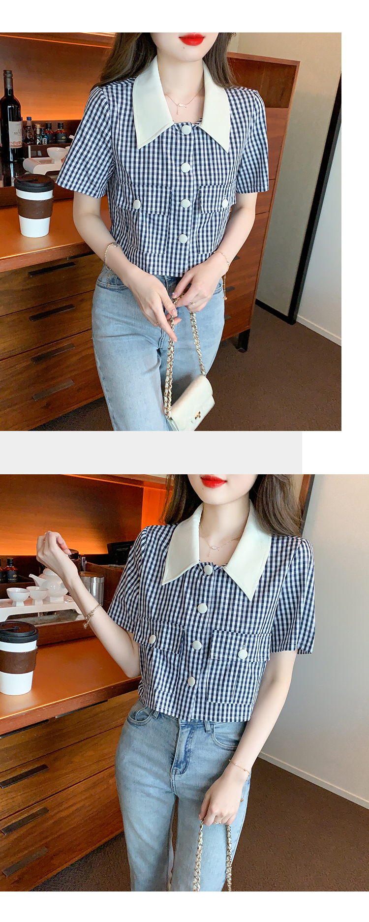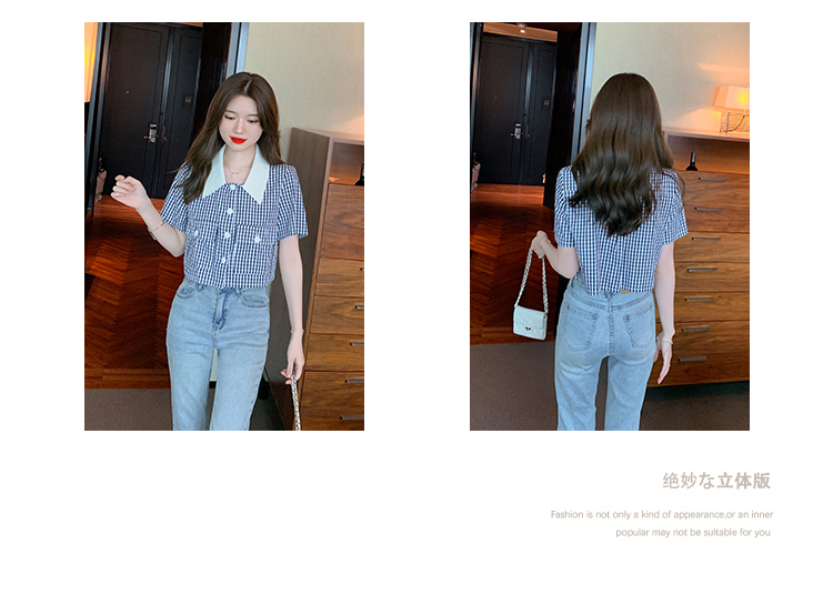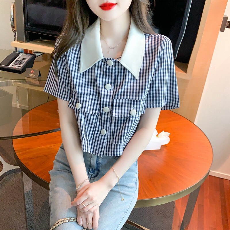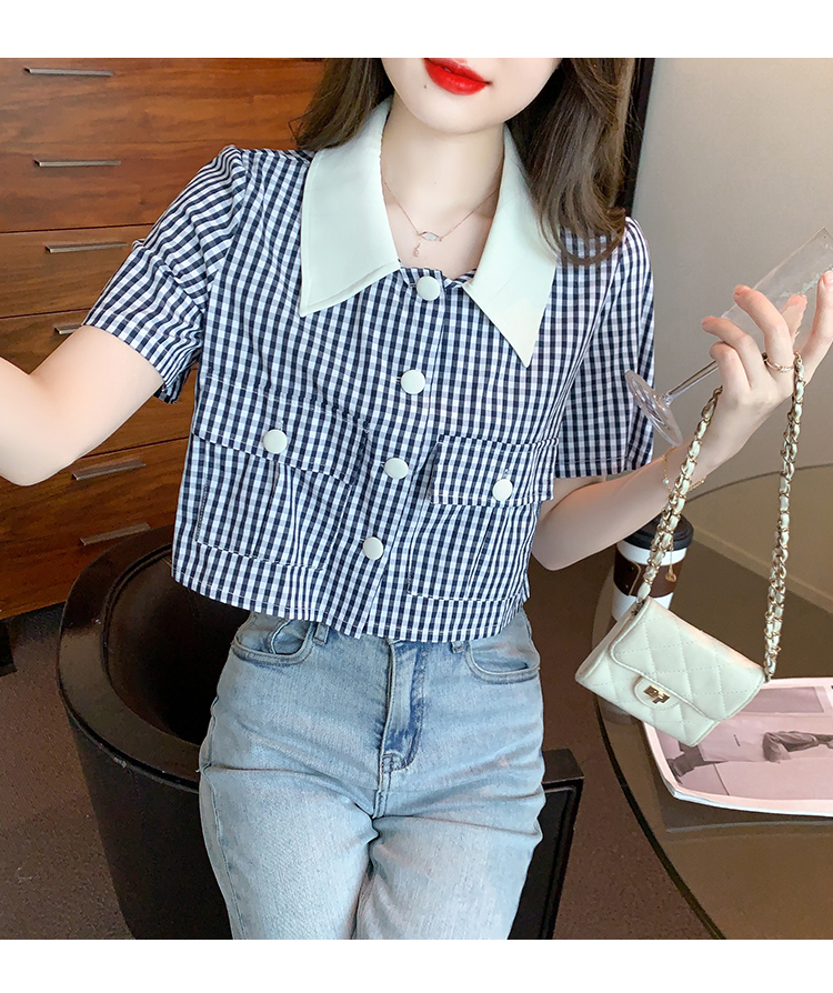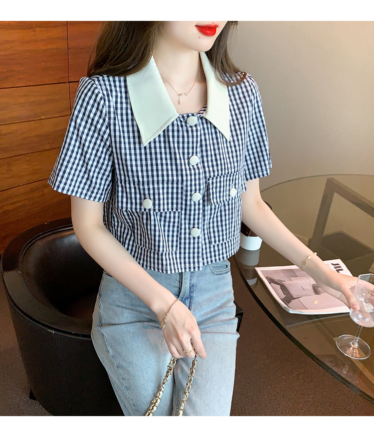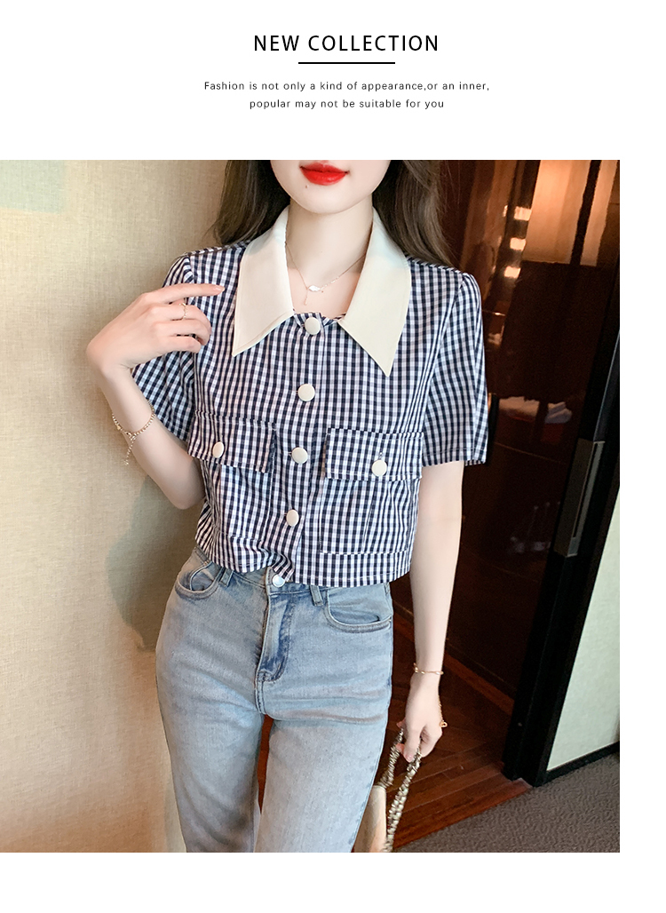 限量特惠|小清新甜美撞色翻領格紋襯衫(04H3491)