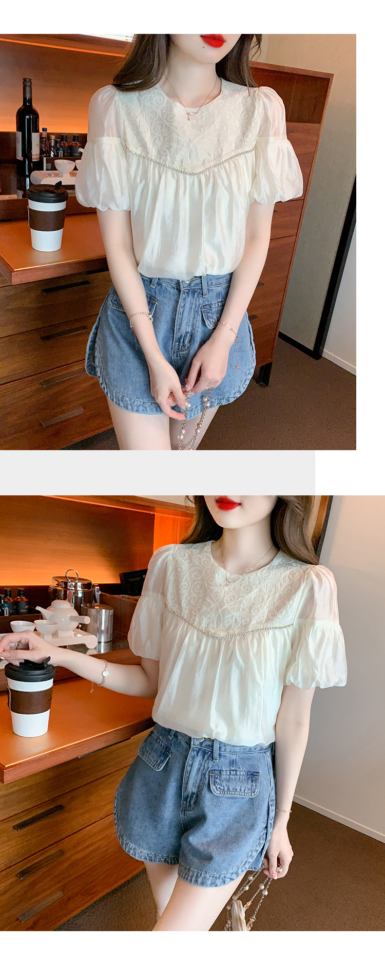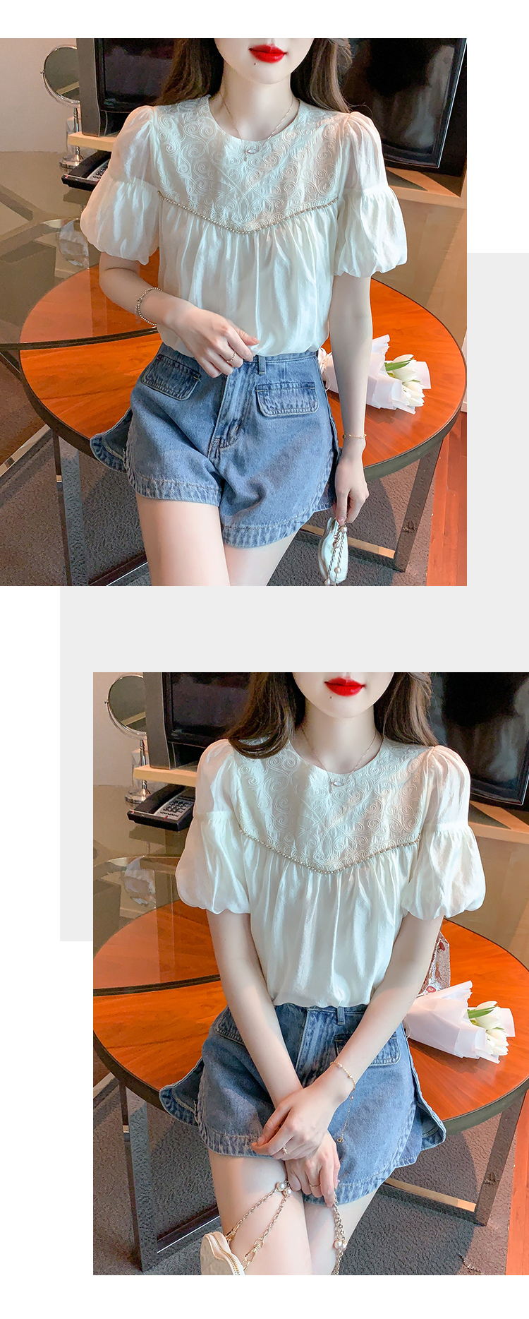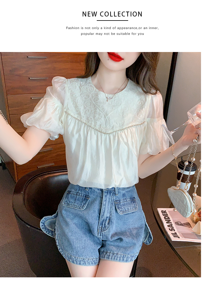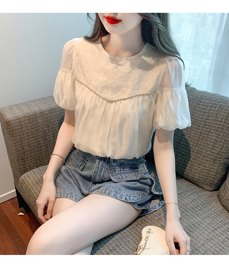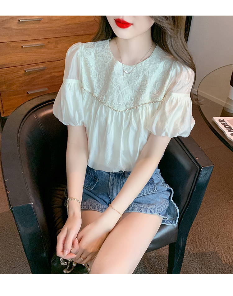 限量特惠|甜美清新刺繡雪紡衫(04H3497)
