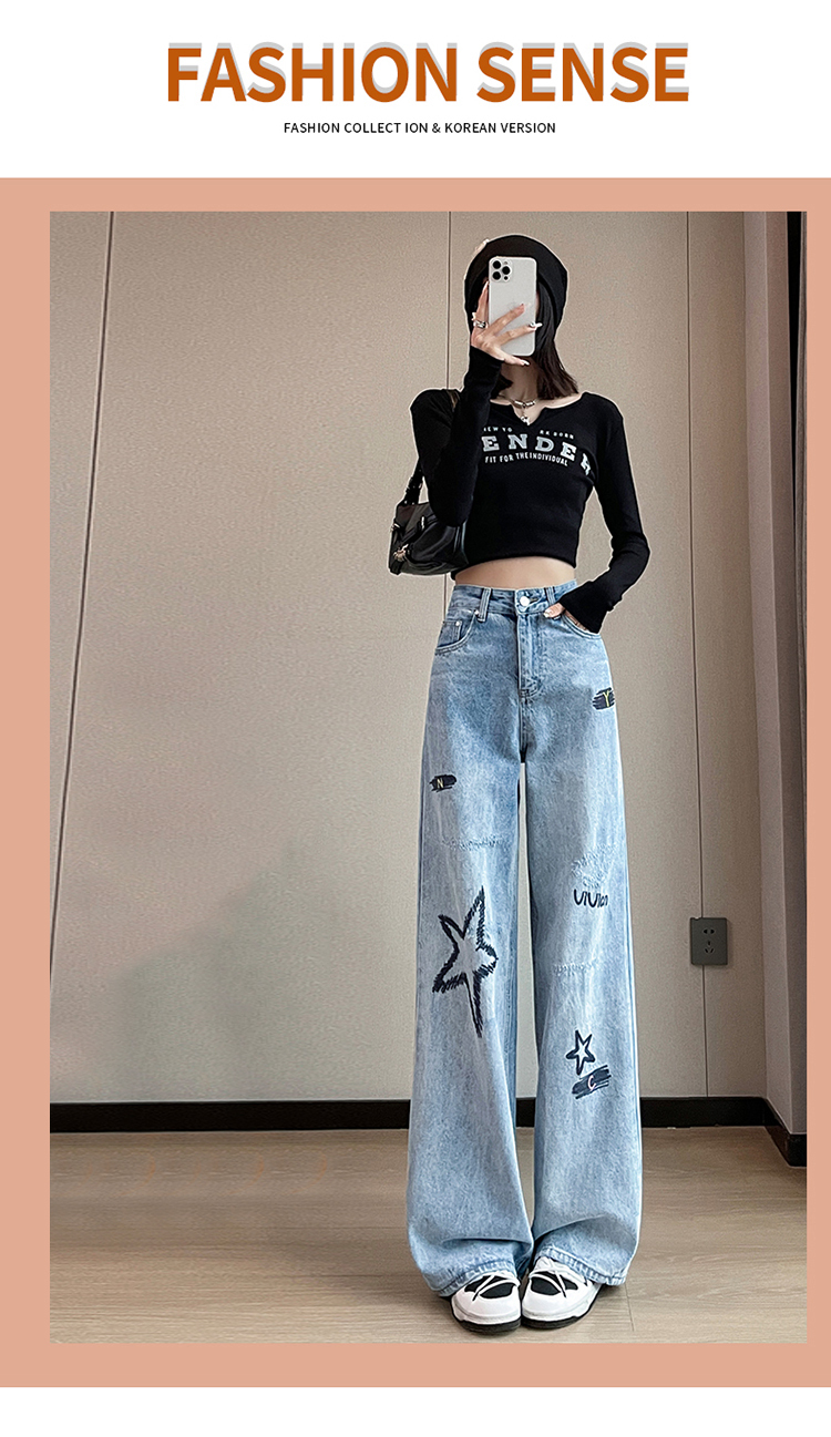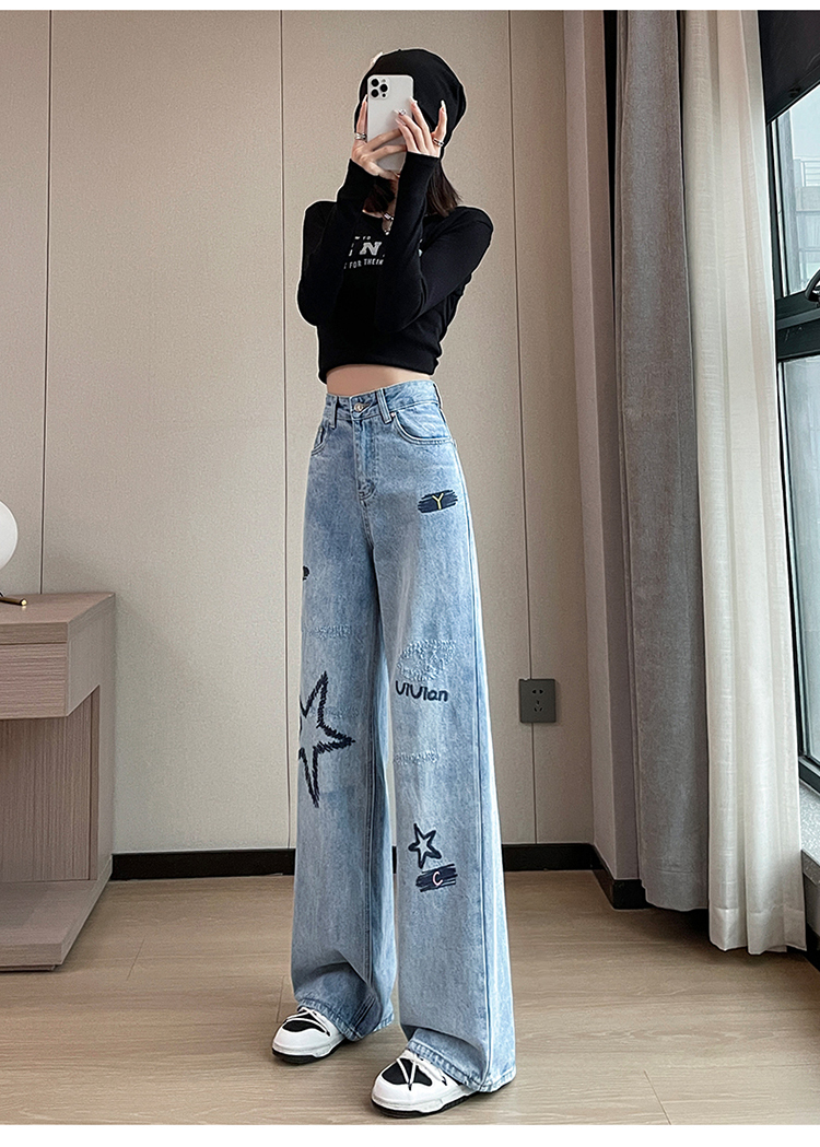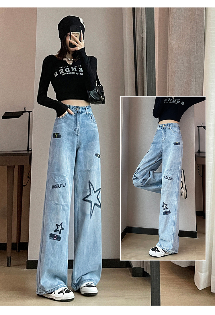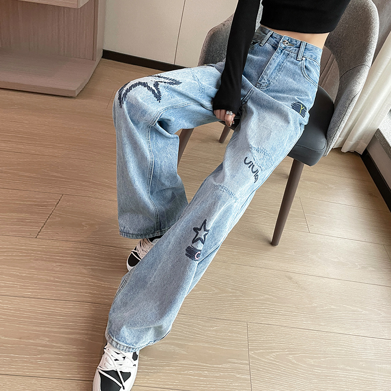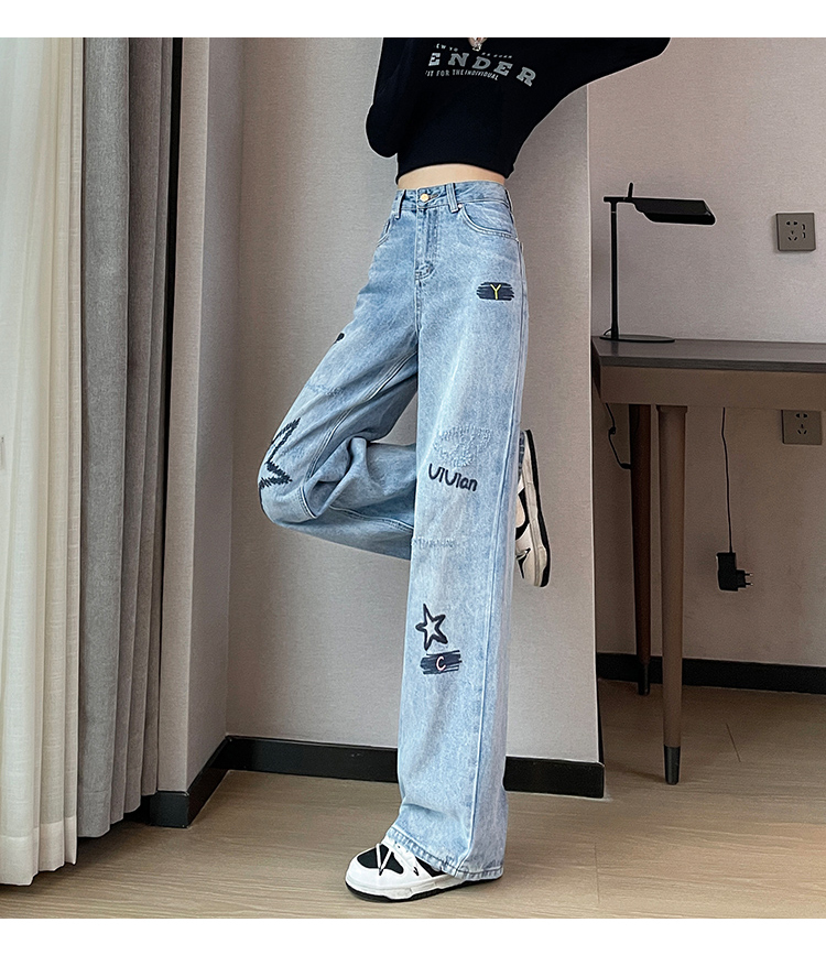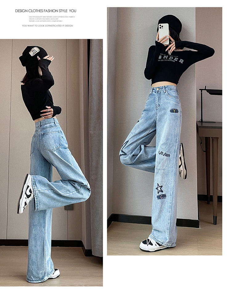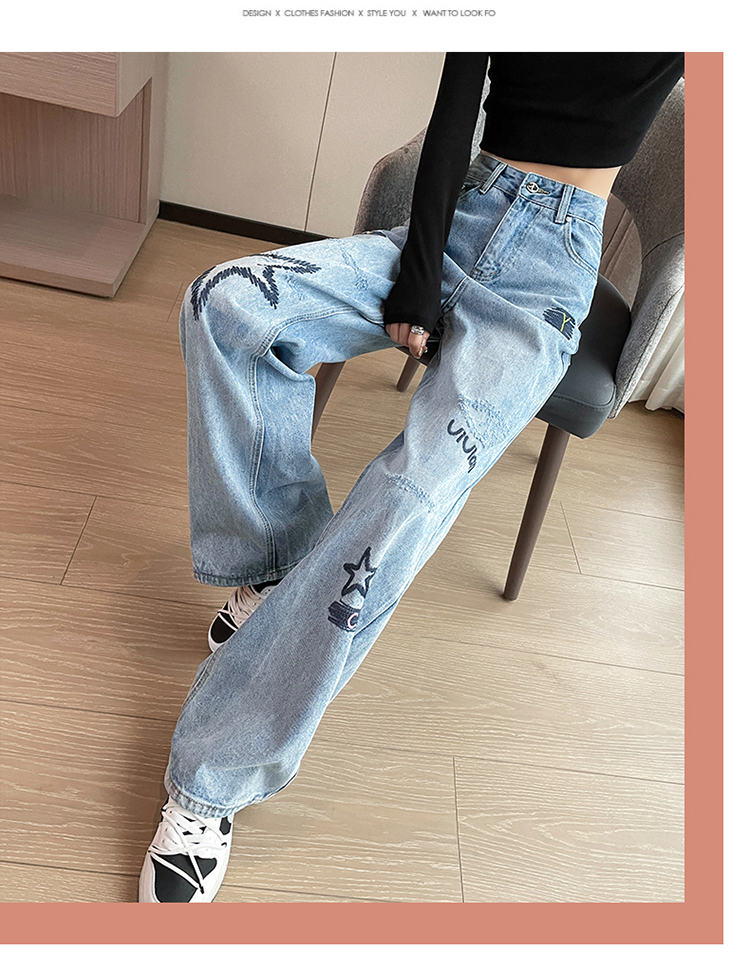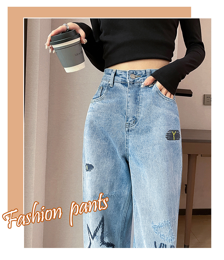 限量特惠|個性刺繡造型牛仔寬褲(04H3504)