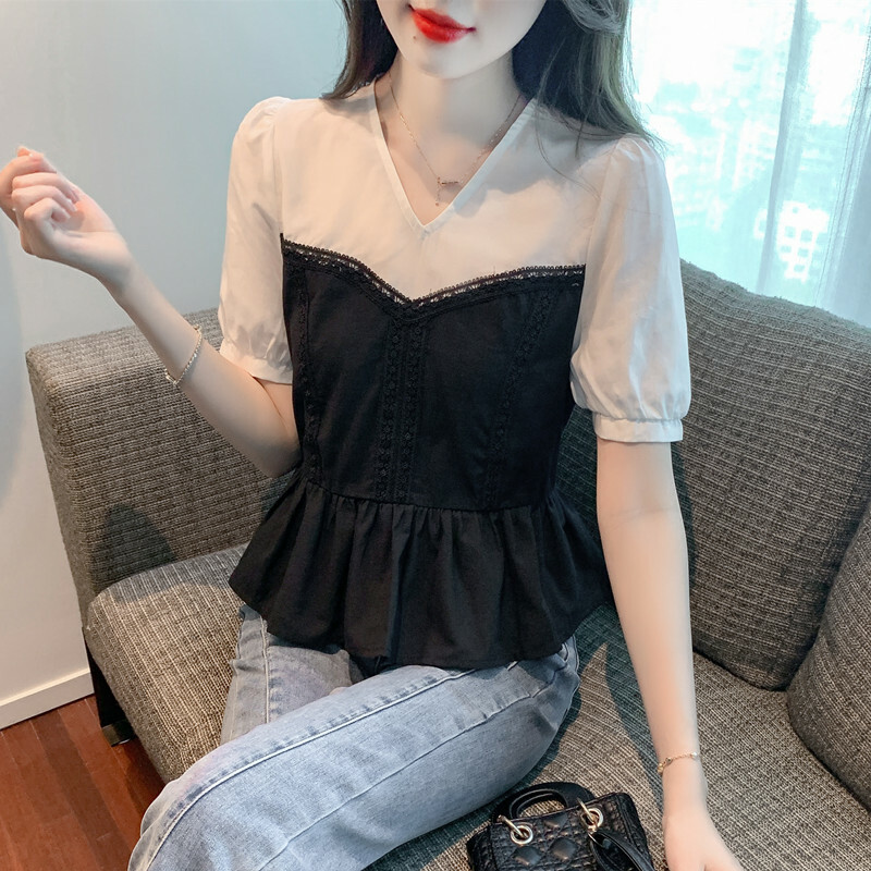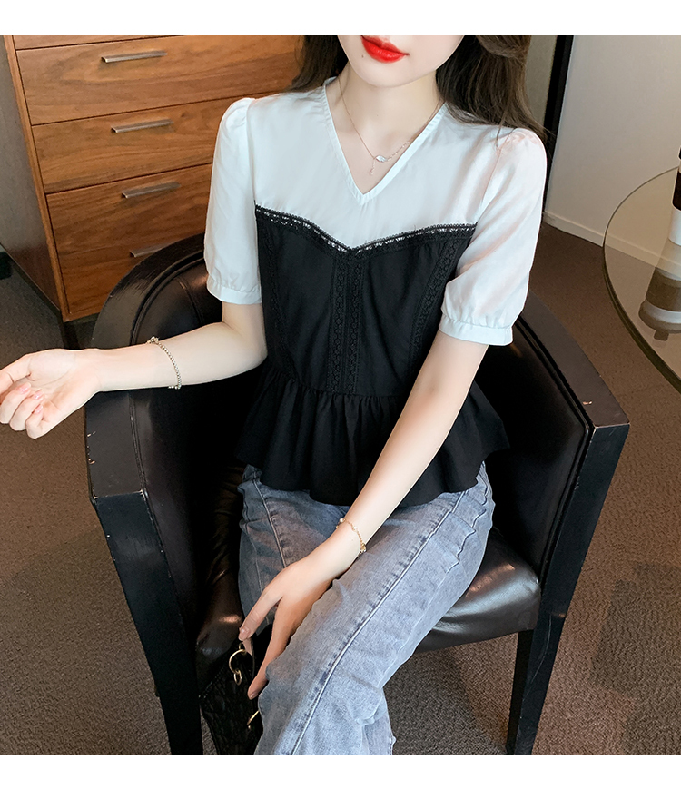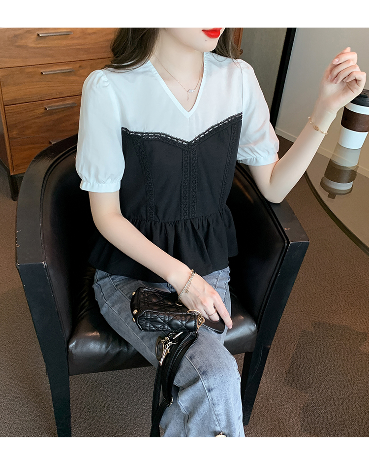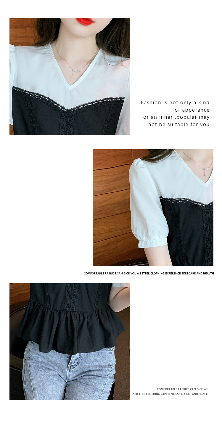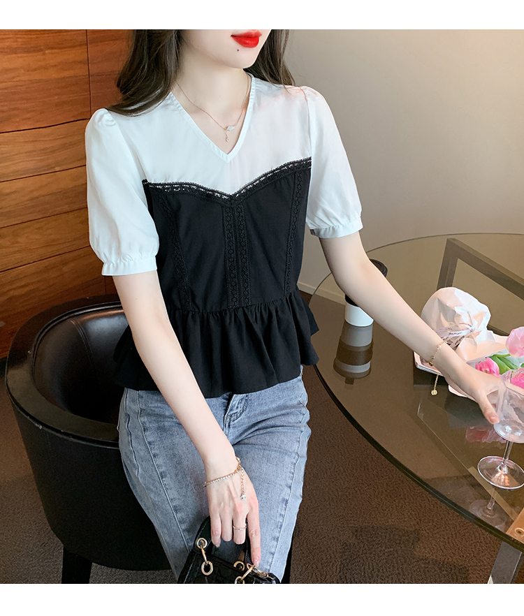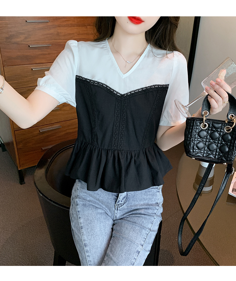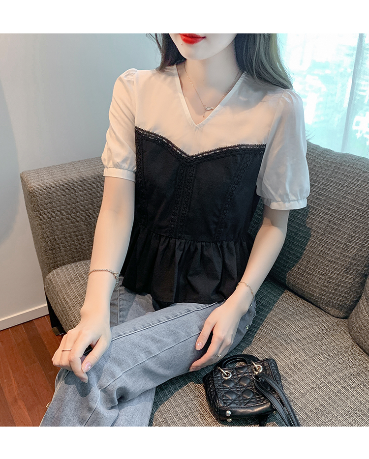 限量特惠|舒適氣質拼接刺繡撞色收腰上衣(04H3518)