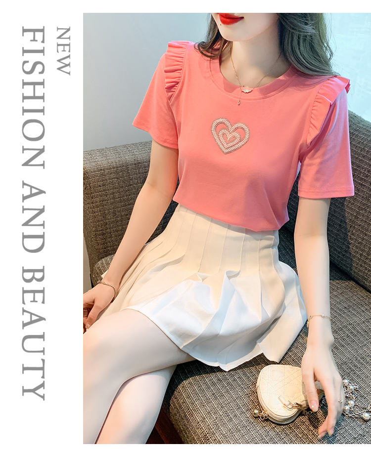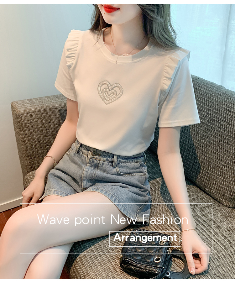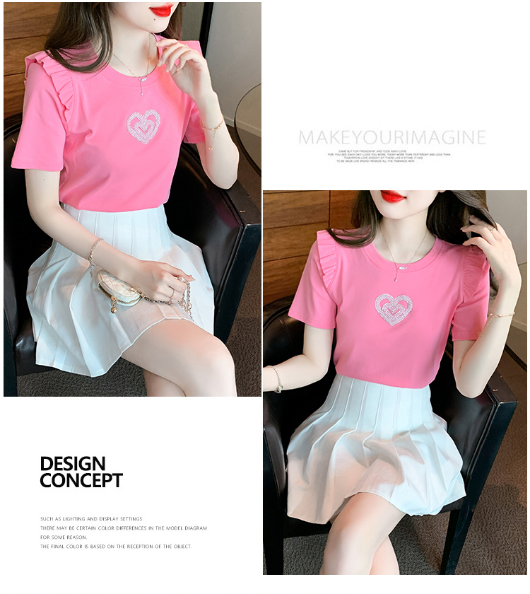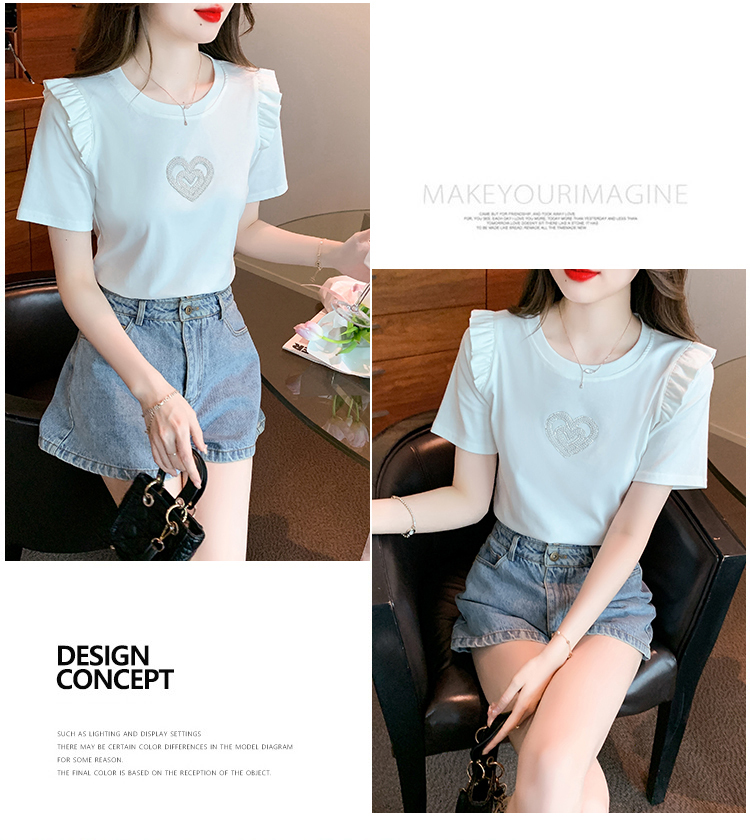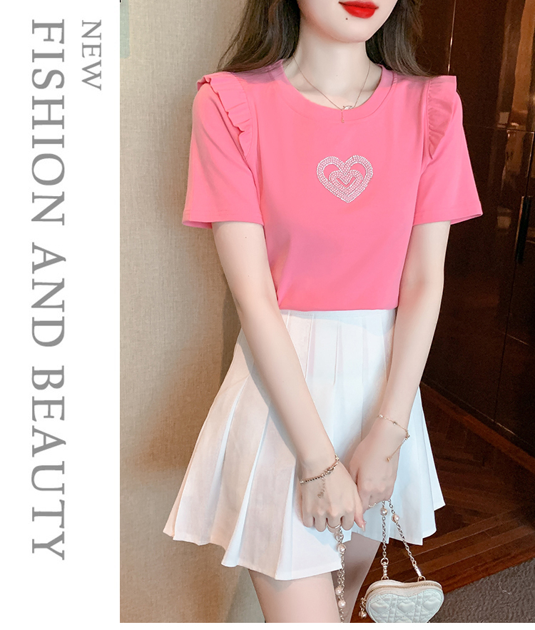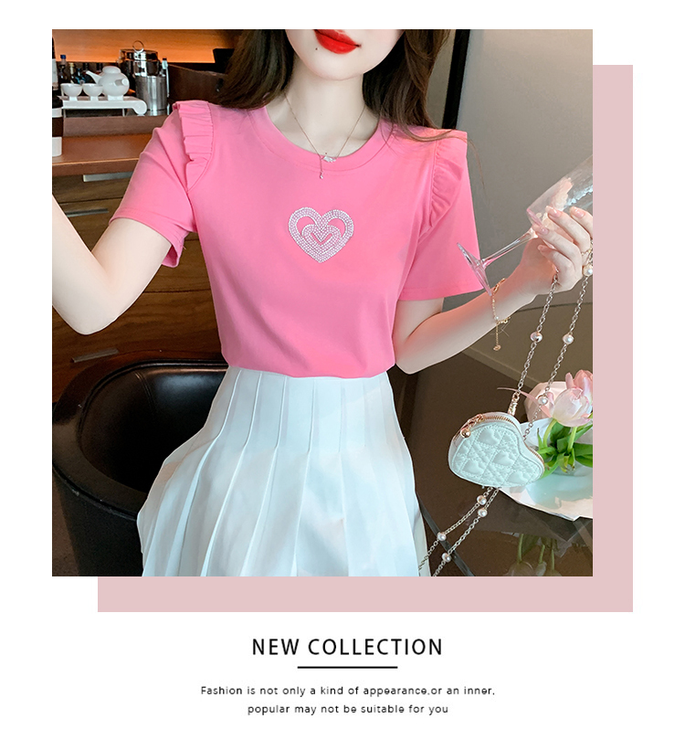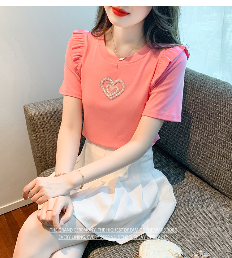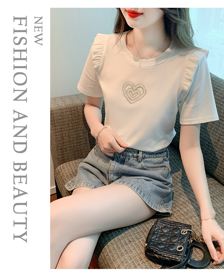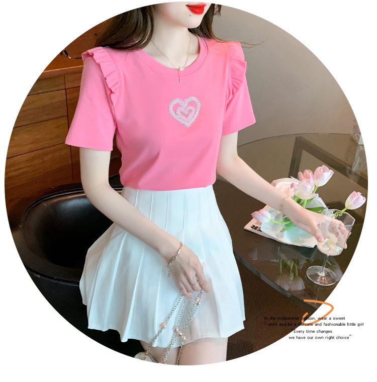 限量特惠|甜美拼接荷葉邊愛心燙鑽T恤-2色(04H3540)