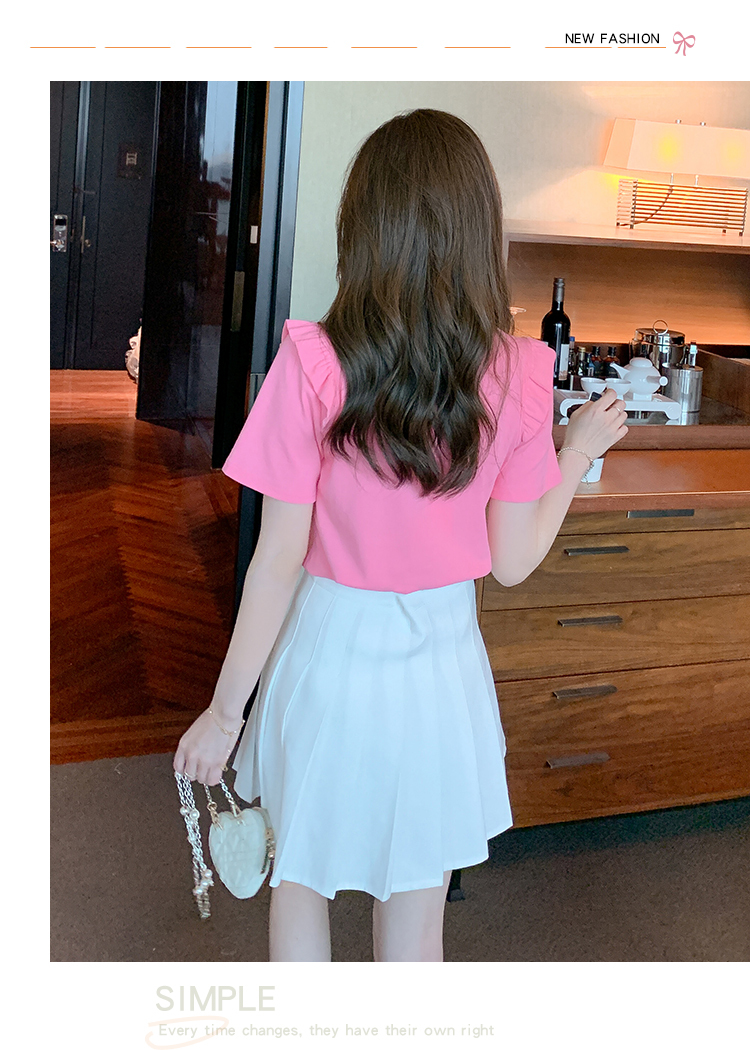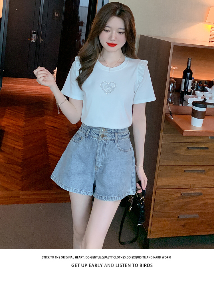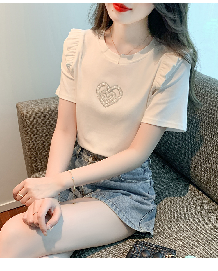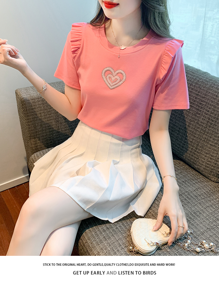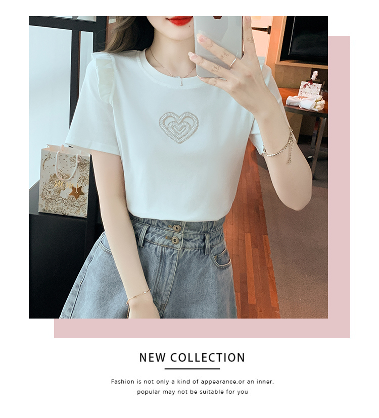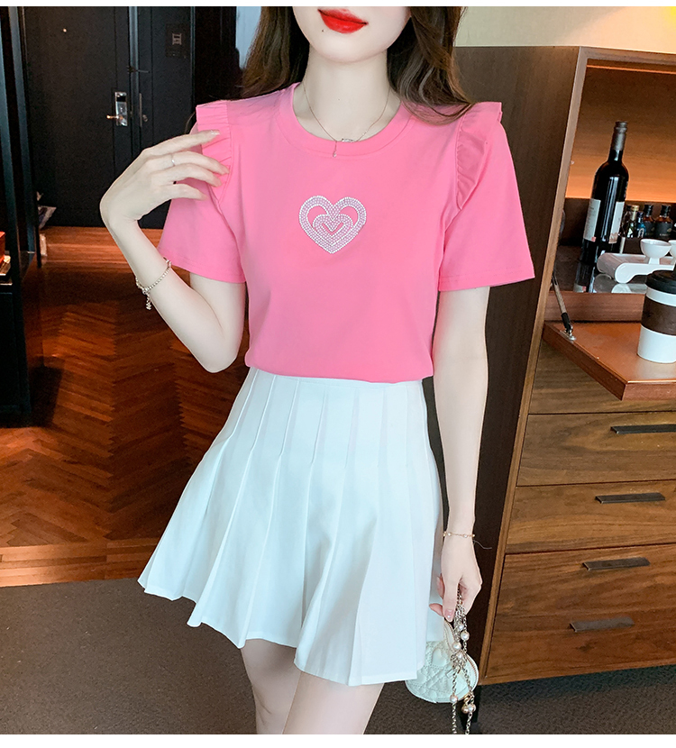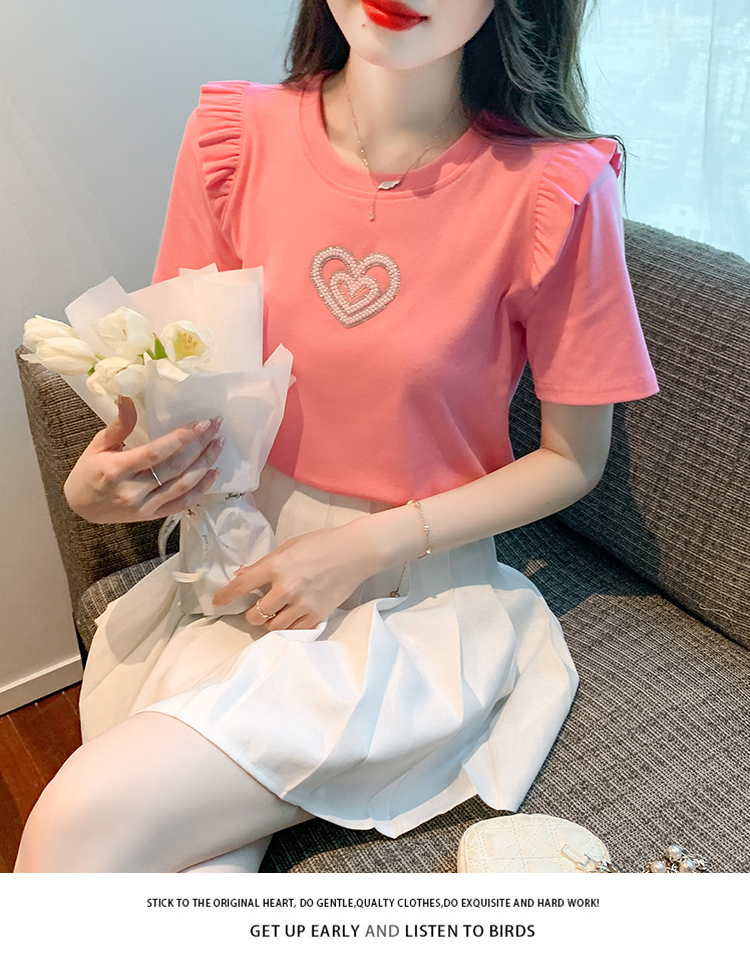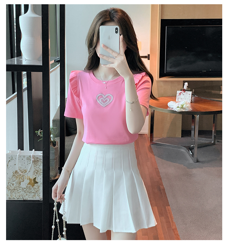 限量特惠|甜美拼接荷葉邊愛心燙鑽T恤-2色(04H3540)