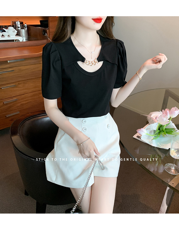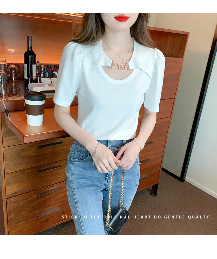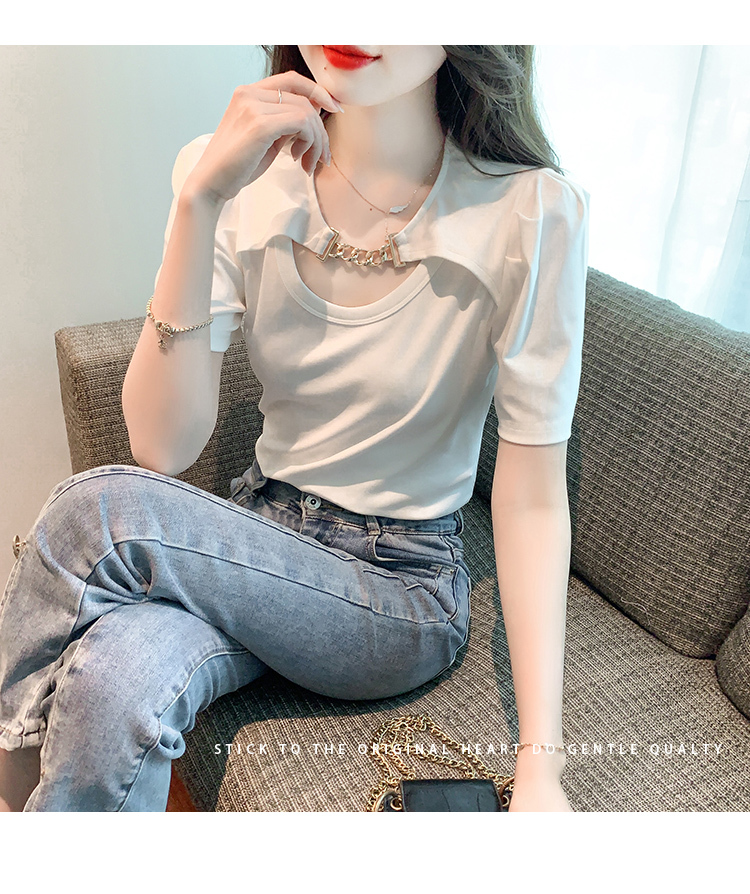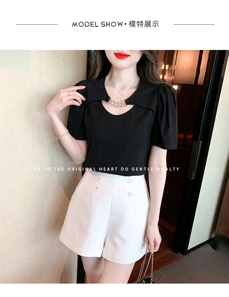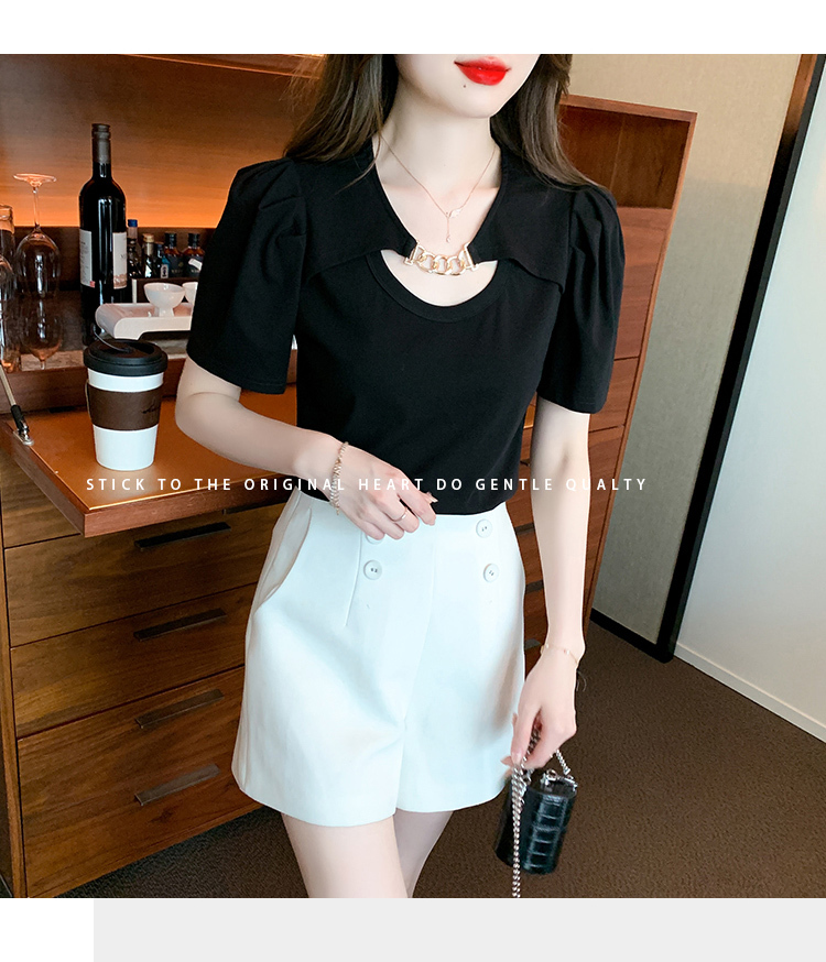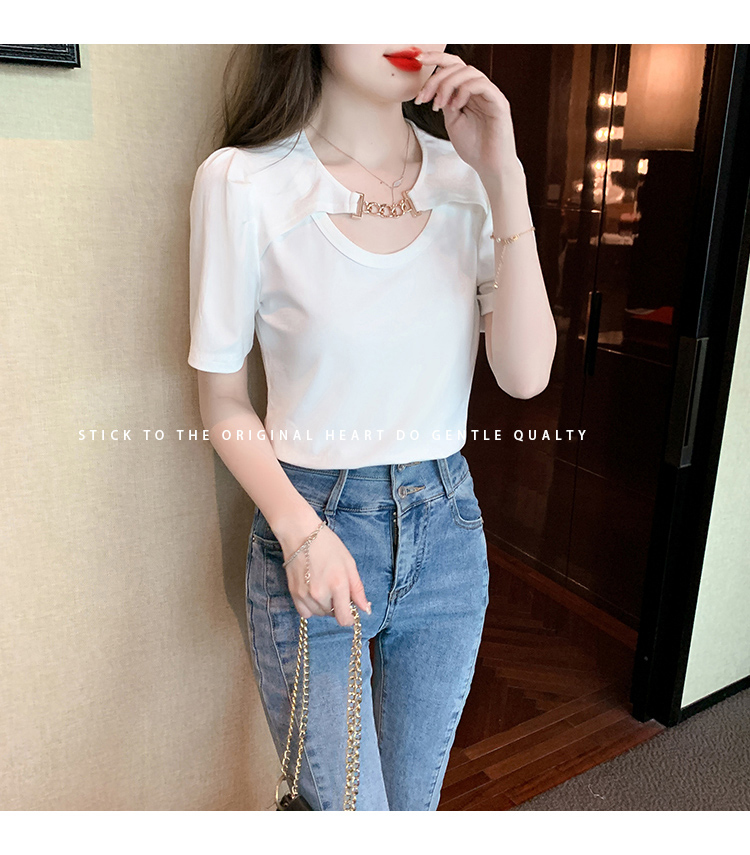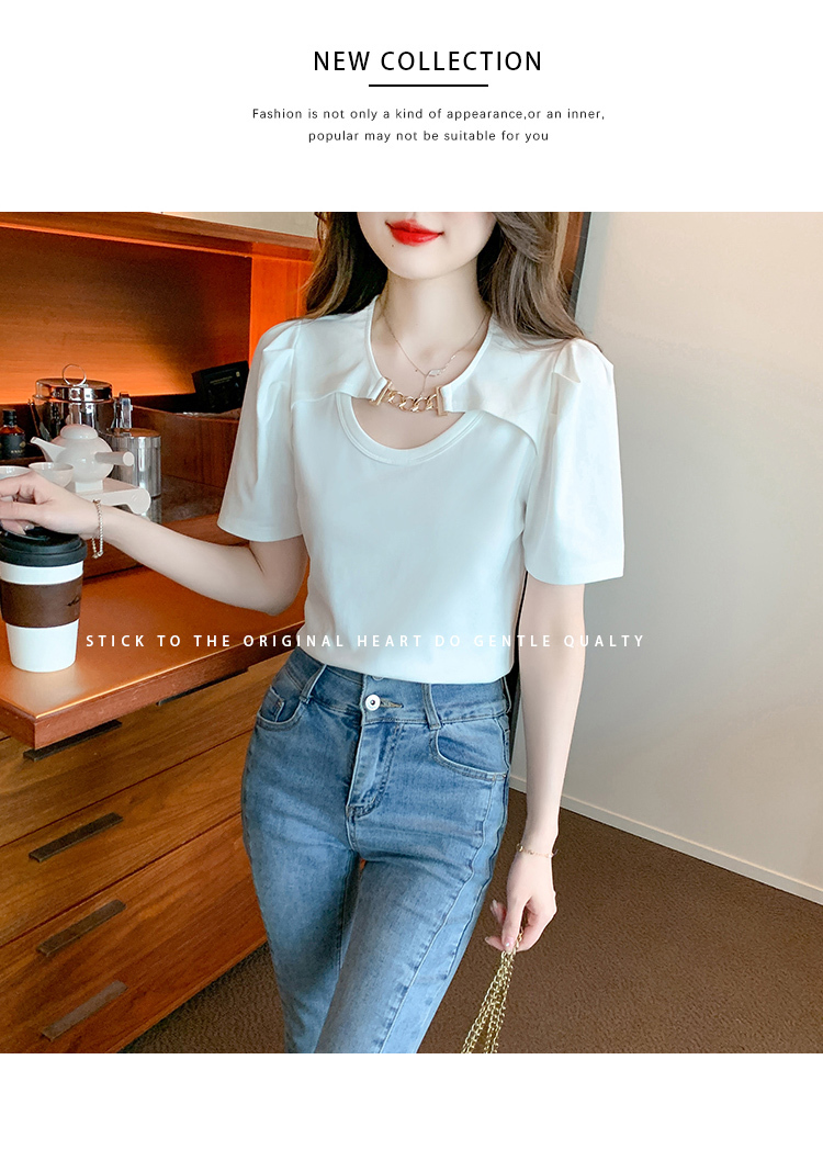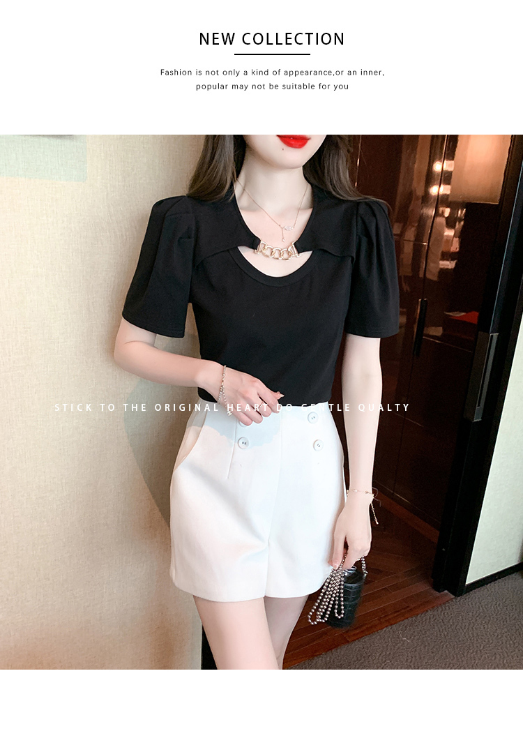 限量特惠|微性感縷空拼接金屬釦造型T恤-2色(04H3556)
