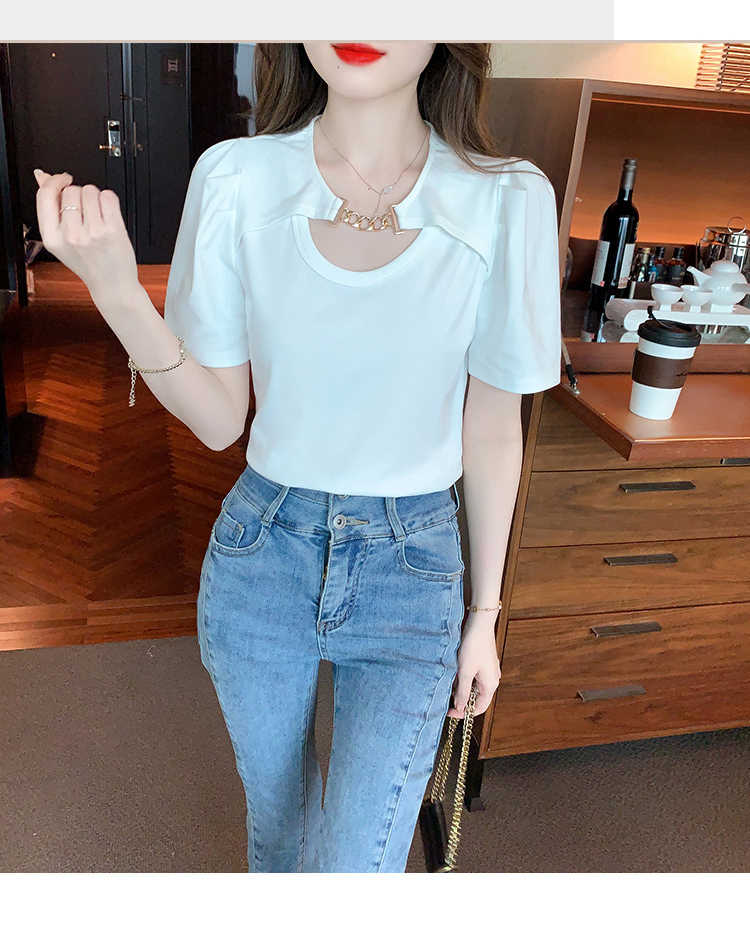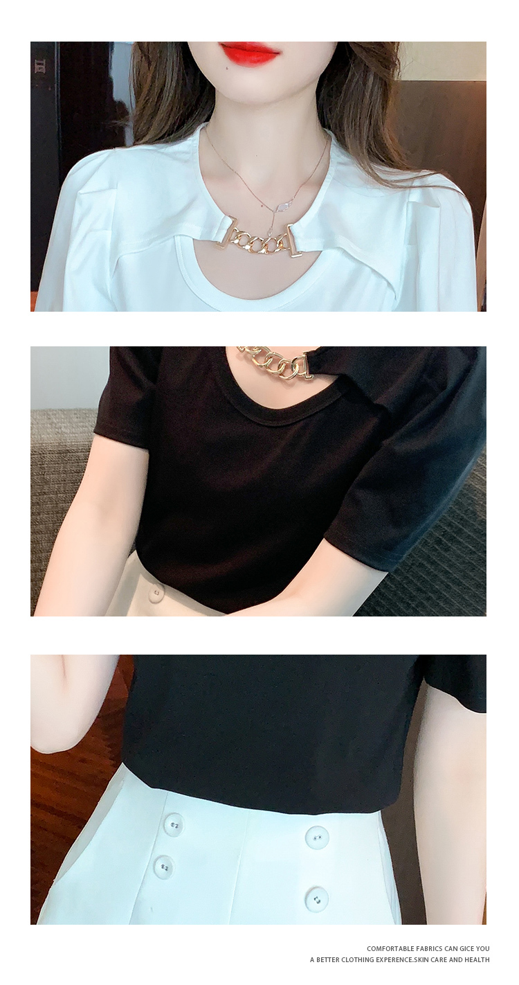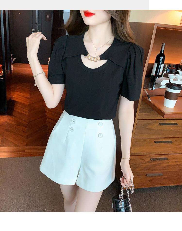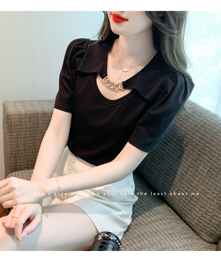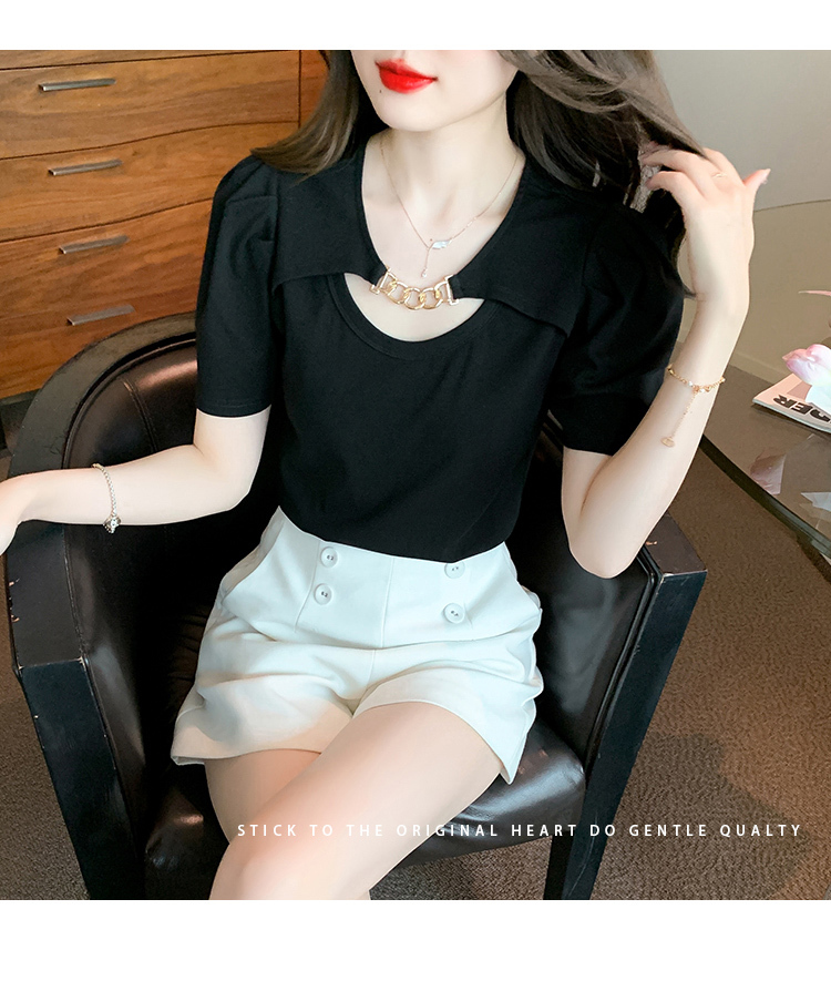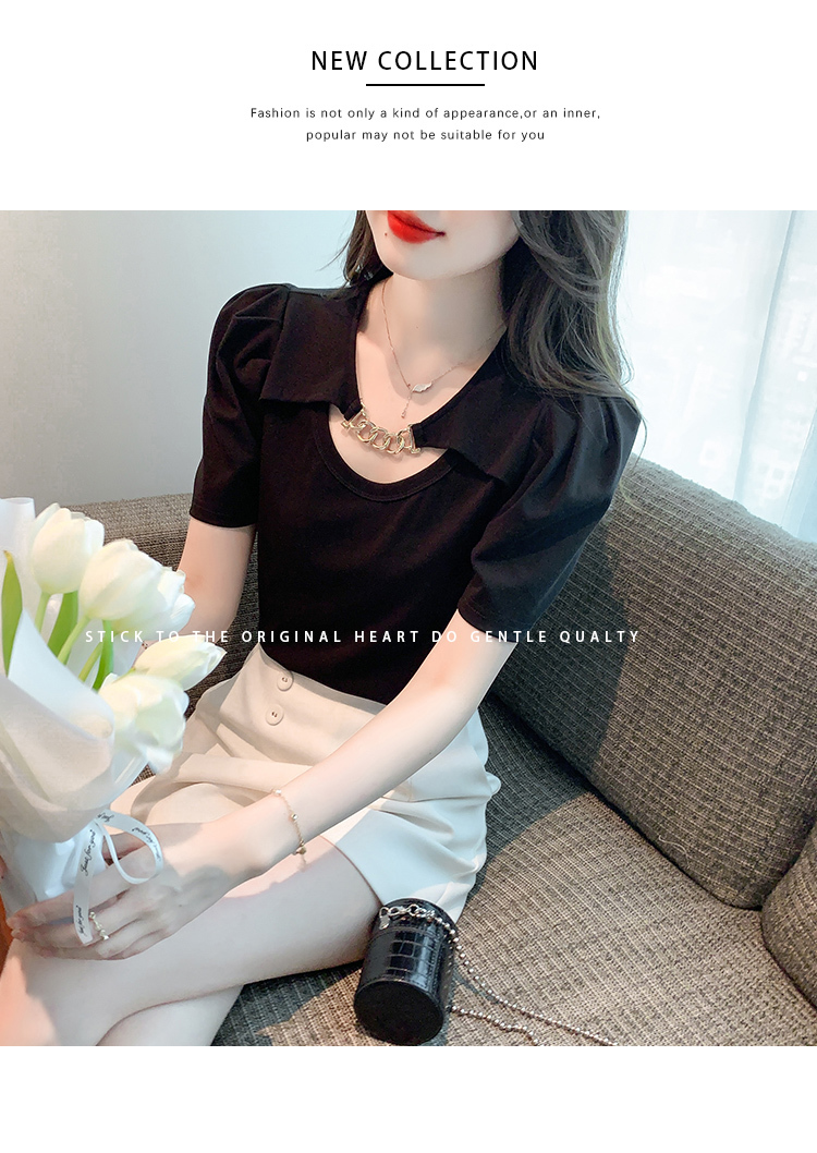 限量特惠|微性感縷空拼接金屬釦造型T恤-2色(04H3556)