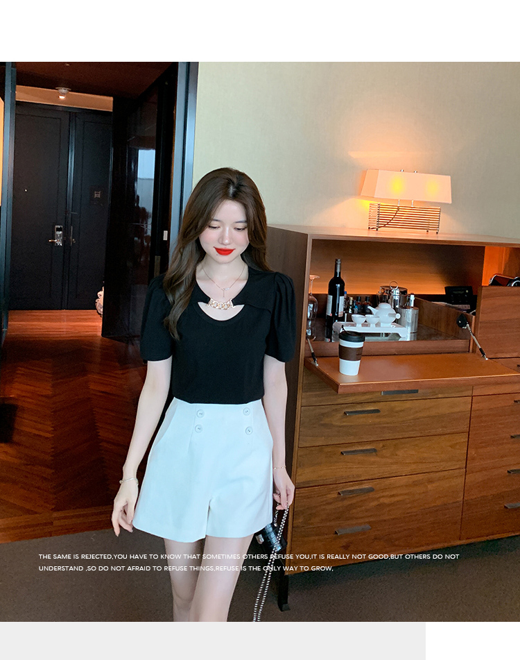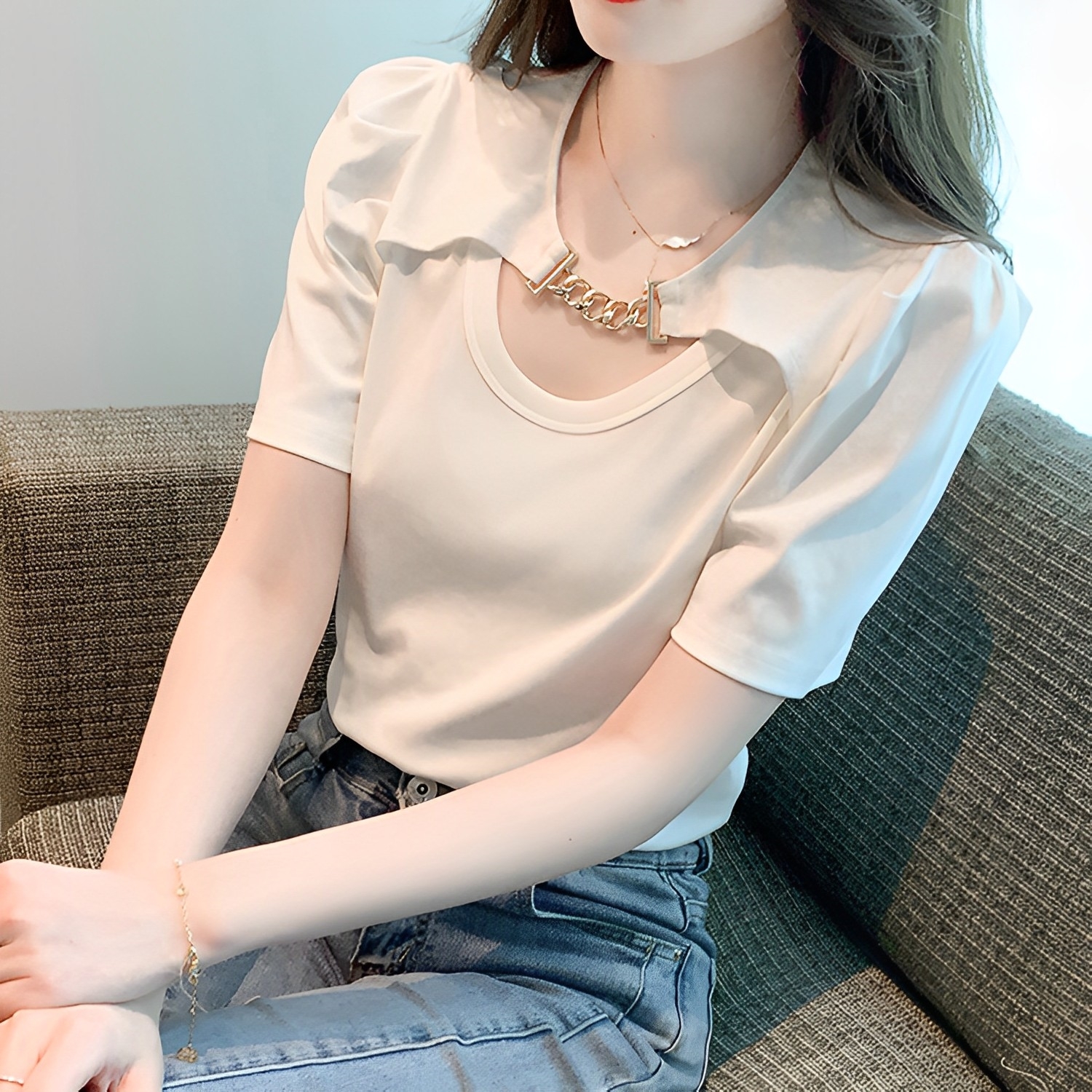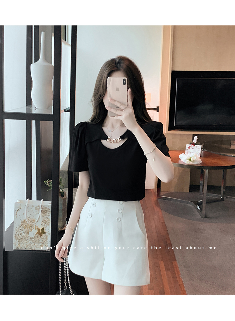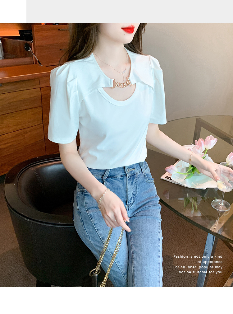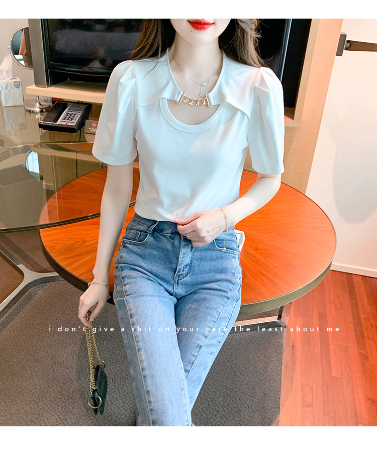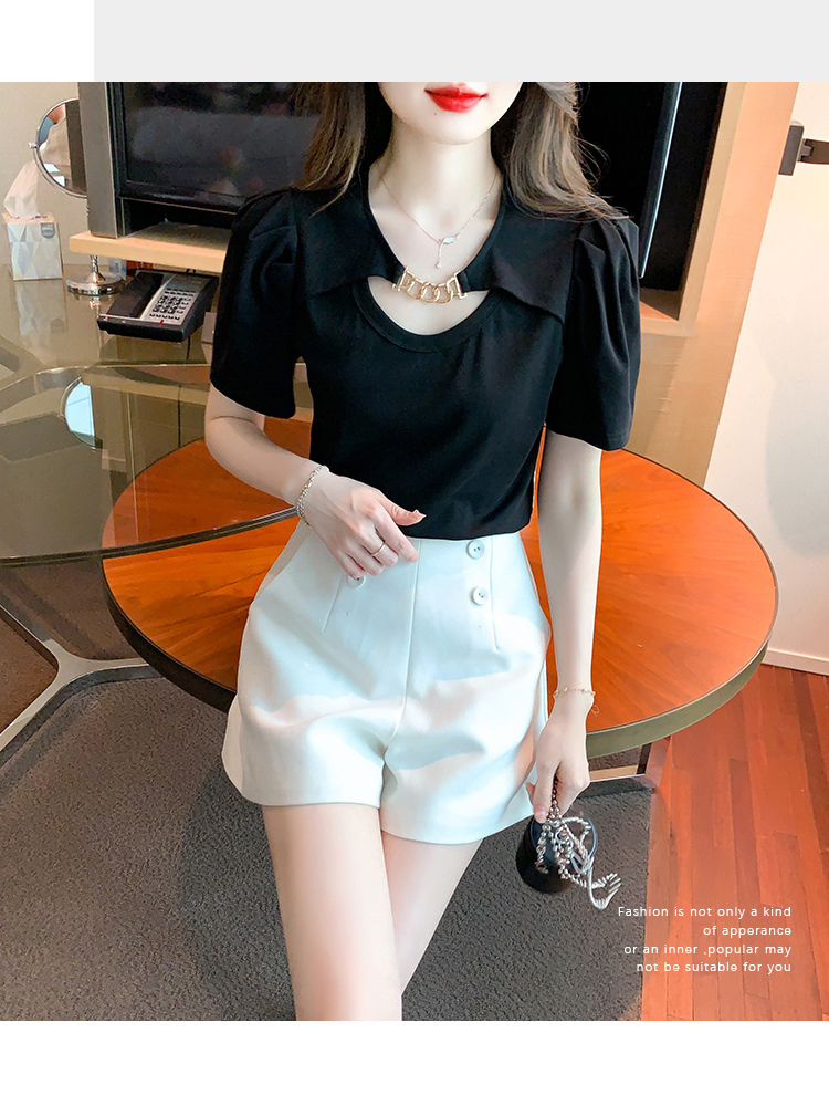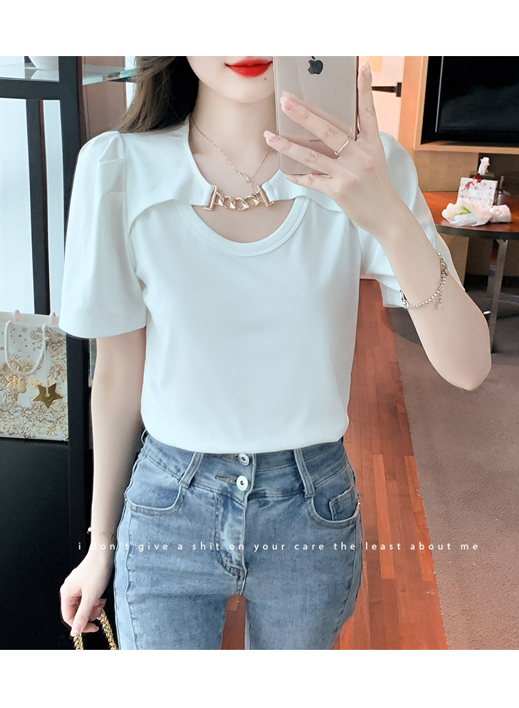 限量特惠|微性感縷空拼接金屬釦造型T恤-2色(04H3556)