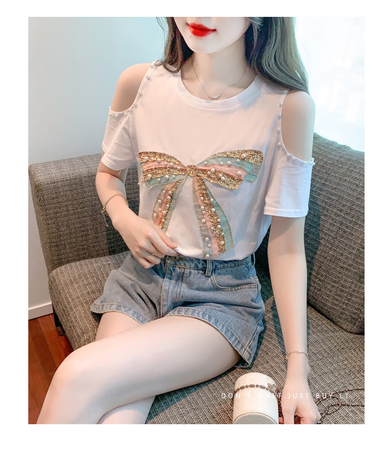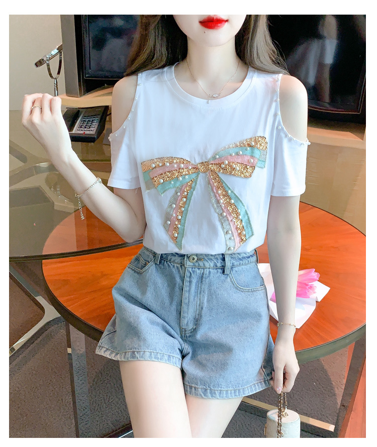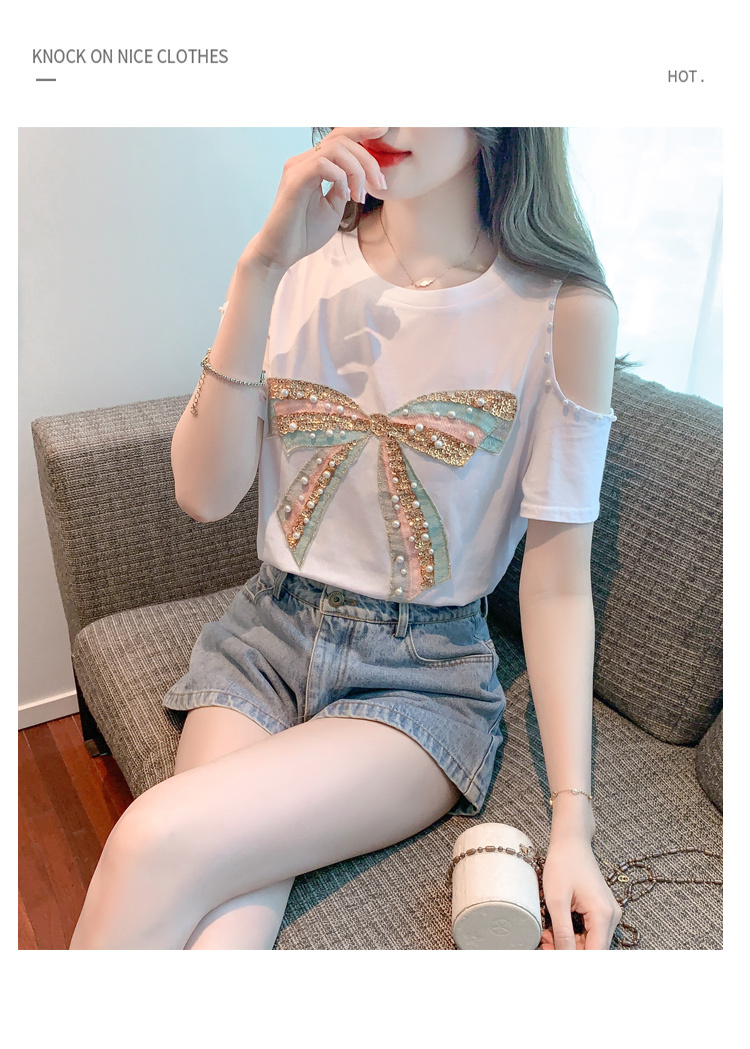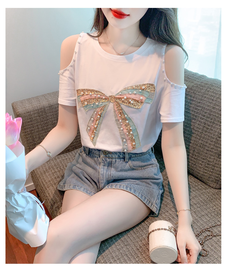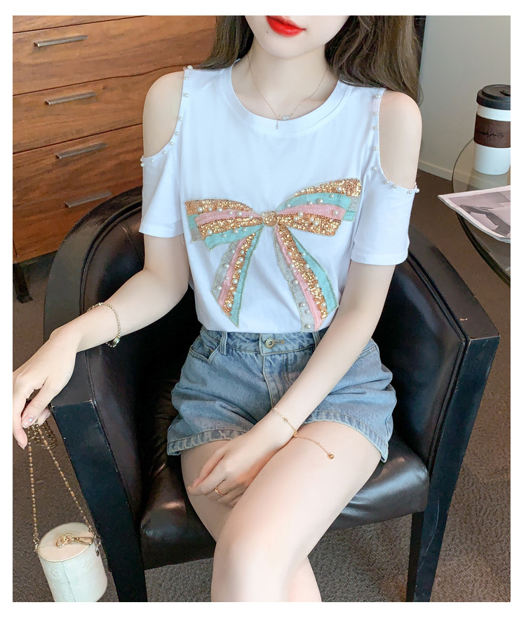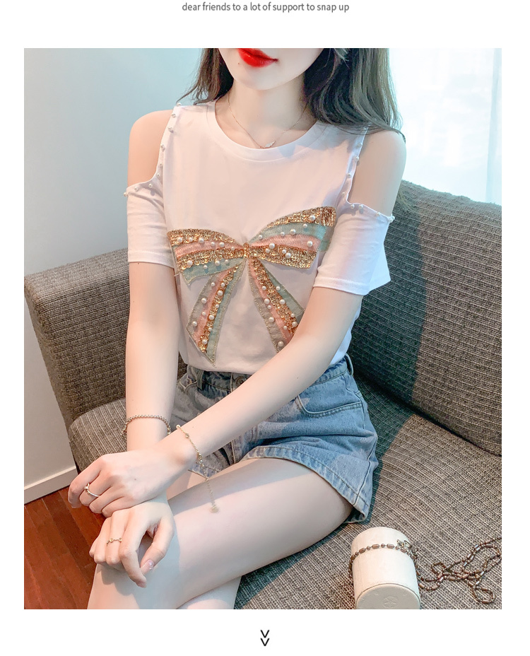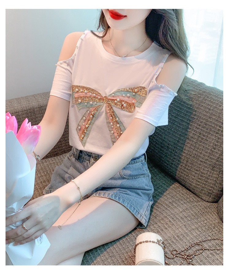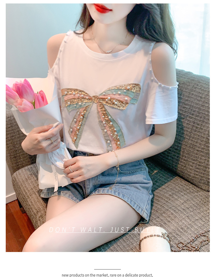 限量特惠|微性感釘珠露肩T恤(04H3561)