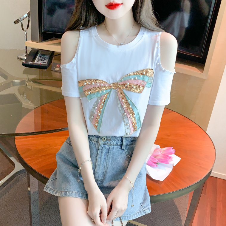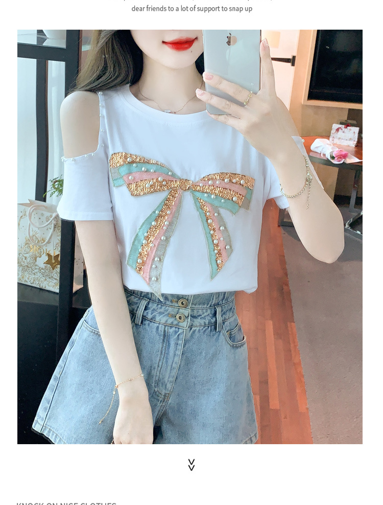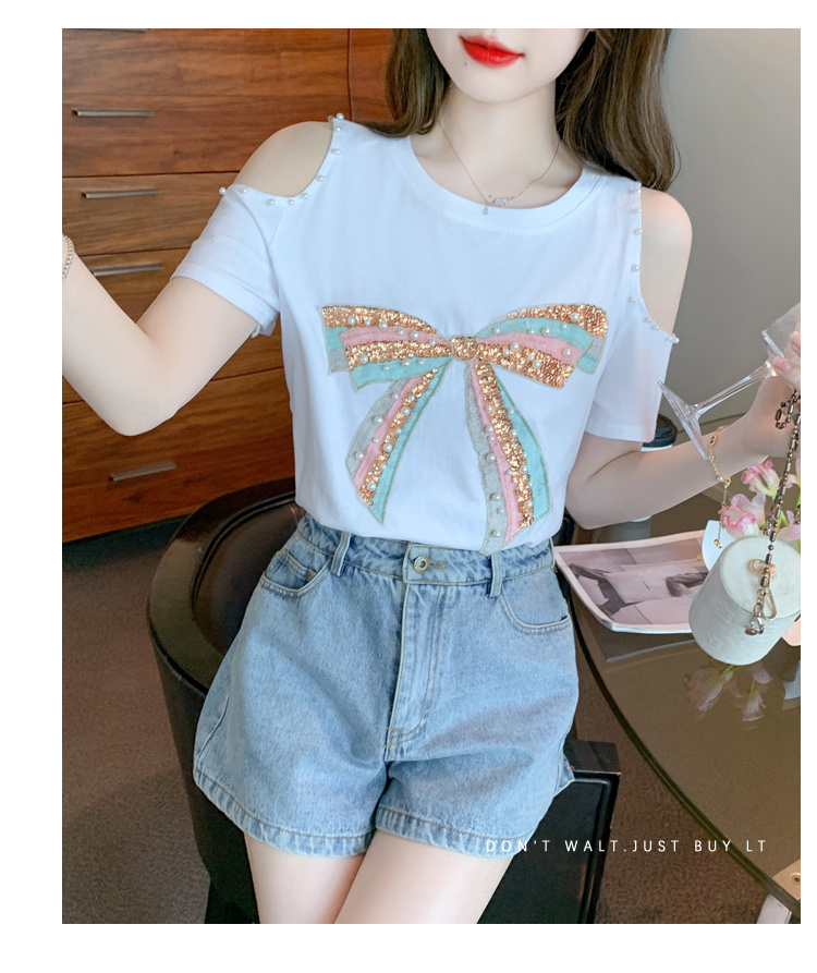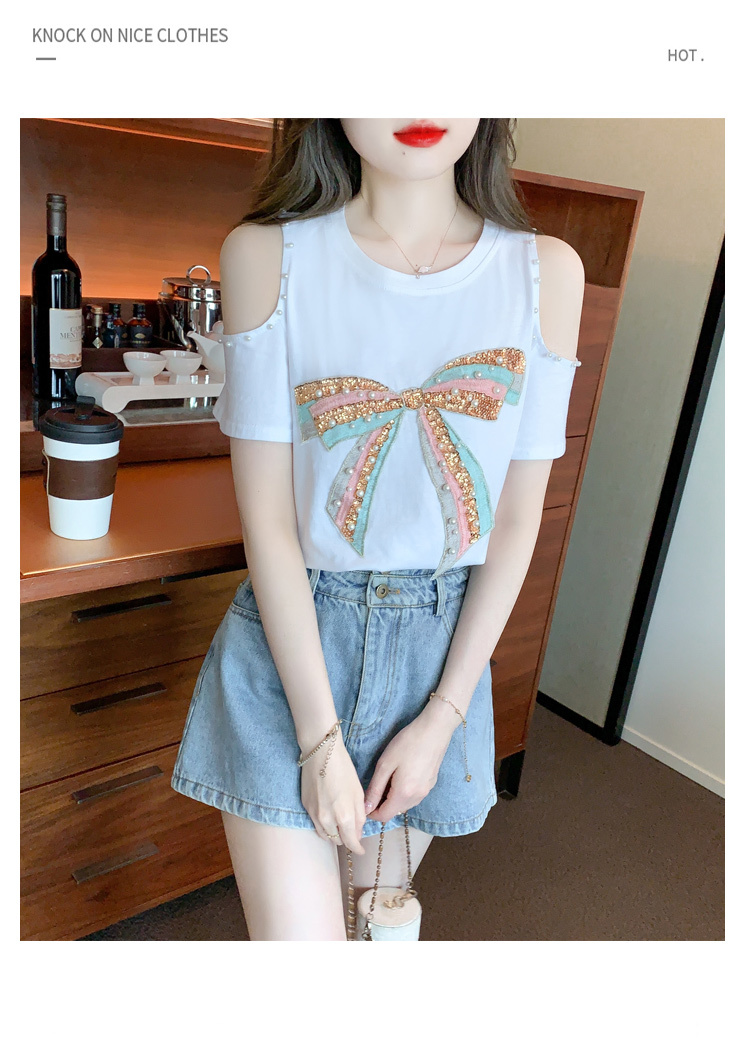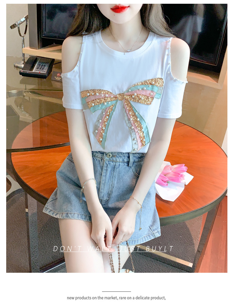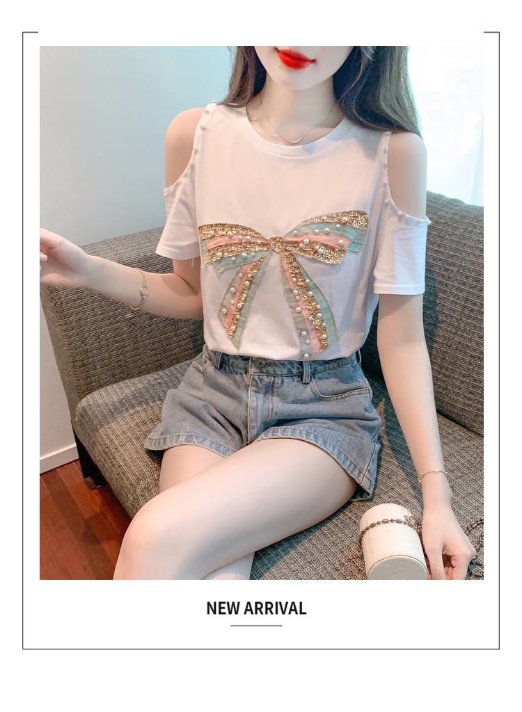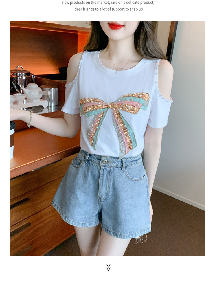 限量特惠|微性感釘珠露肩T恤(04H3561)