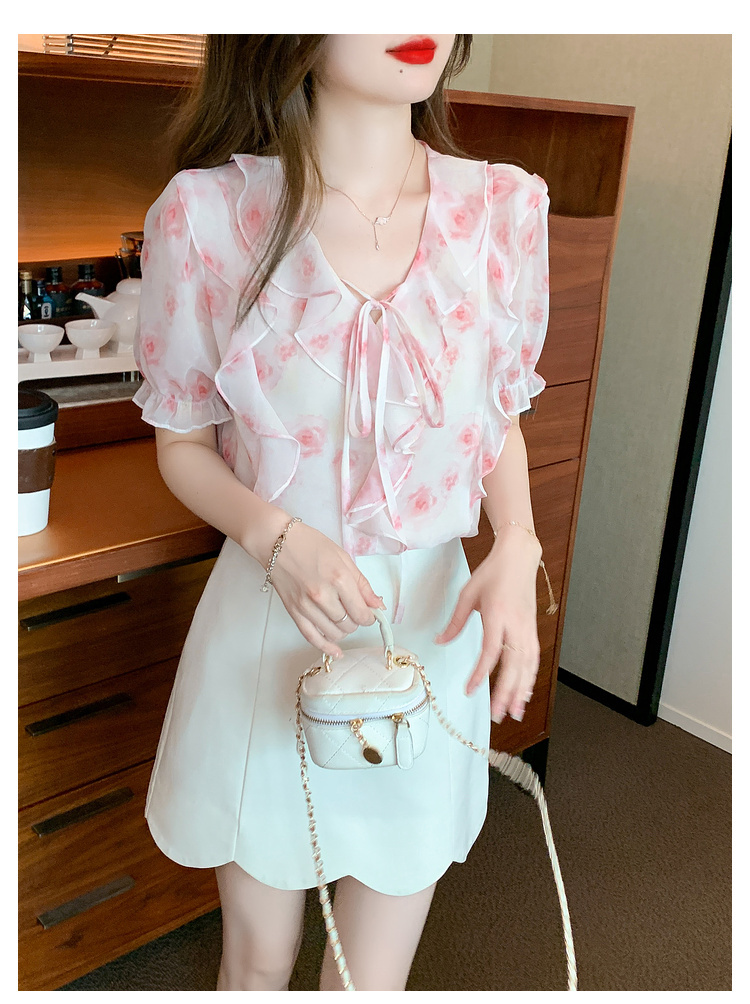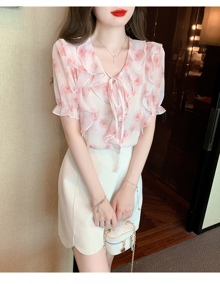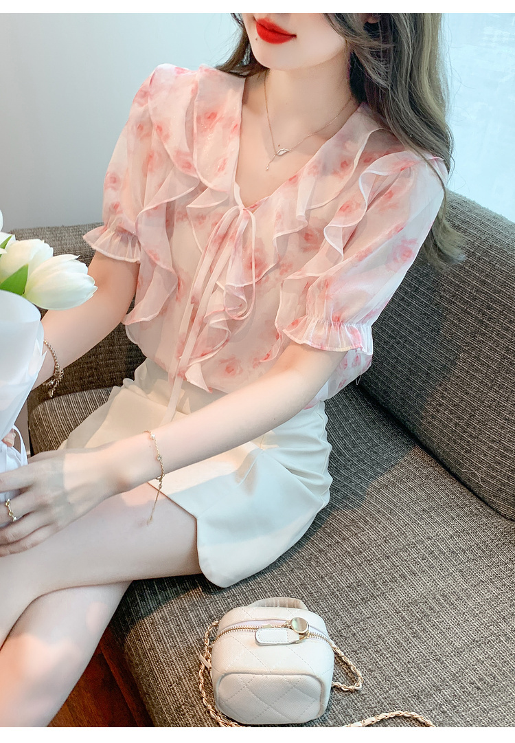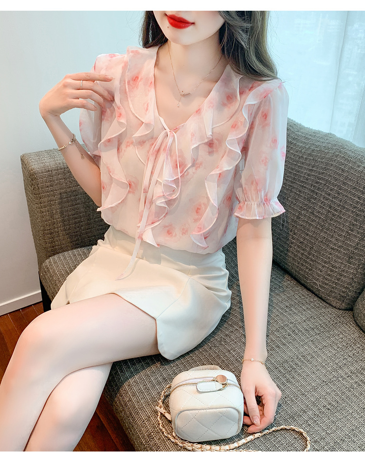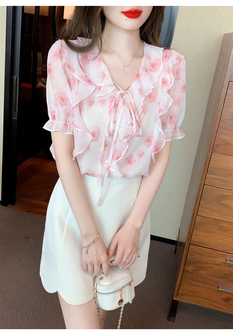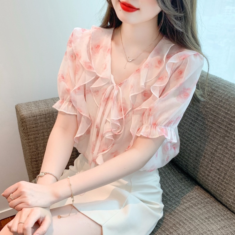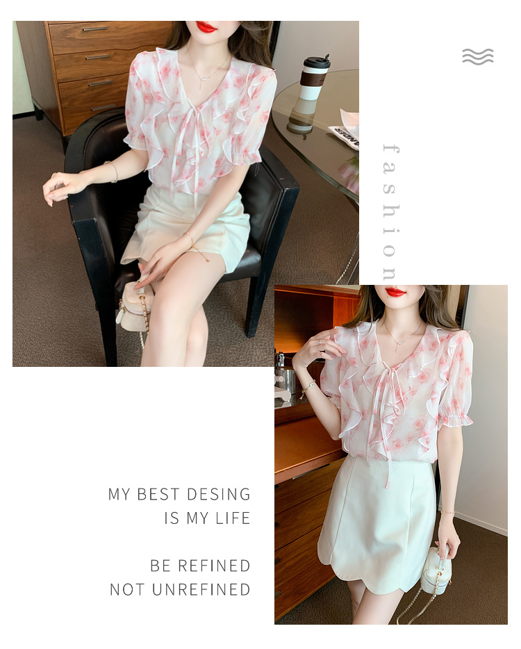 限量特惠|氣質輕熟感碎花雪紡衫(04H3563)