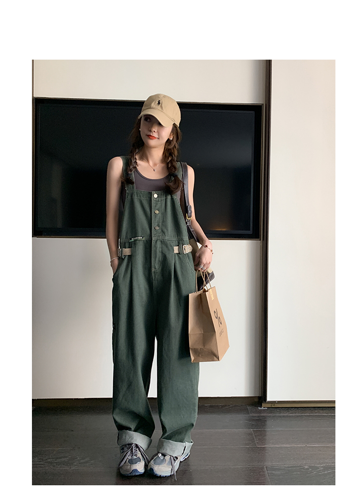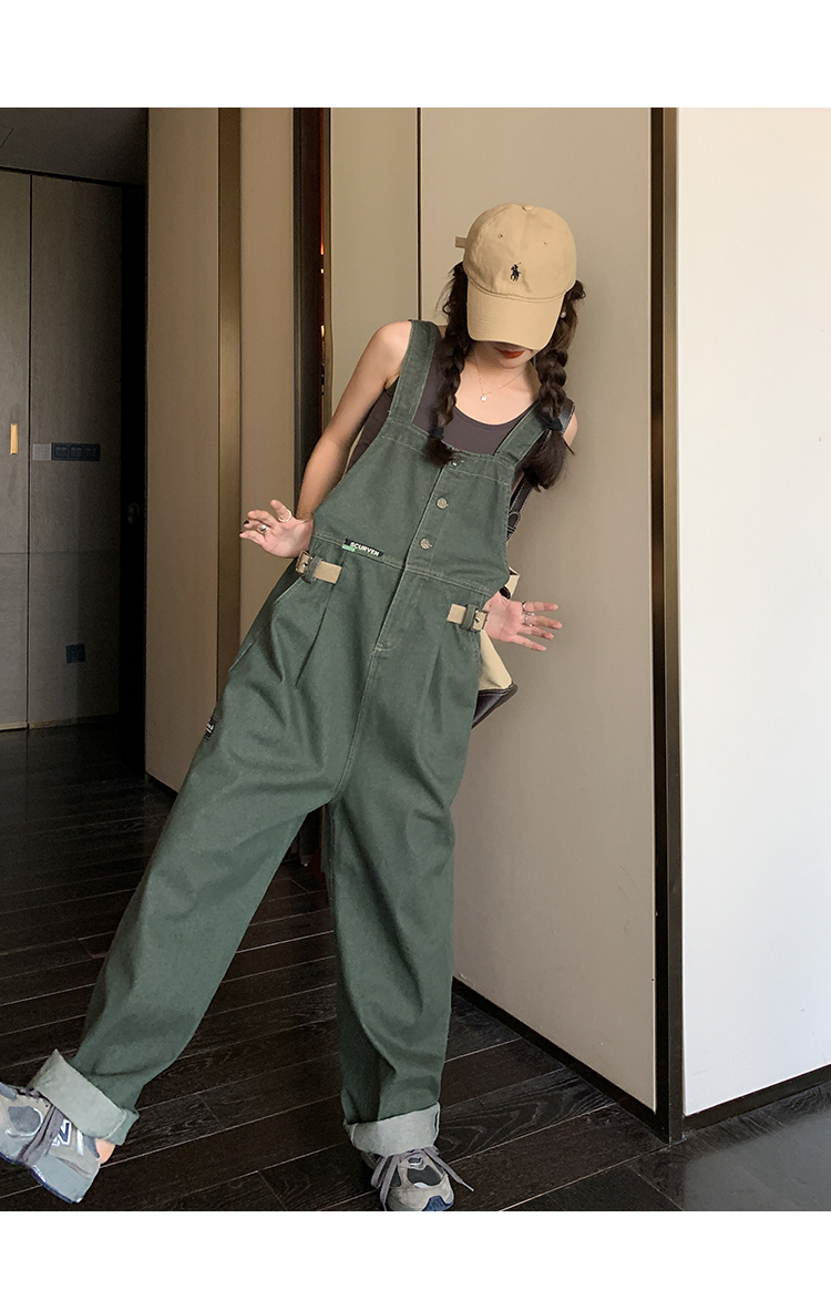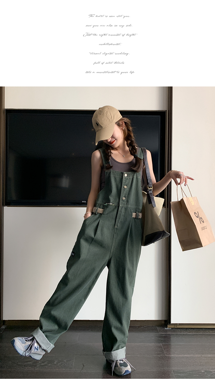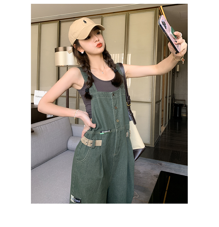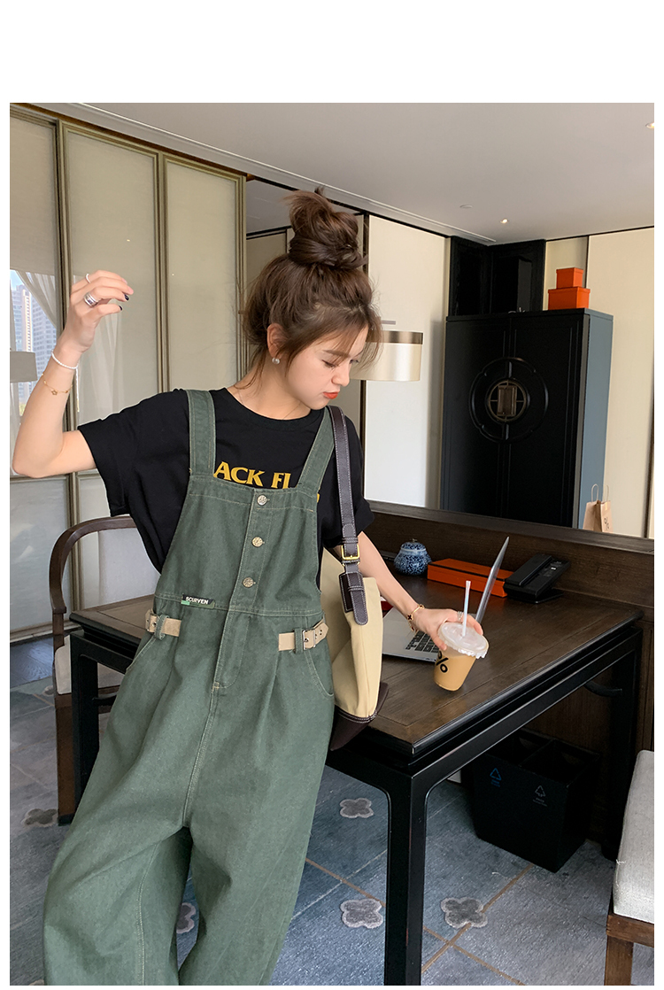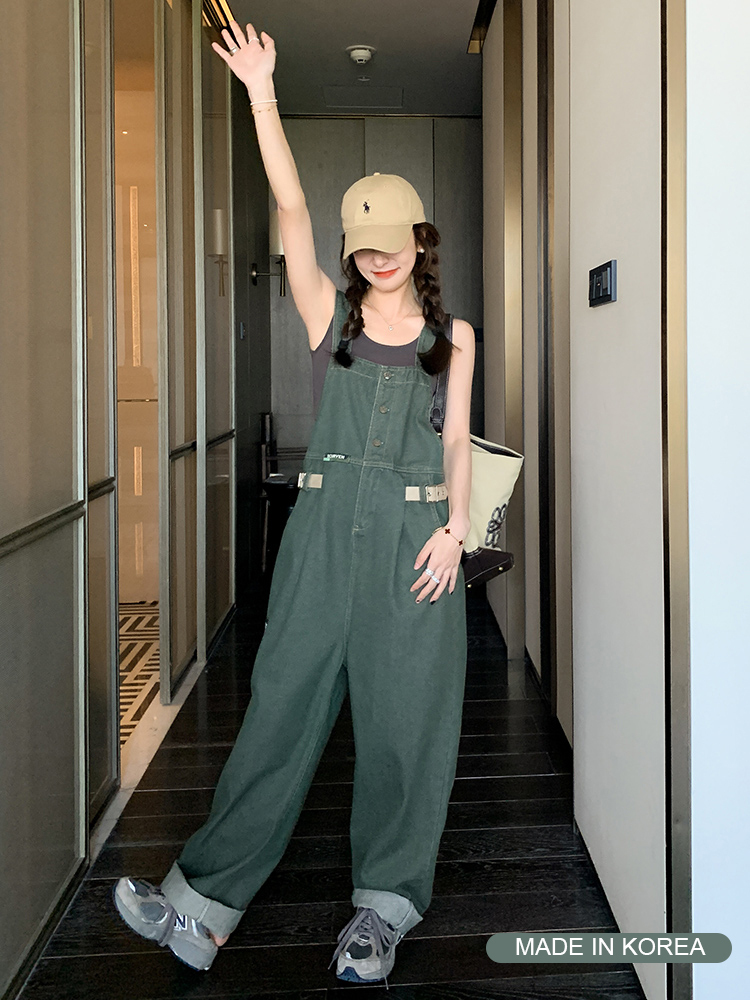 獨家訂製│韓系俏皮感撞色拉釦牛仔吊帶褲(04H3595)