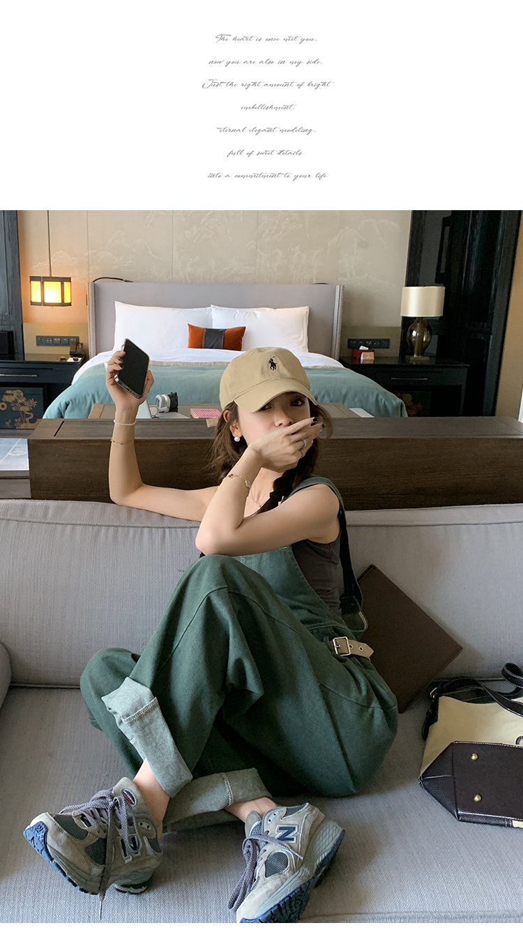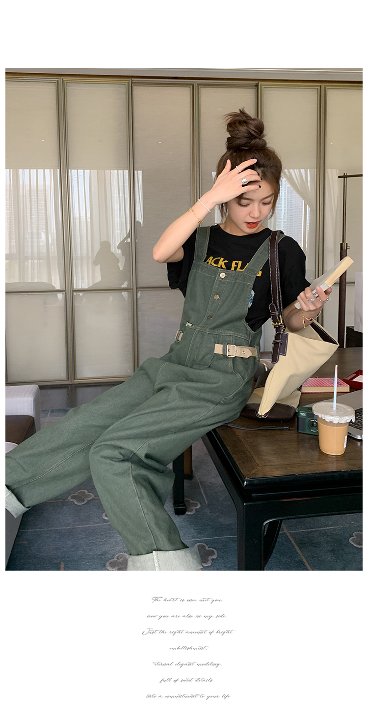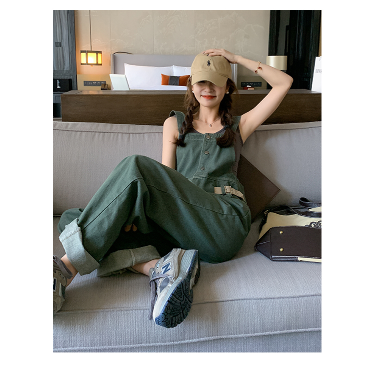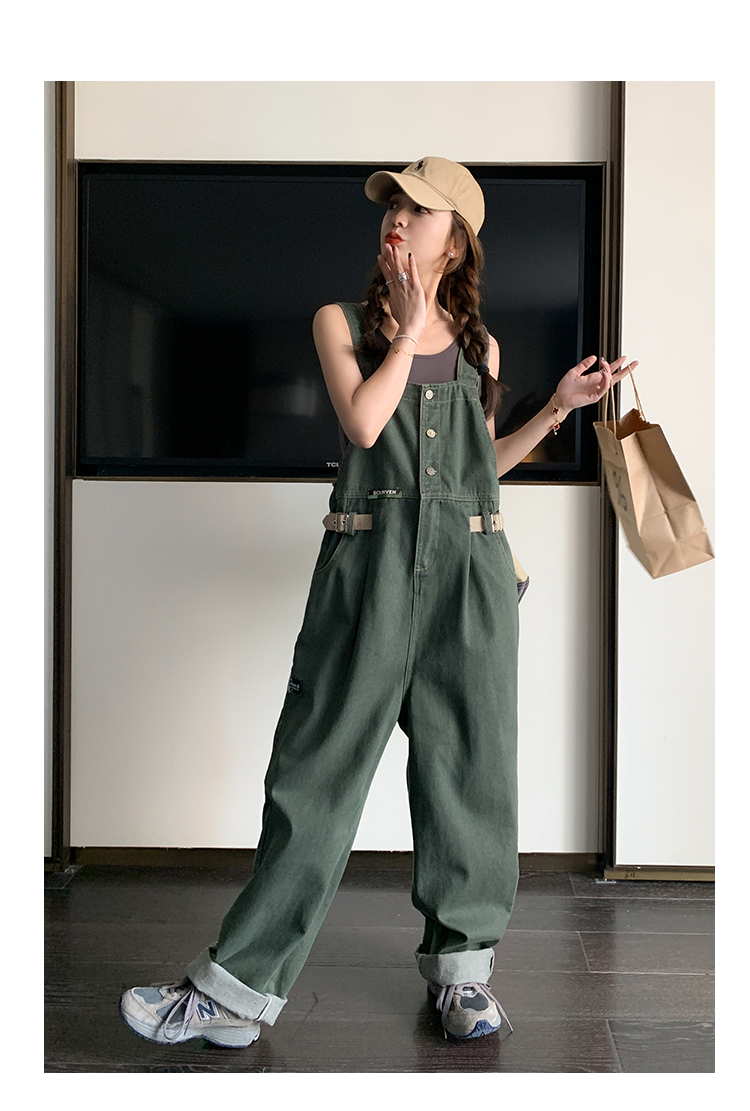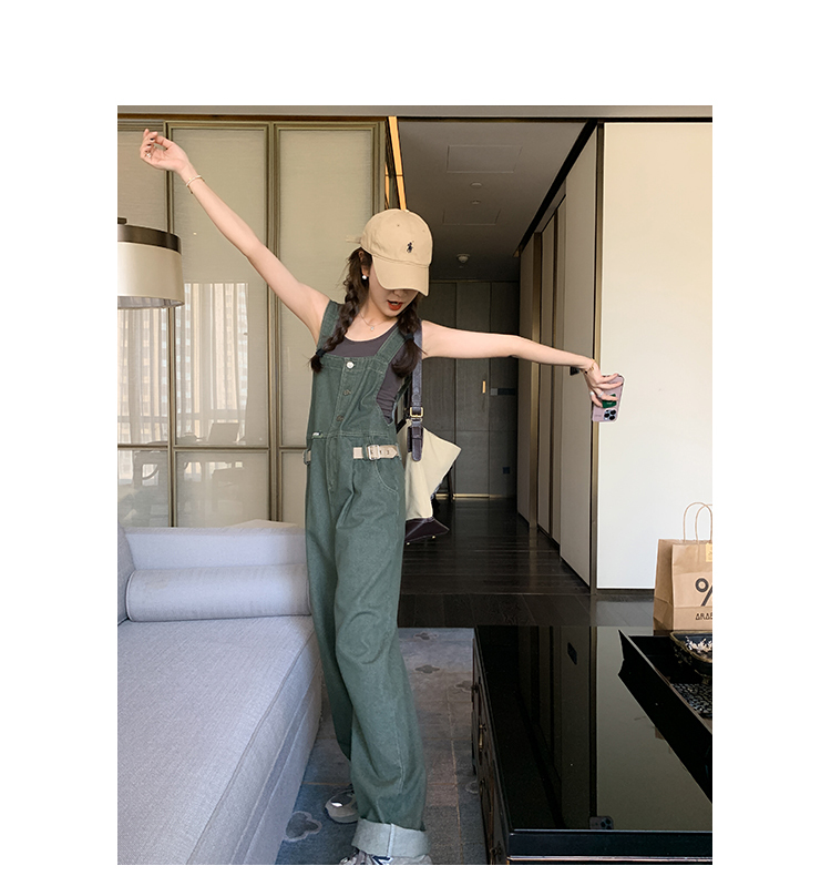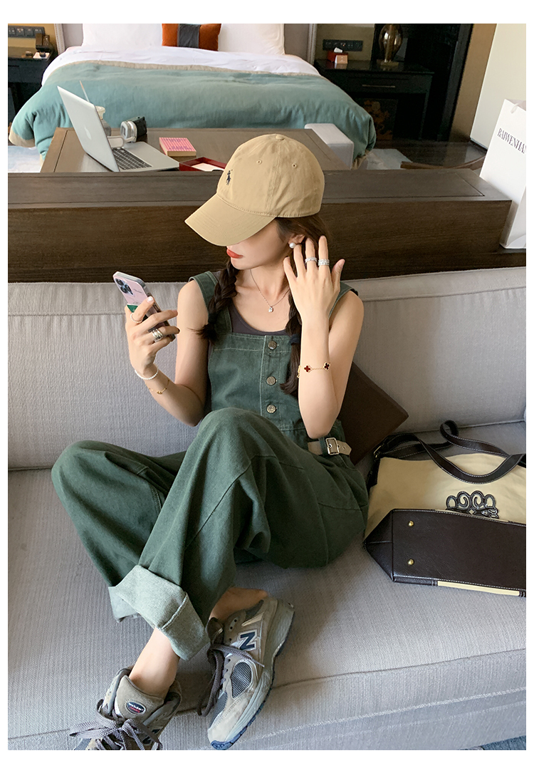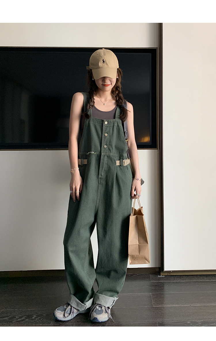 獨家訂製│韓系俏皮感撞色拉釦牛仔吊帶褲(04H3595)