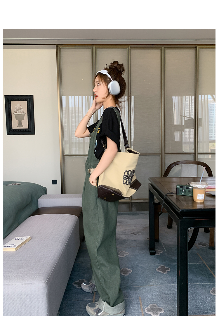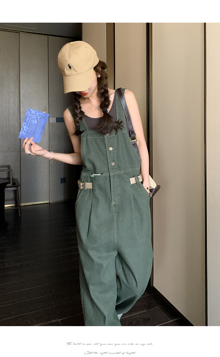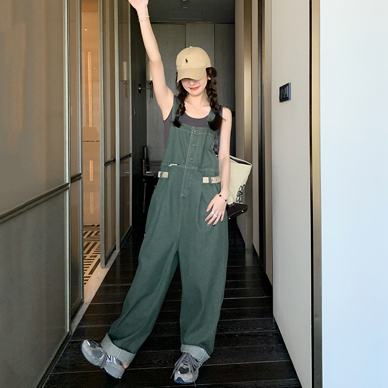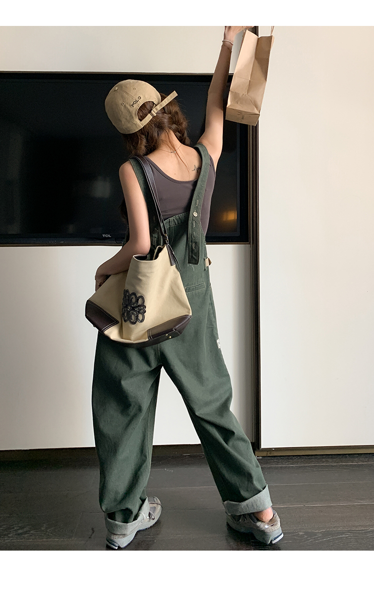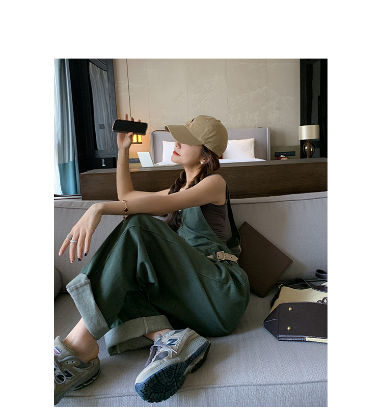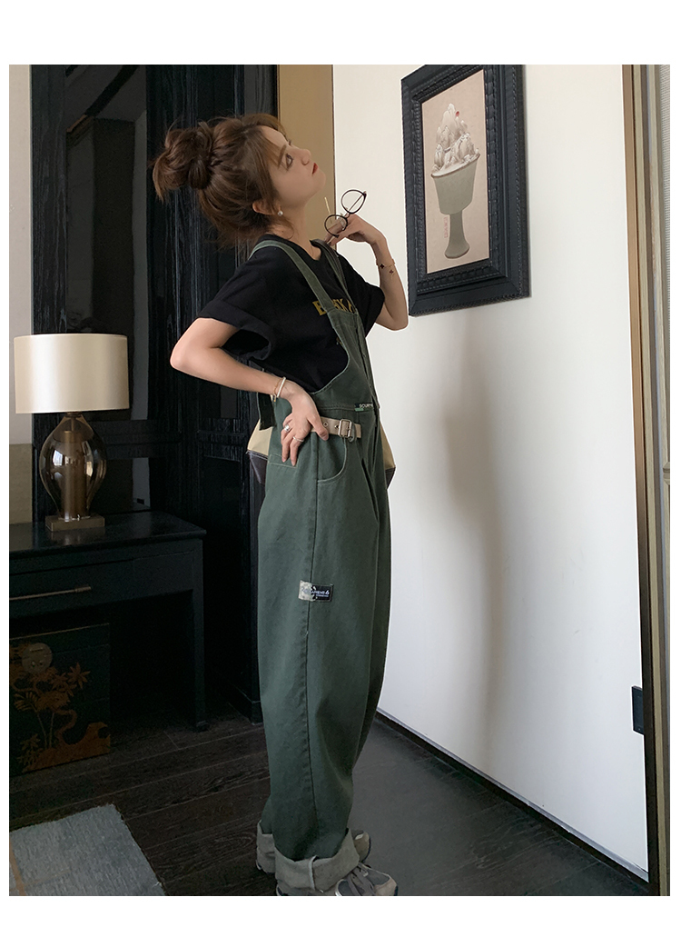 獨家訂製│韓系俏皮感撞色拉釦牛仔吊帶褲(04H3595)