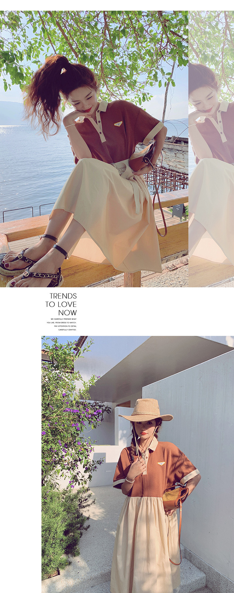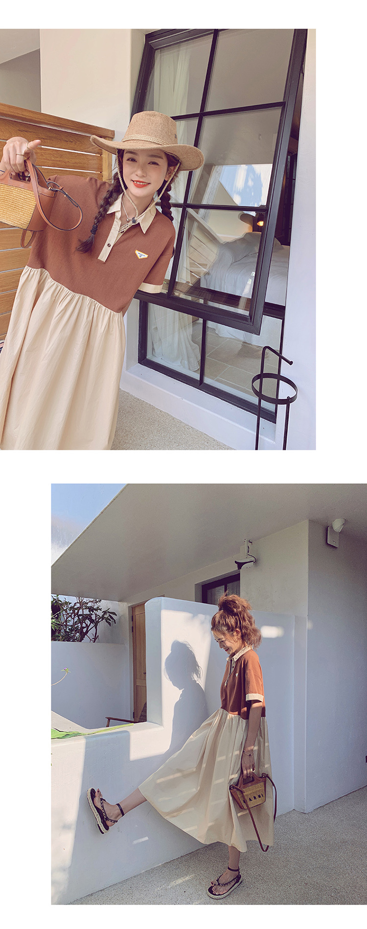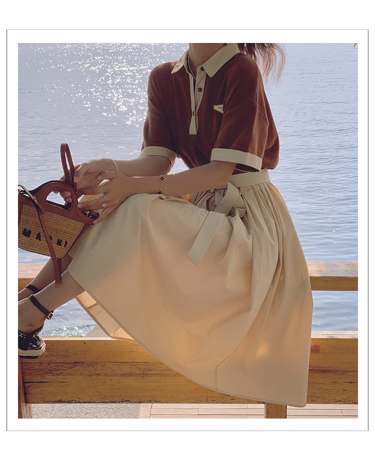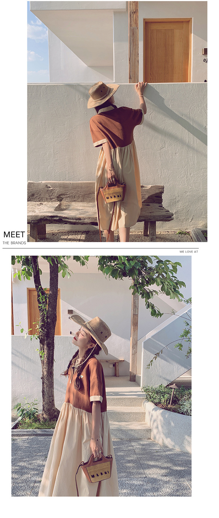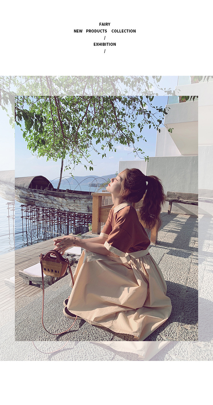 獨家訂製│韓系氣質感撞色拼接繫帶假兩件式連衣裙(04H3610)