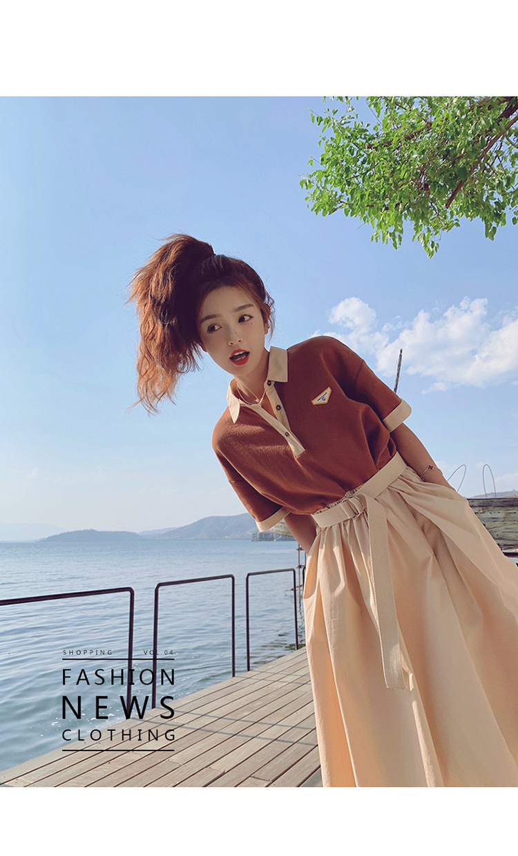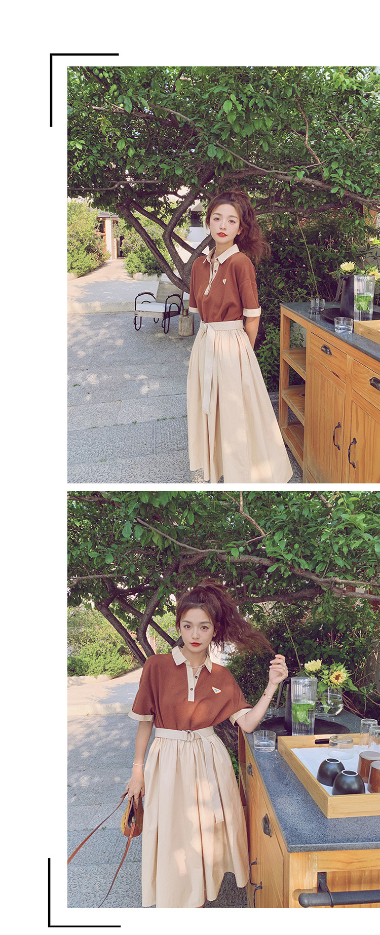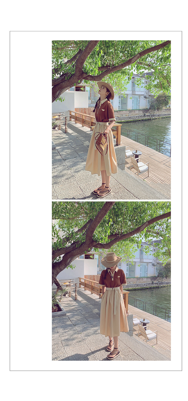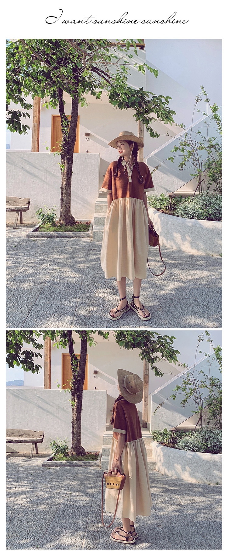 獨家訂製│韓系氣質感撞色拼接繫帶假兩件式連衣裙(04H3610)