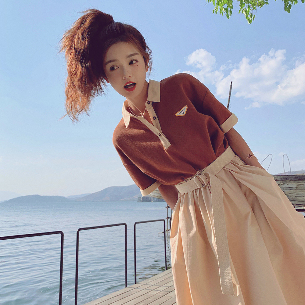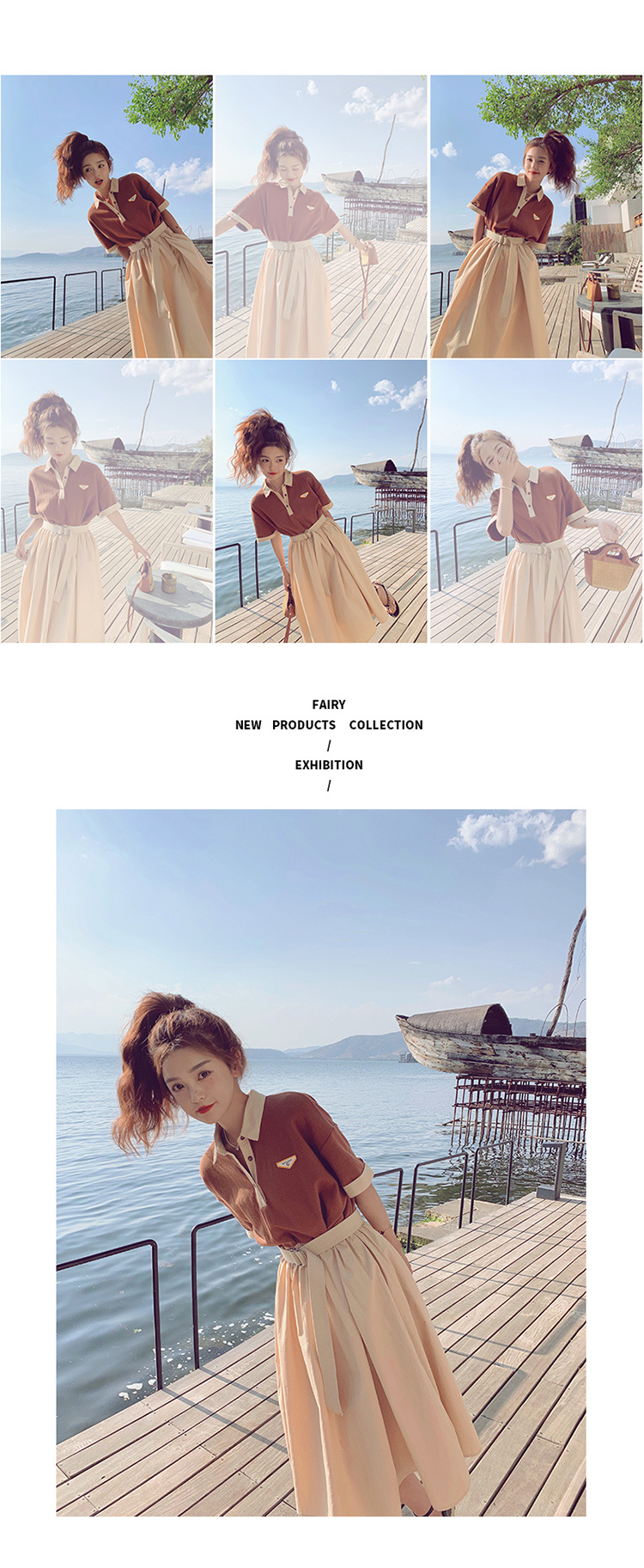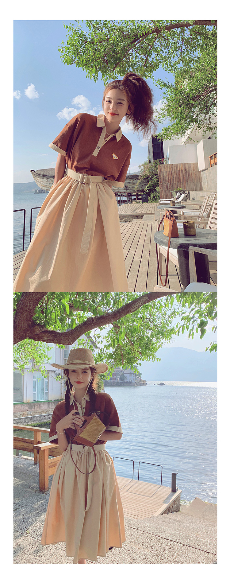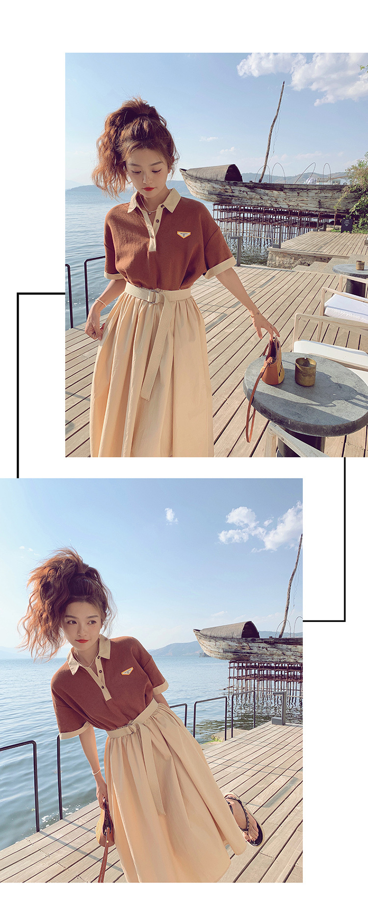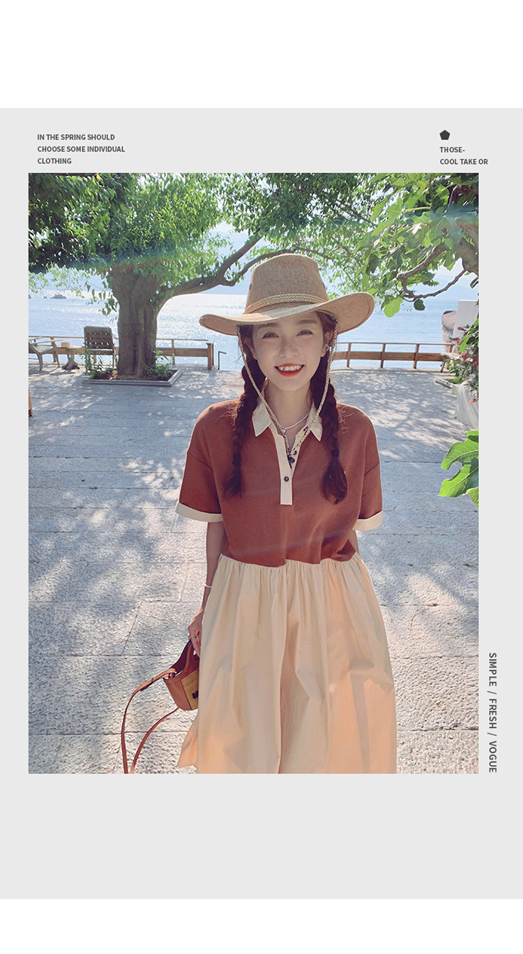 獨家訂製│韓系氣質感撞色拼接繫帶假兩件式連衣裙(04H3610)