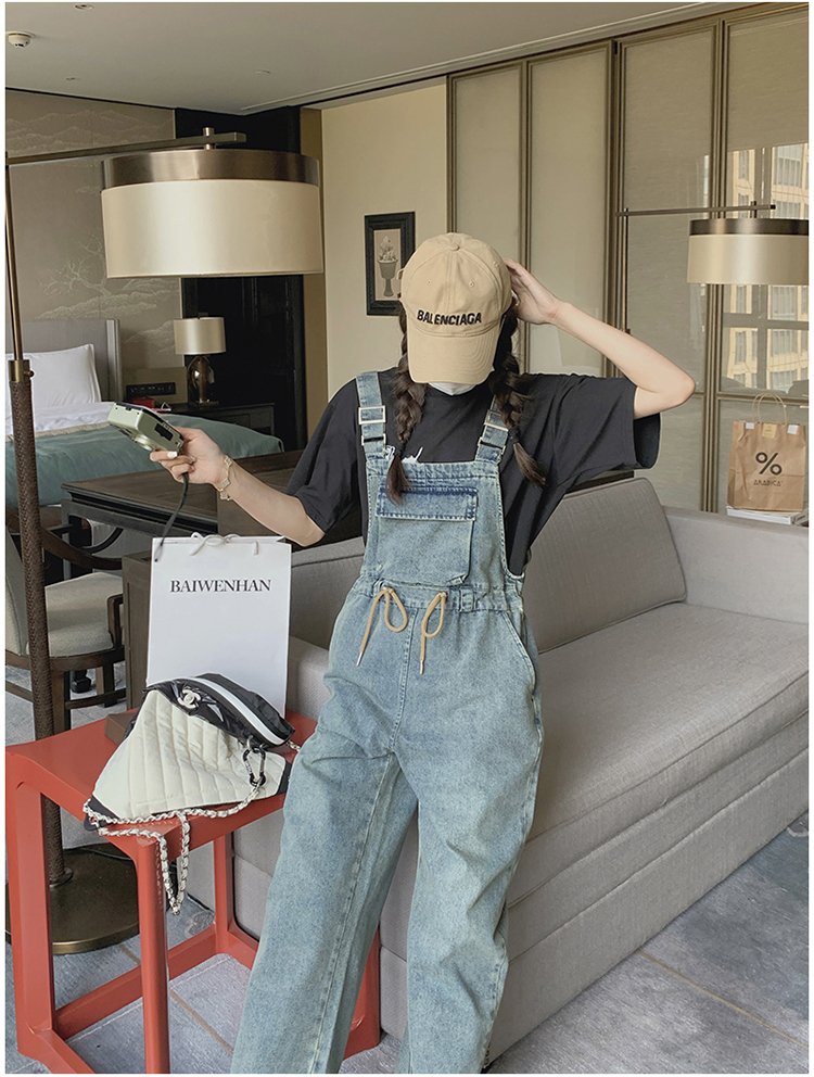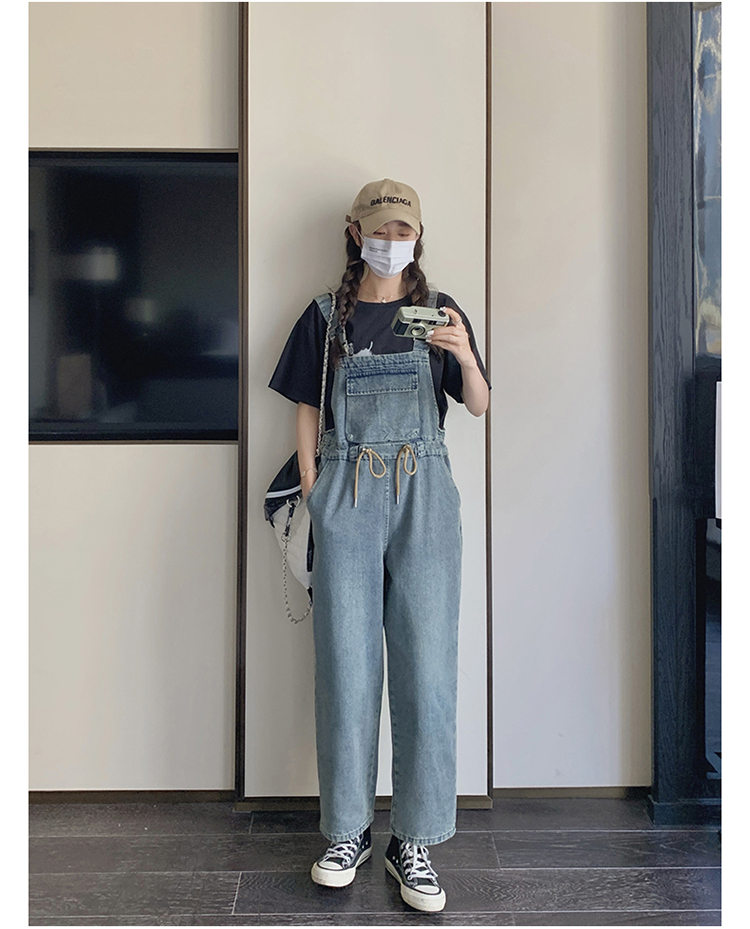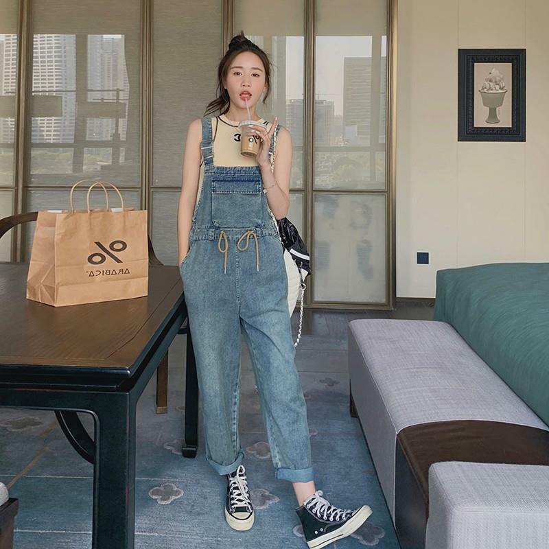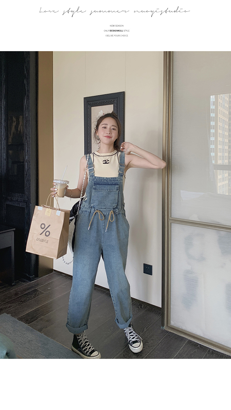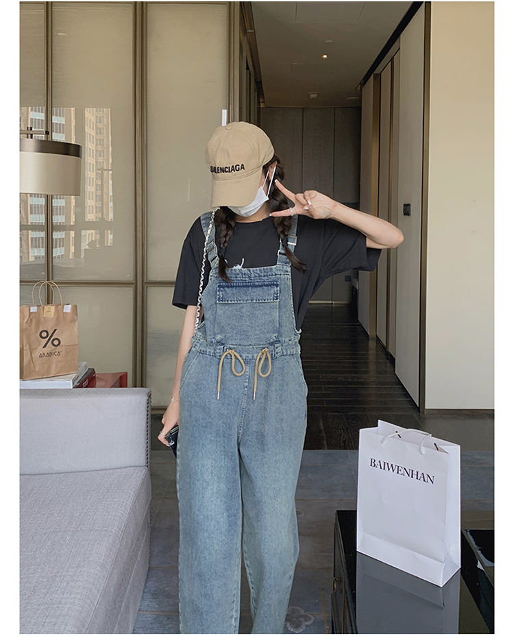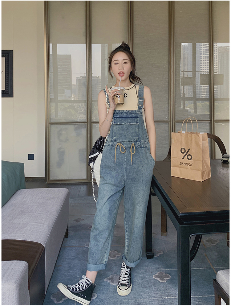 獨家訂製│韓系俏皮感抽繩收腰牛仔吊帶褲(04H3614)