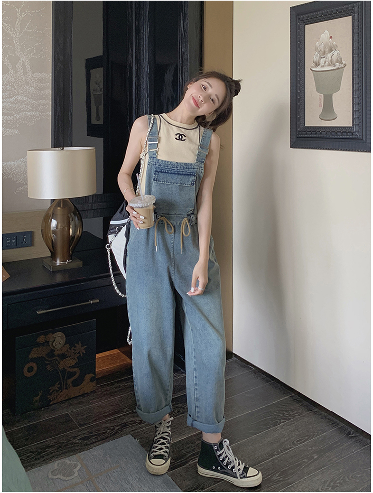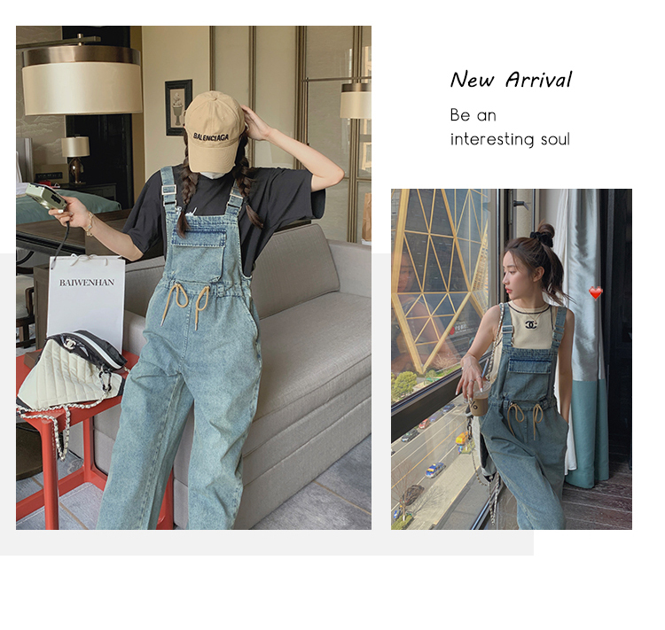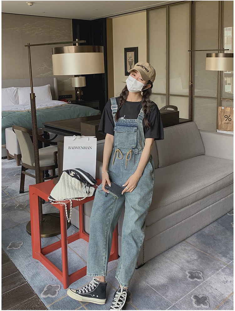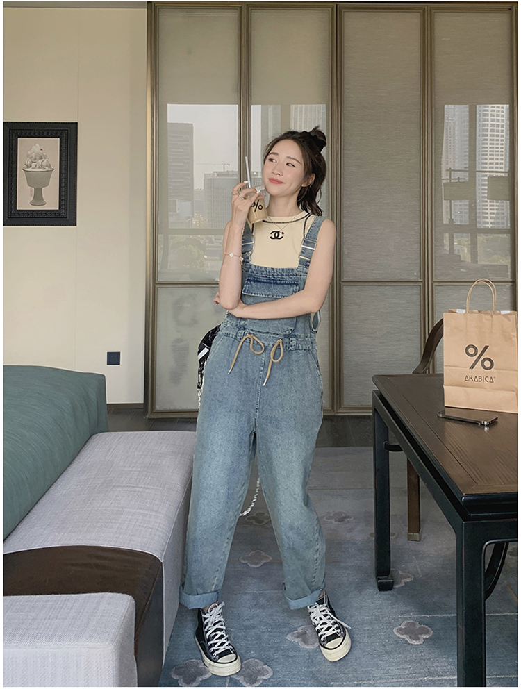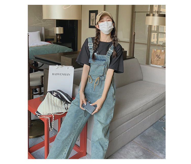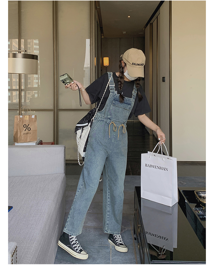 獨家訂製│韓系俏皮感抽繩收腰牛仔吊帶褲(04H3614)