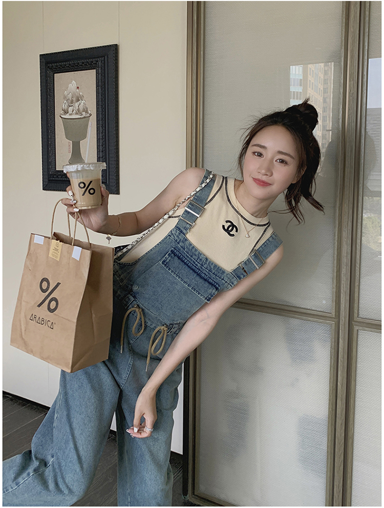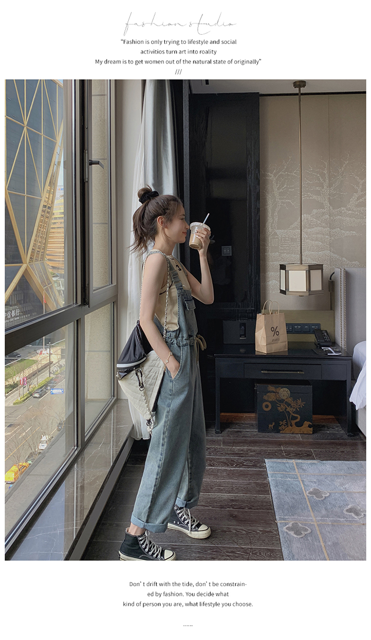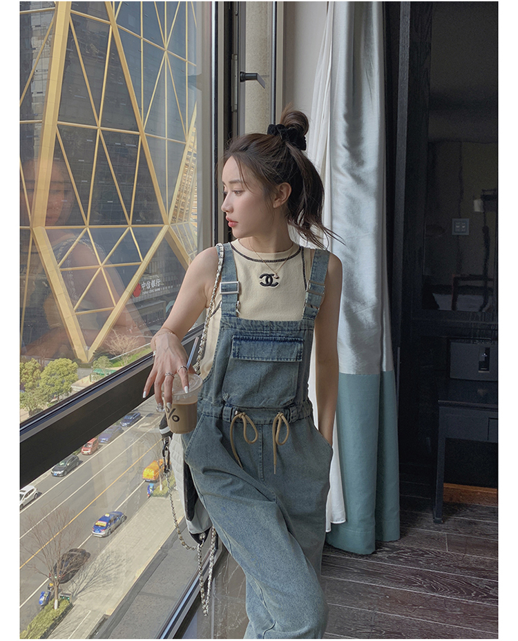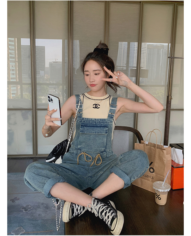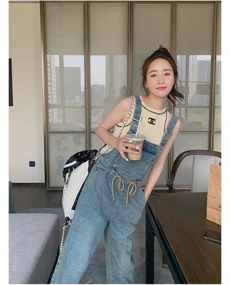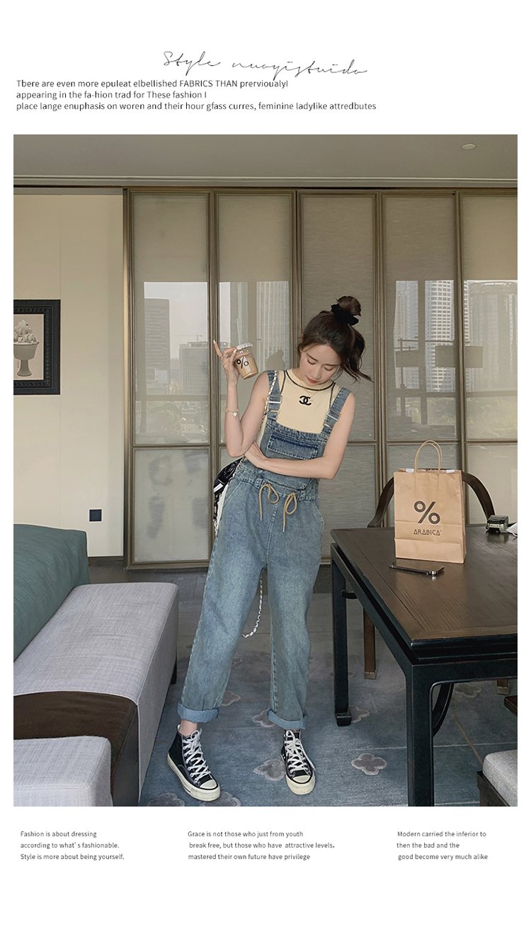 獨家訂製│韓系俏皮感抽繩收腰牛仔吊帶褲(04H3614)