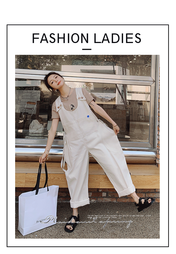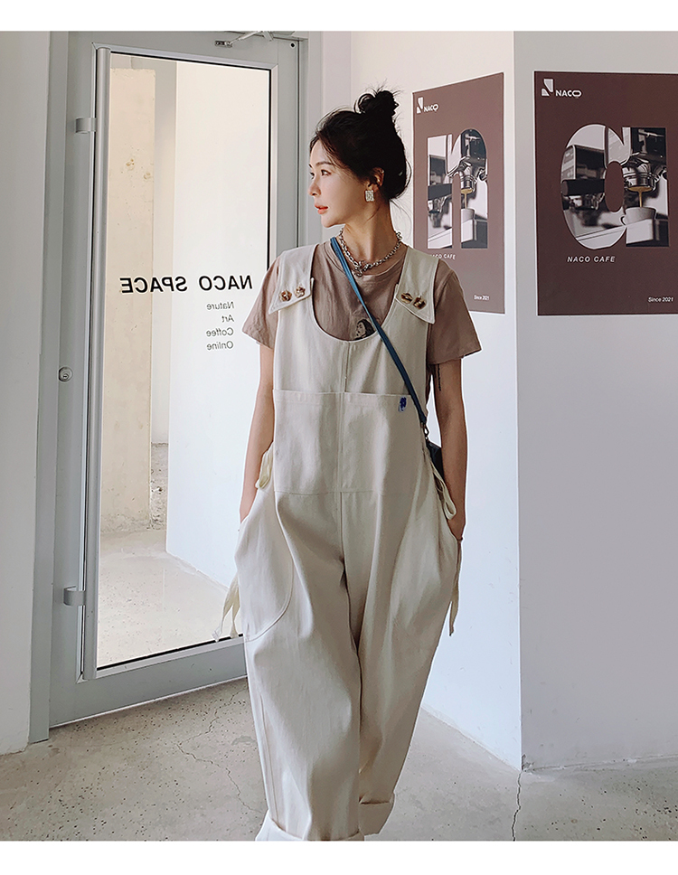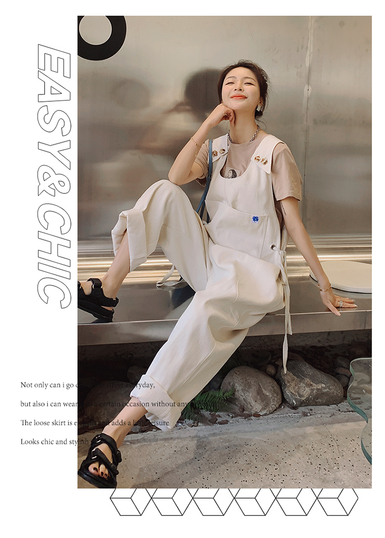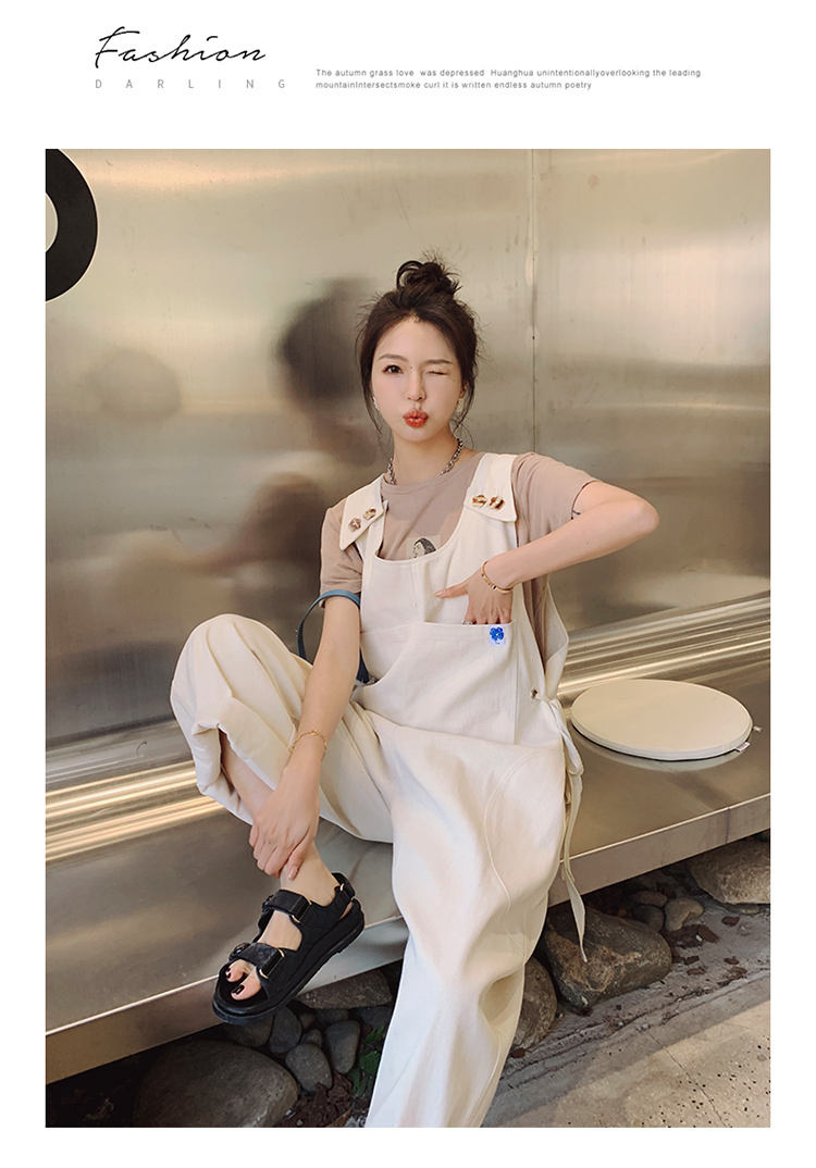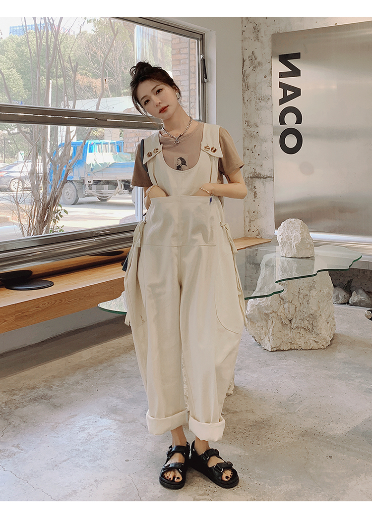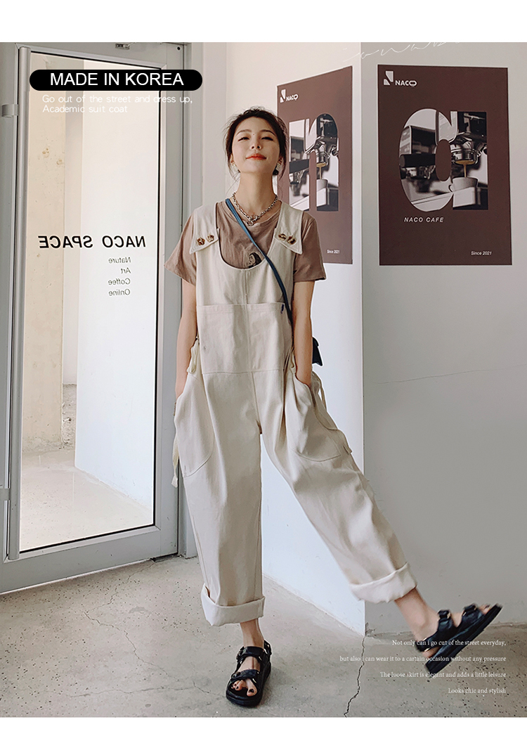 獨家訂製│韓系甜酷風寬鬆鈕扣式吊帶褲(04H3619)