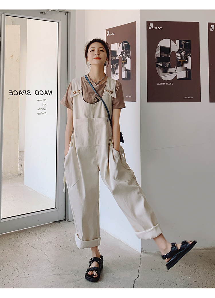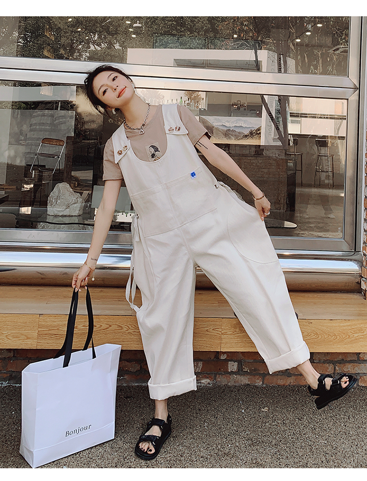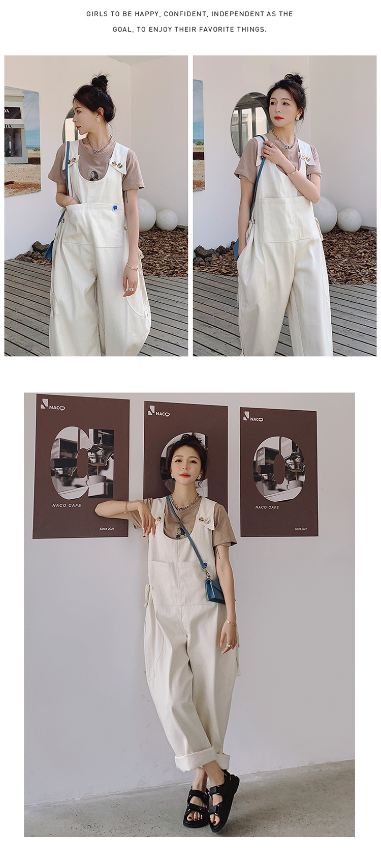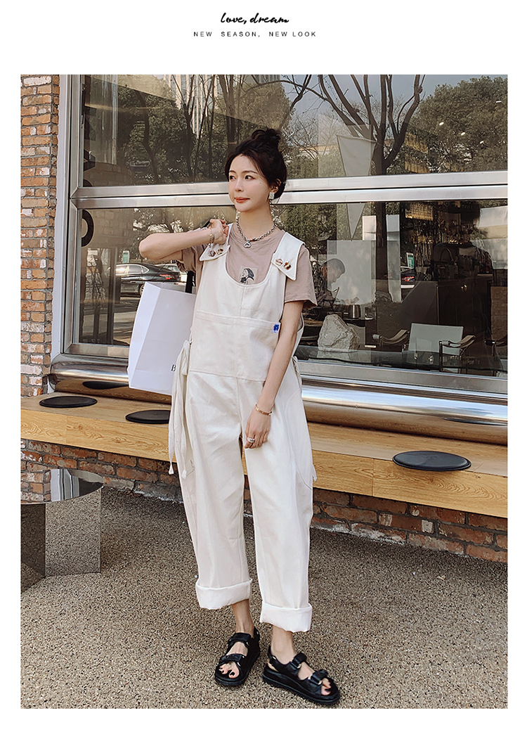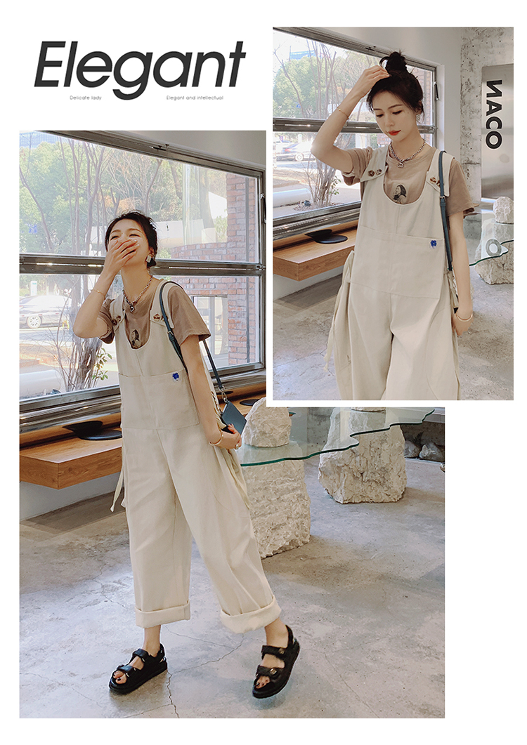 獨家訂製│韓系甜酷風寬鬆鈕扣式吊帶褲(04H3619)
