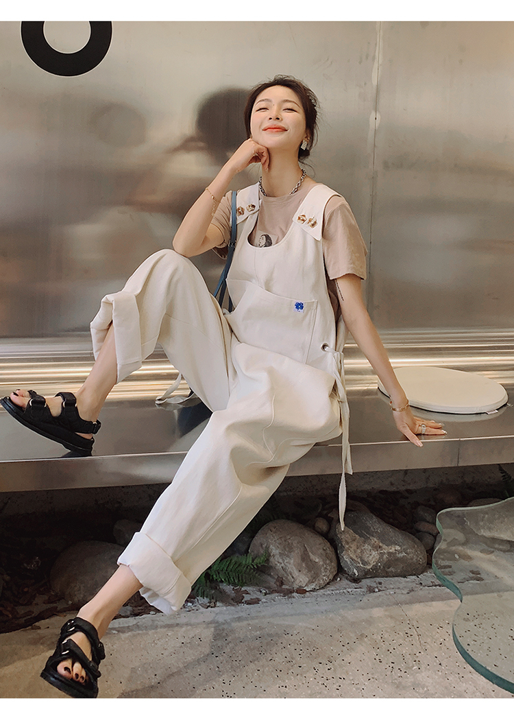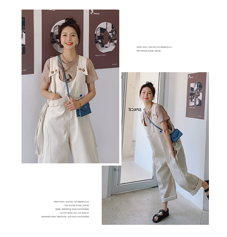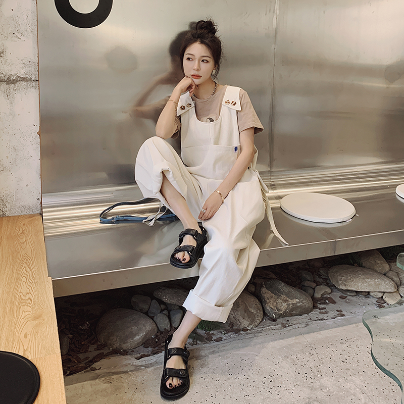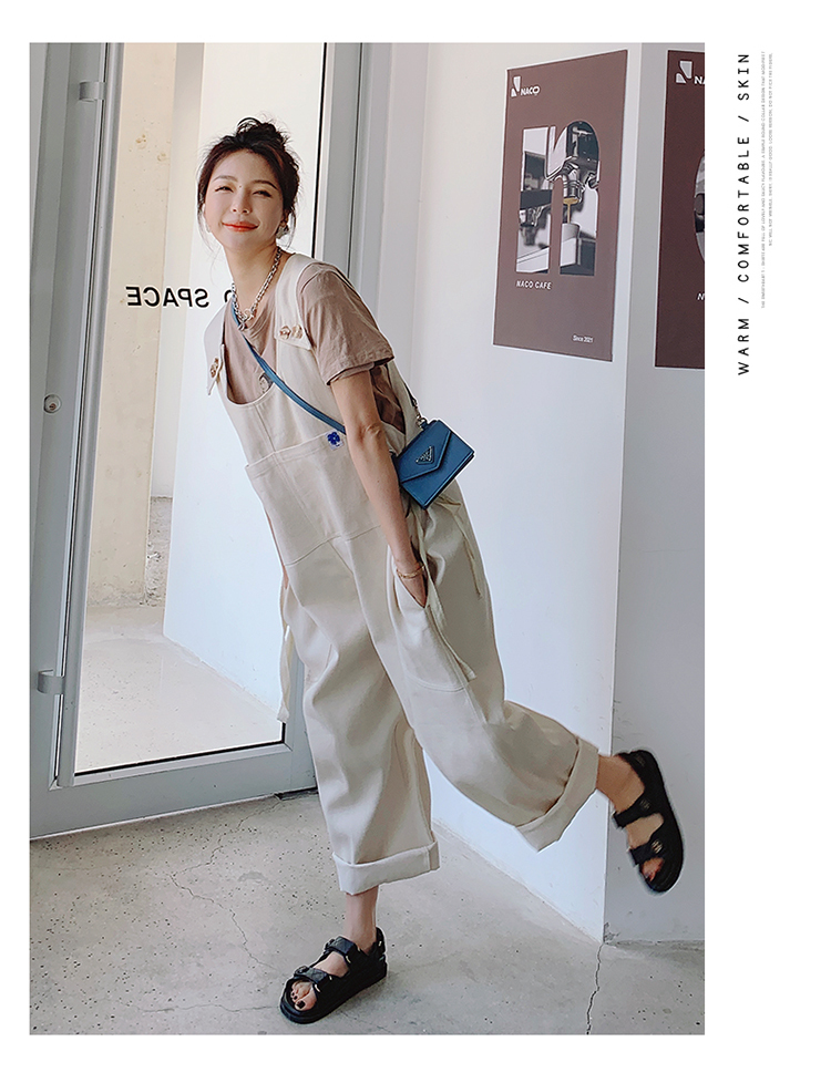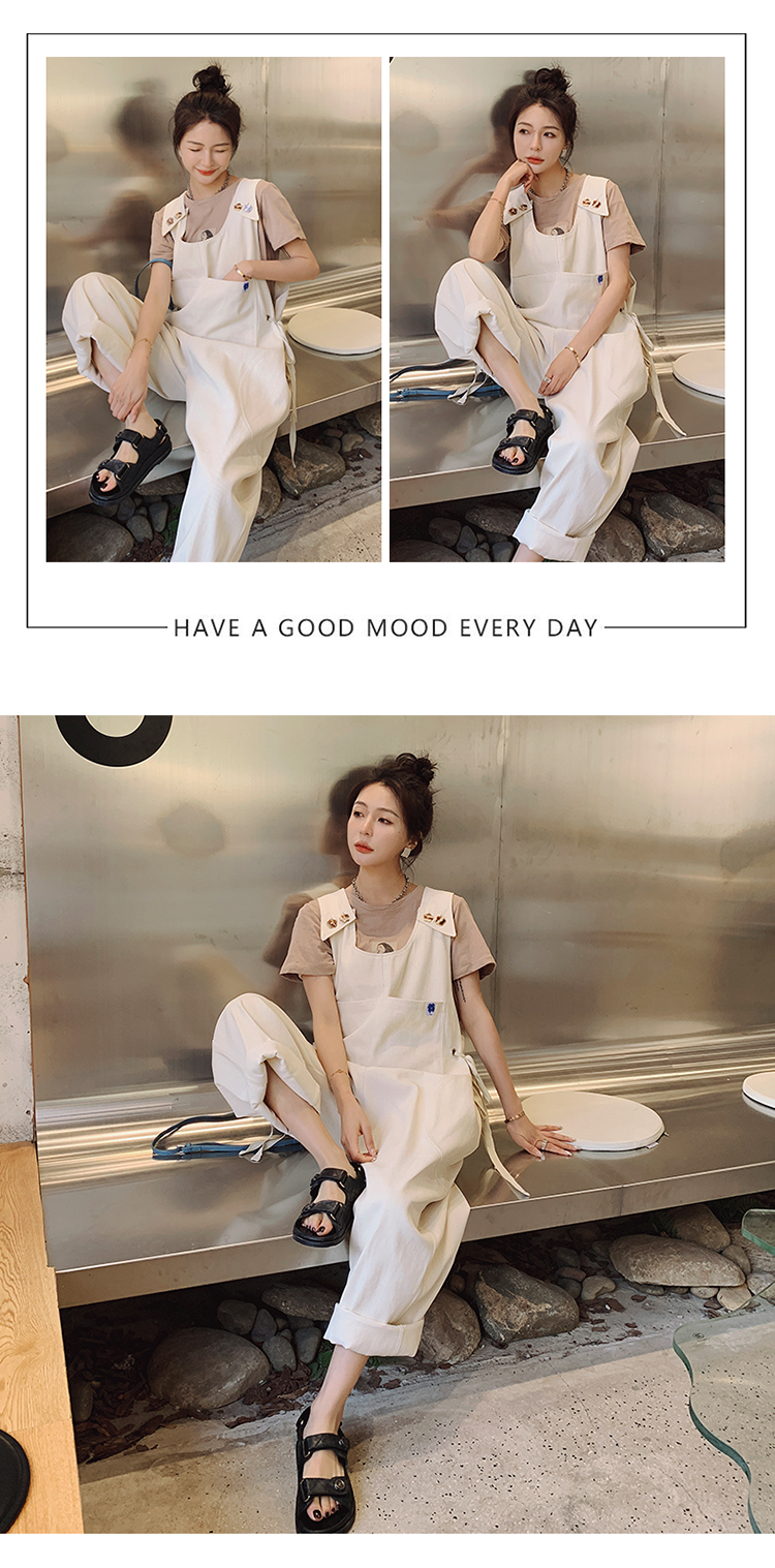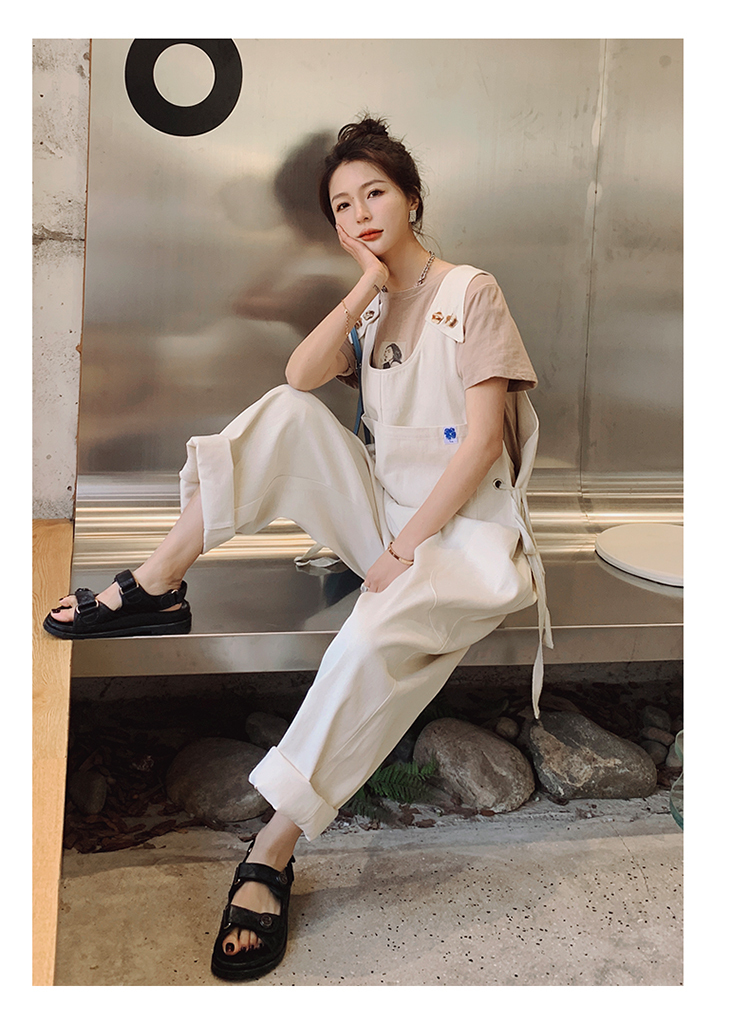 獨家訂製│韓系甜酷風寬鬆鈕扣式吊帶褲(04H3619)