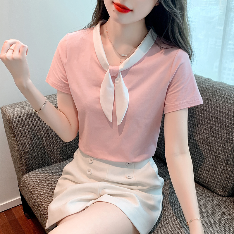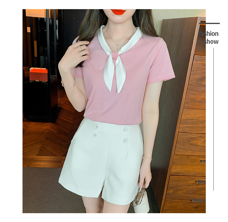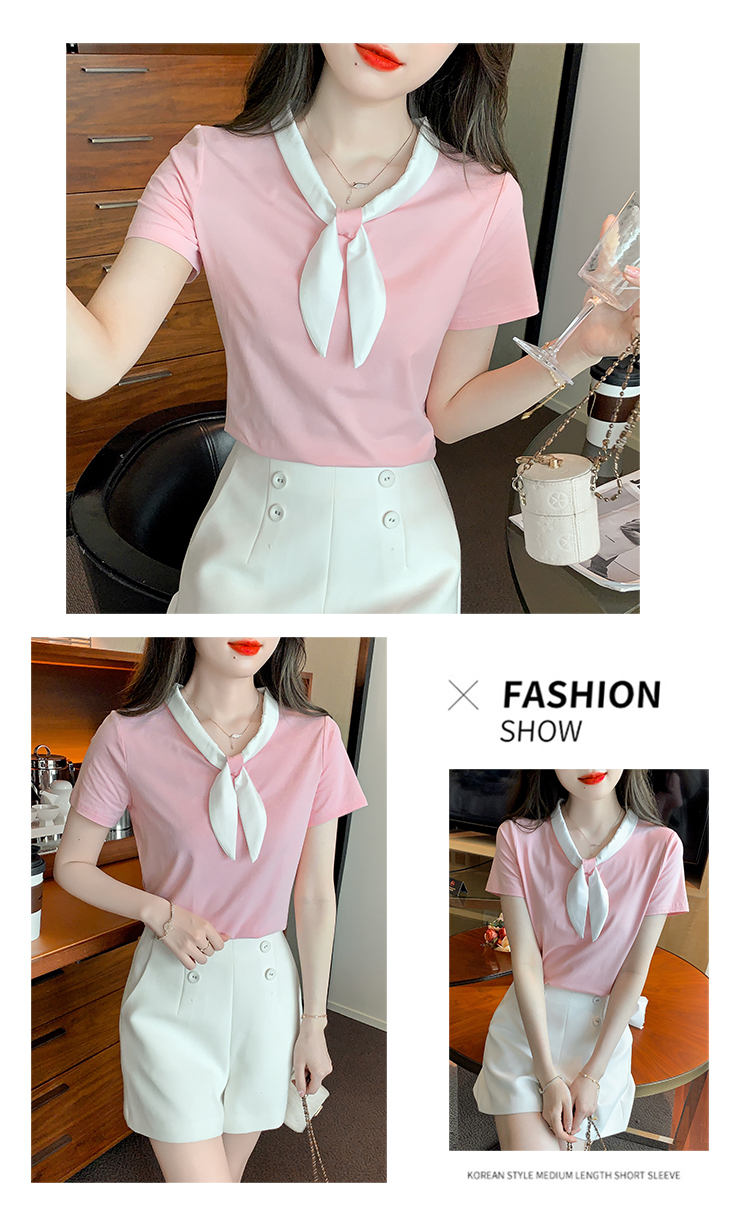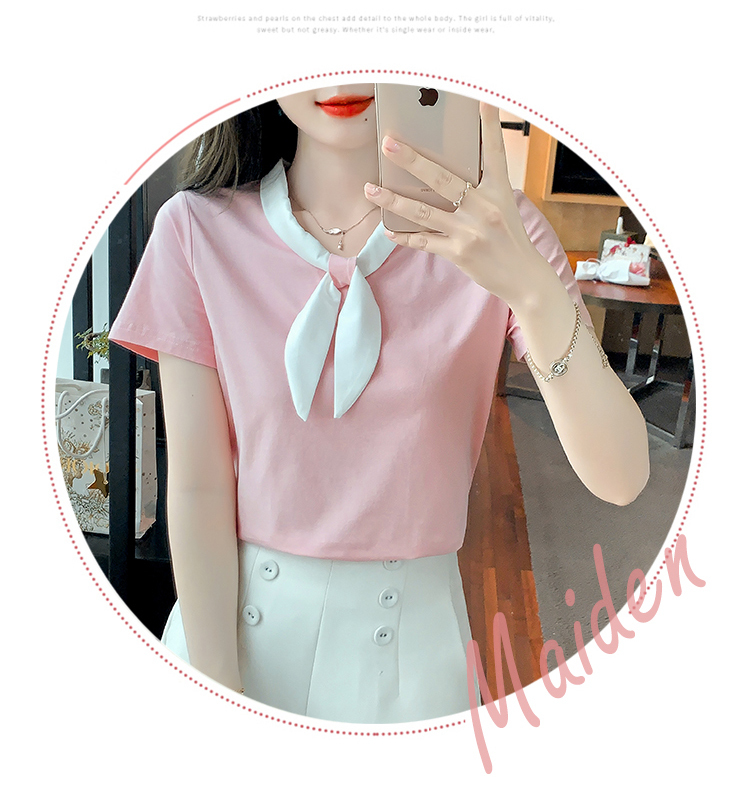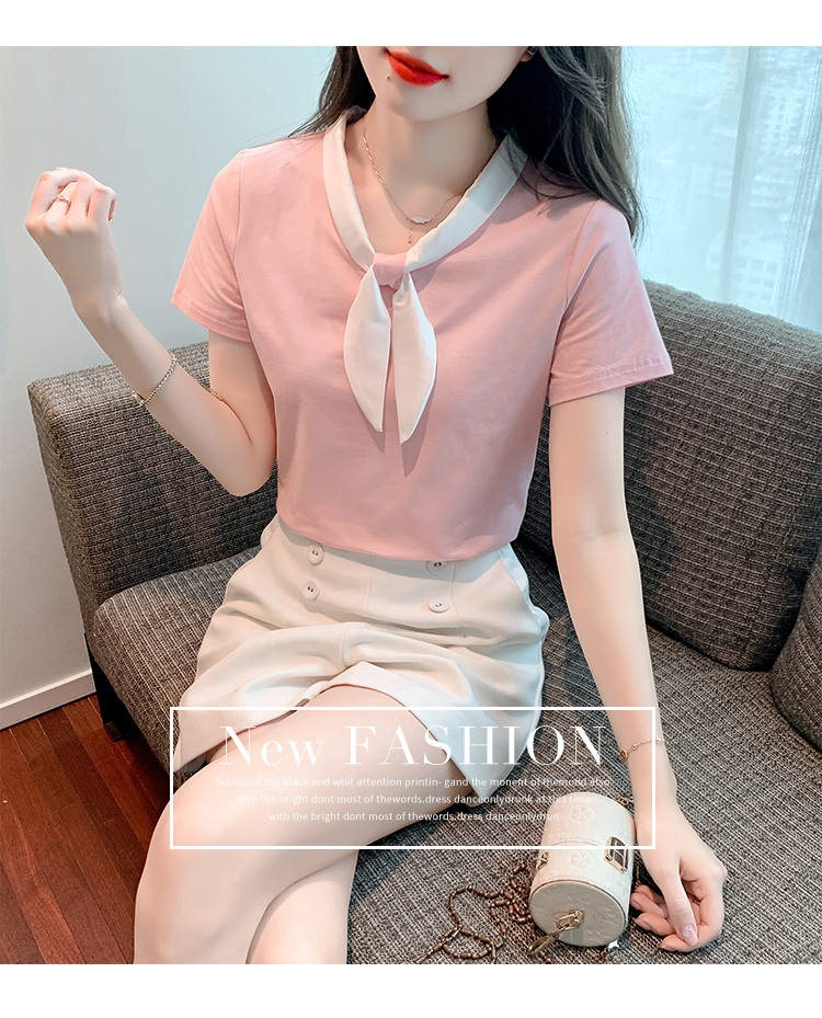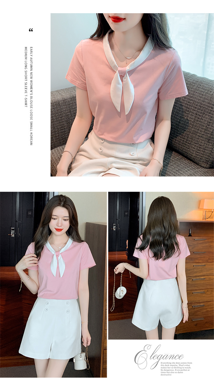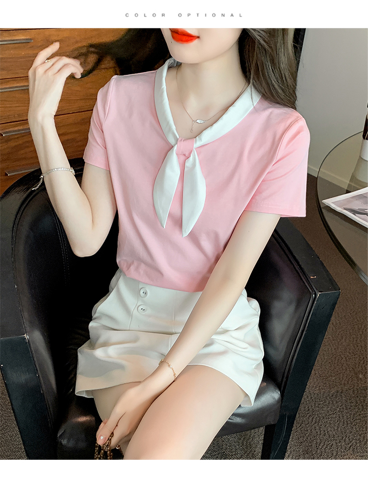 限量特惠|清新甜美撞色領結造型T恤(04TA3366)