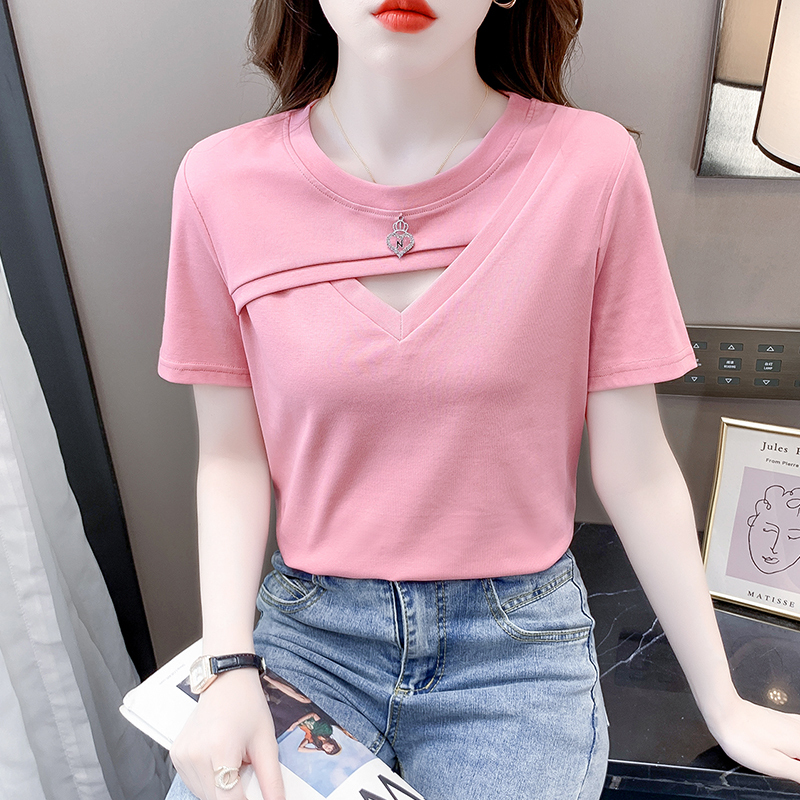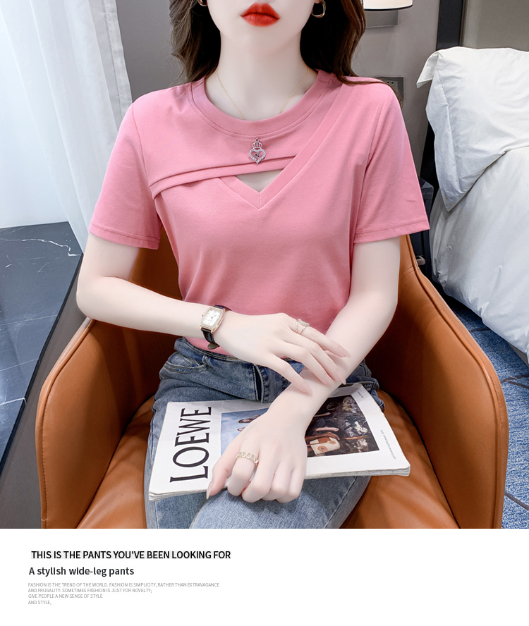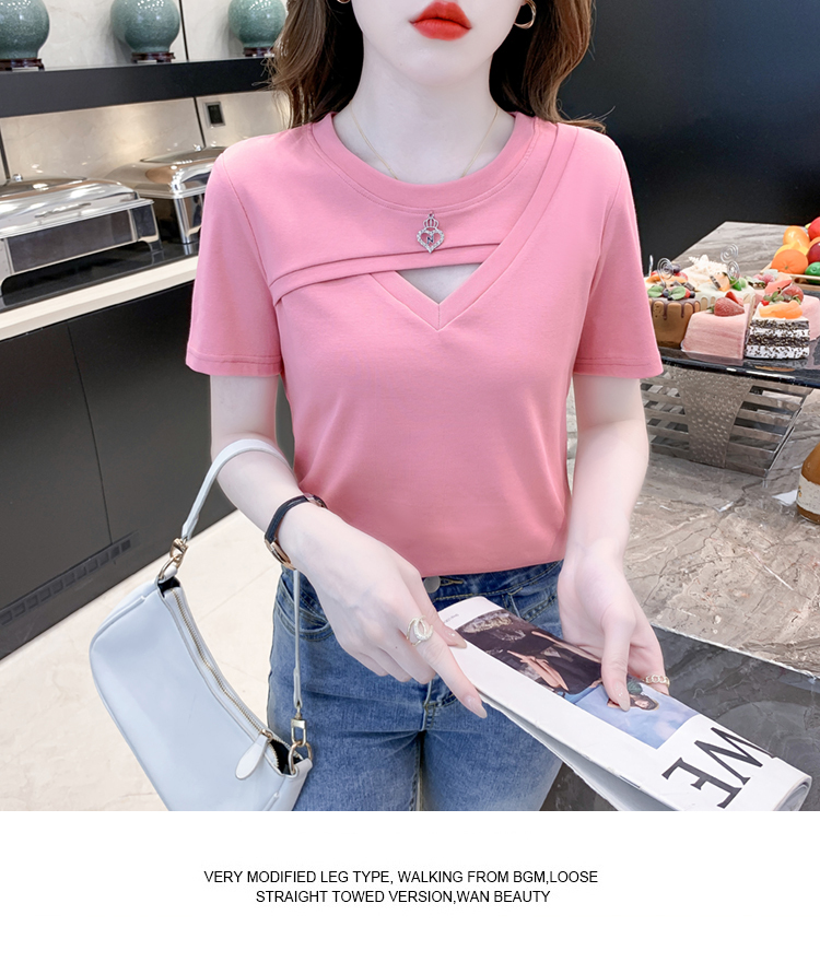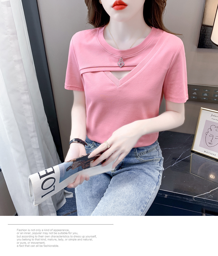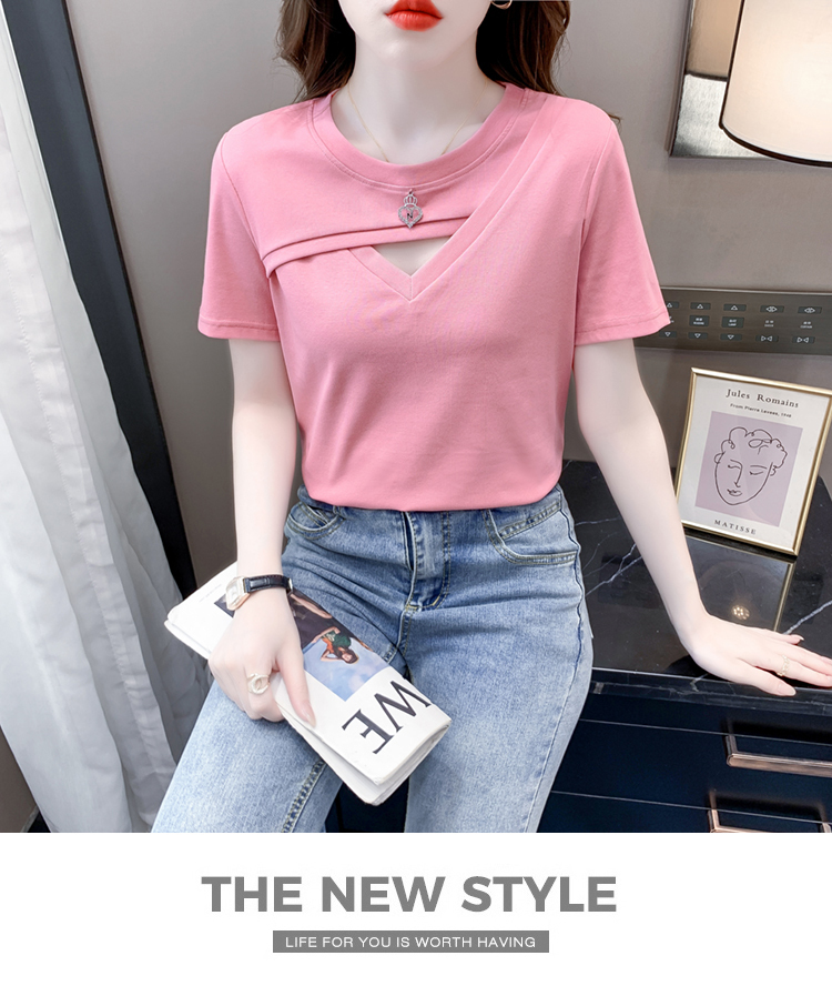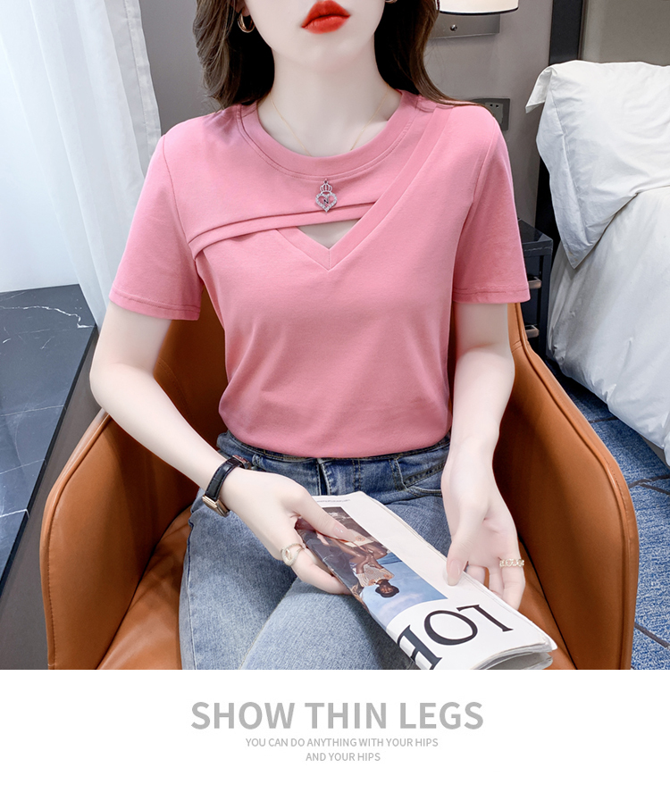 限量特惠|微性感吊鑽裝飾縷空T恤-2色(04TA3379)