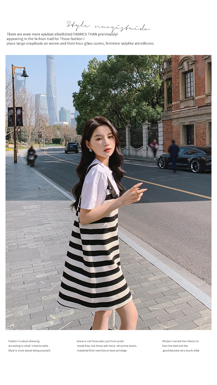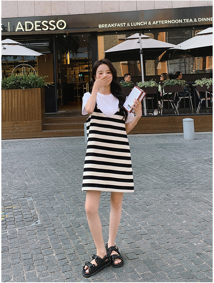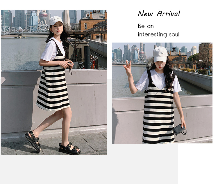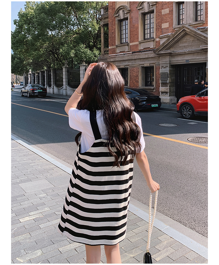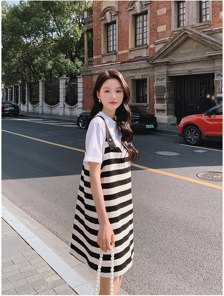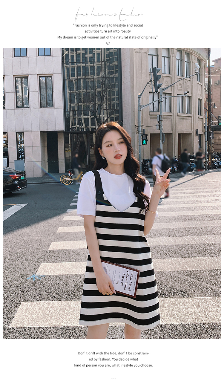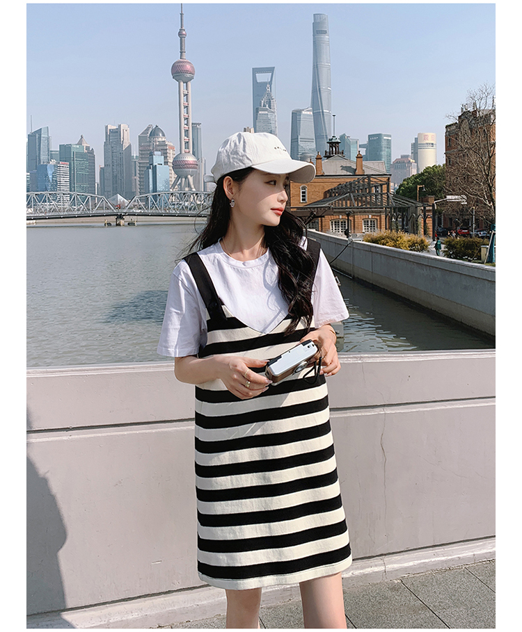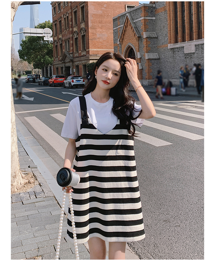 獨家訂製│韓系減齡感純色T恤+條紋吊帶裙兩件式套裝組(04TA3402)
