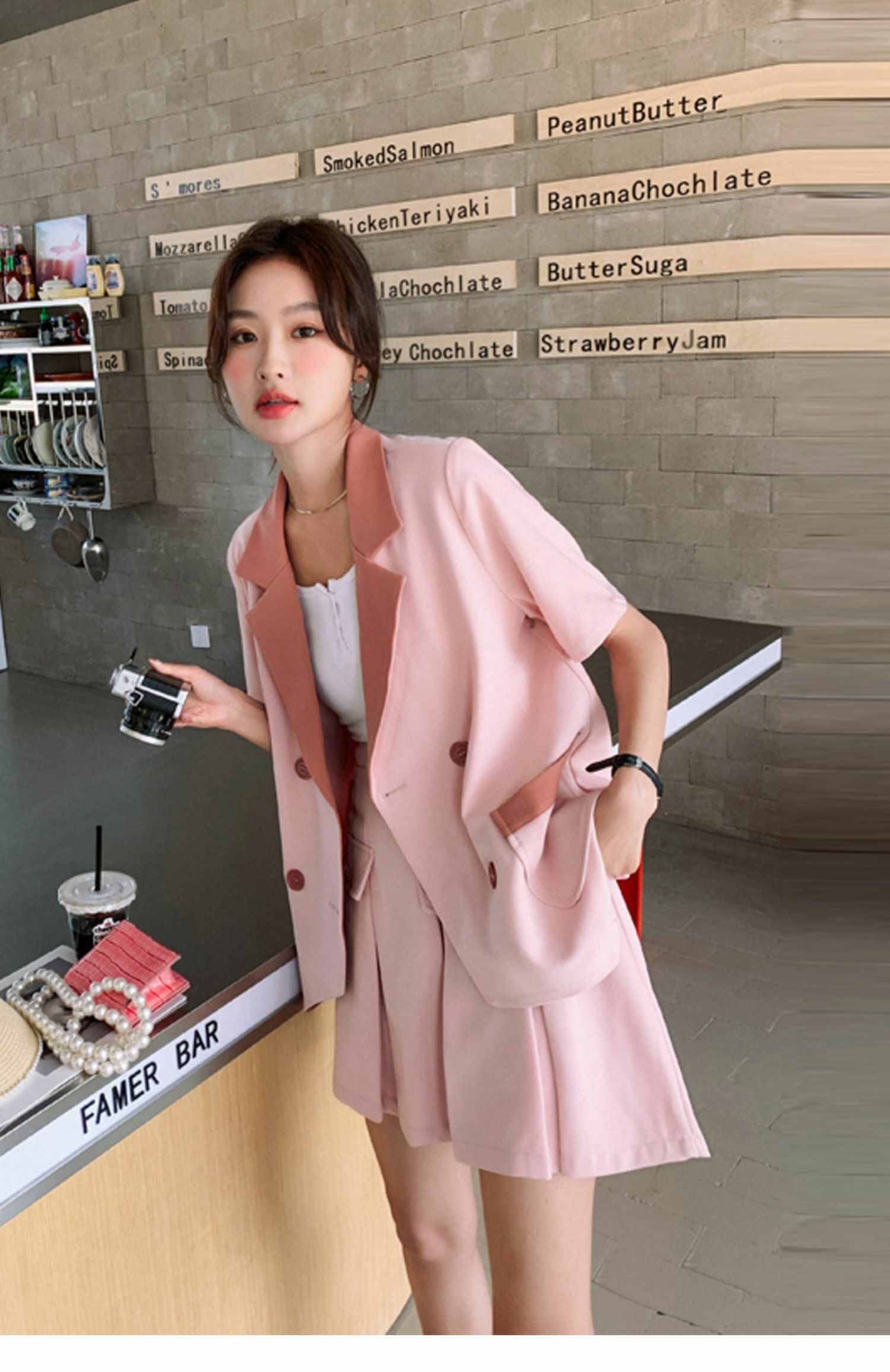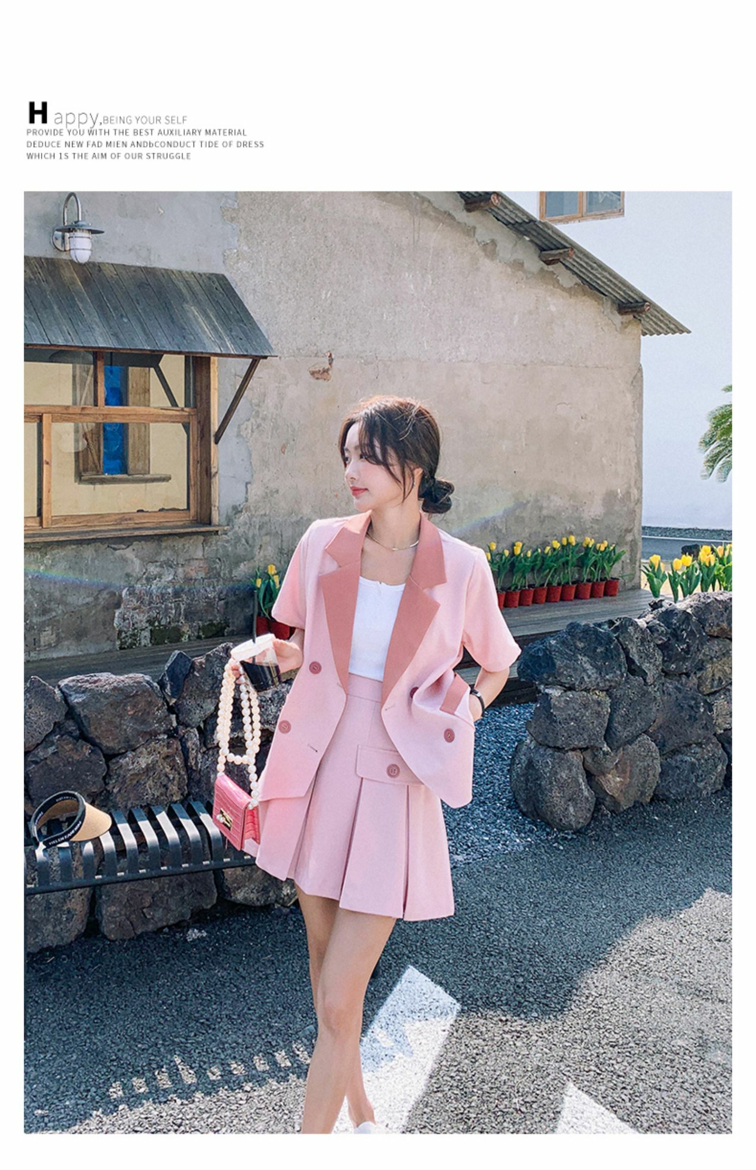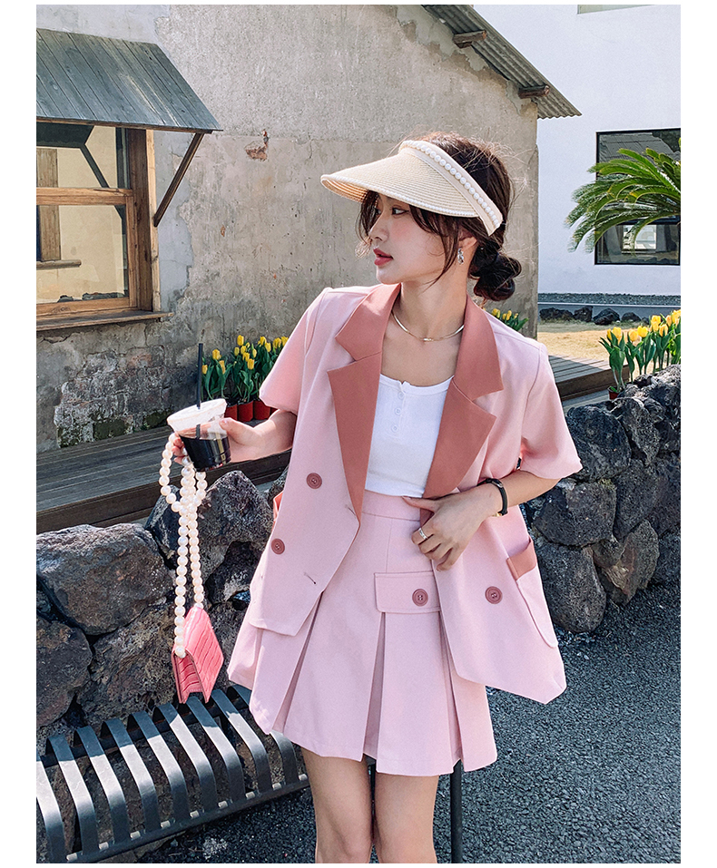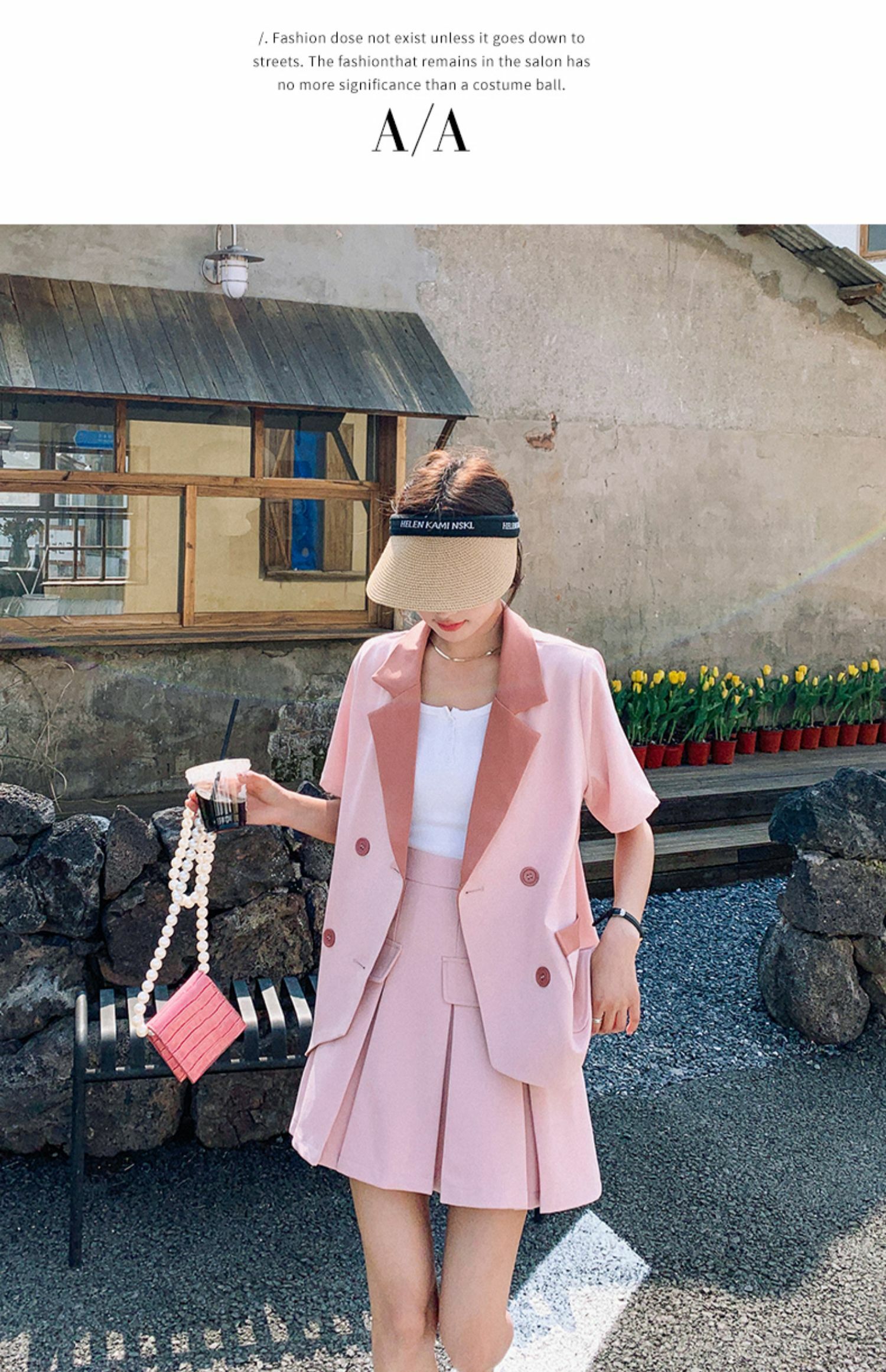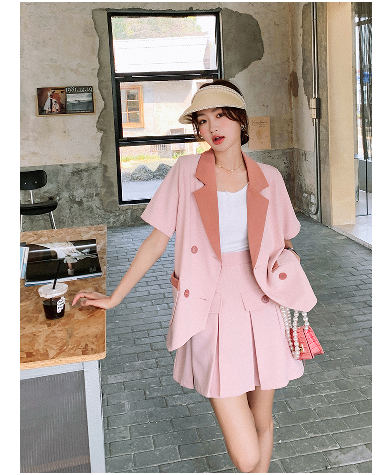 獨家訂製│韓系率性撞色西裝外套+百褶裙兩件式套裝組(04TA3411)