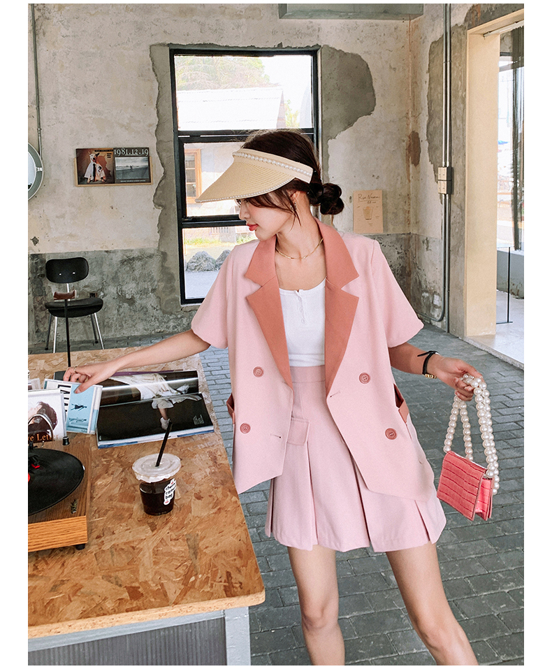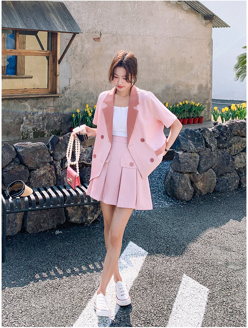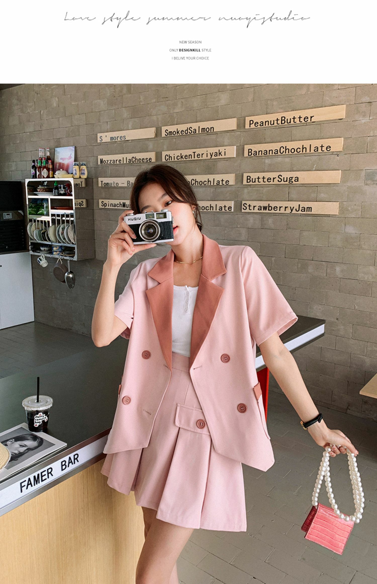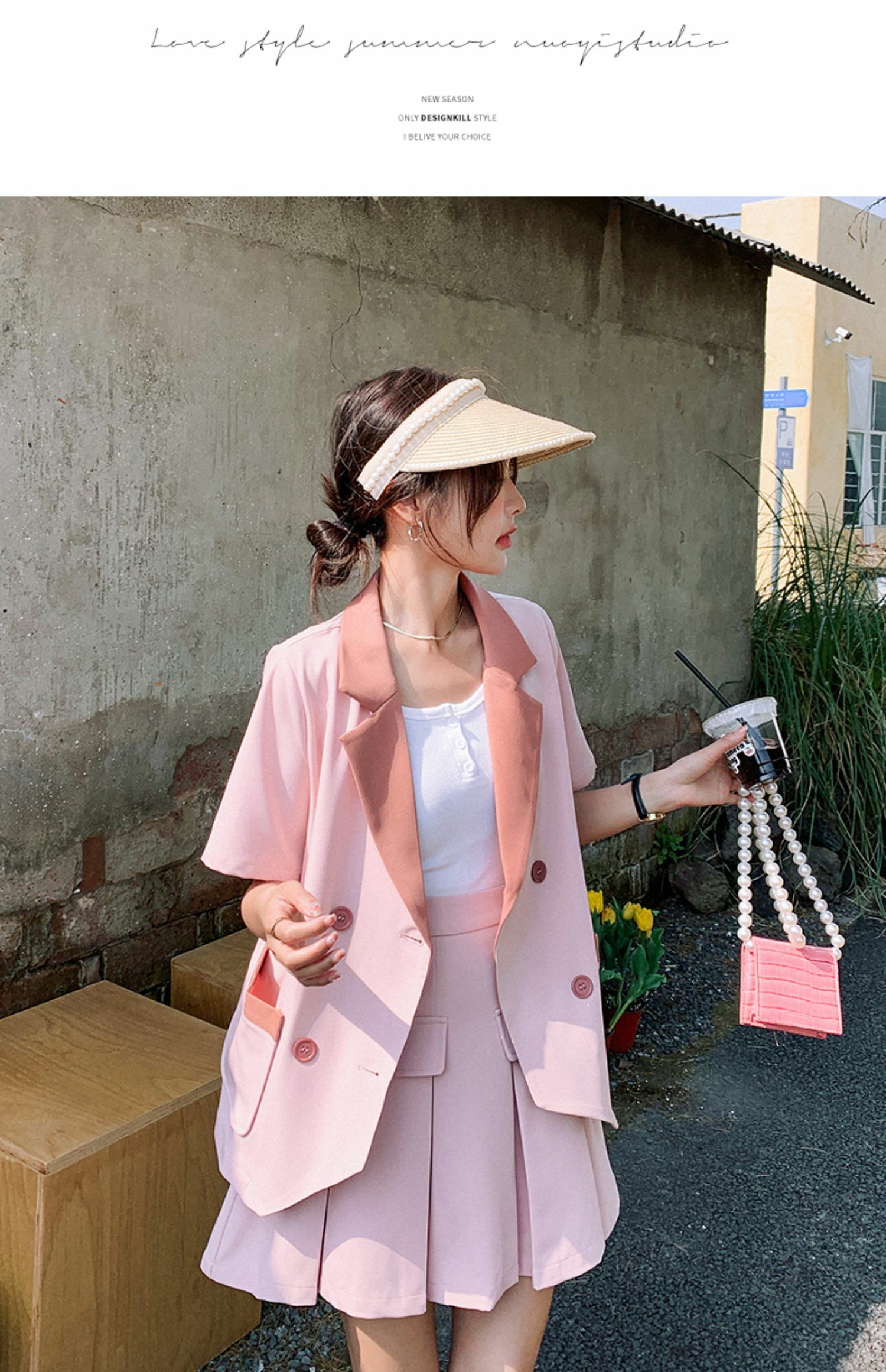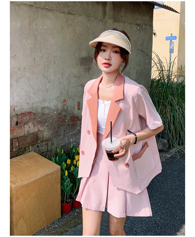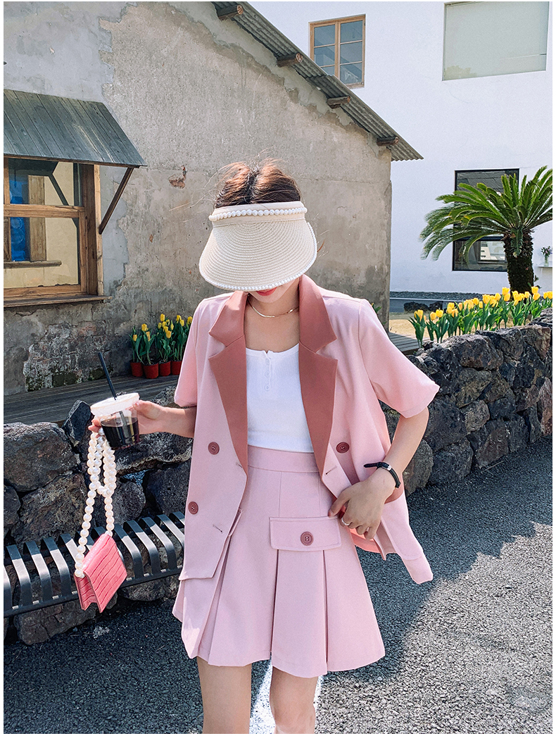 獨家訂製│韓系率性撞色西裝外套+百褶裙兩件式套裝組(04TA3411)