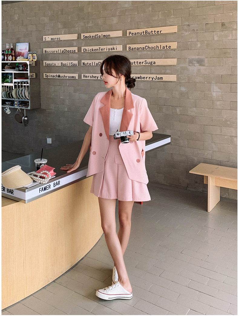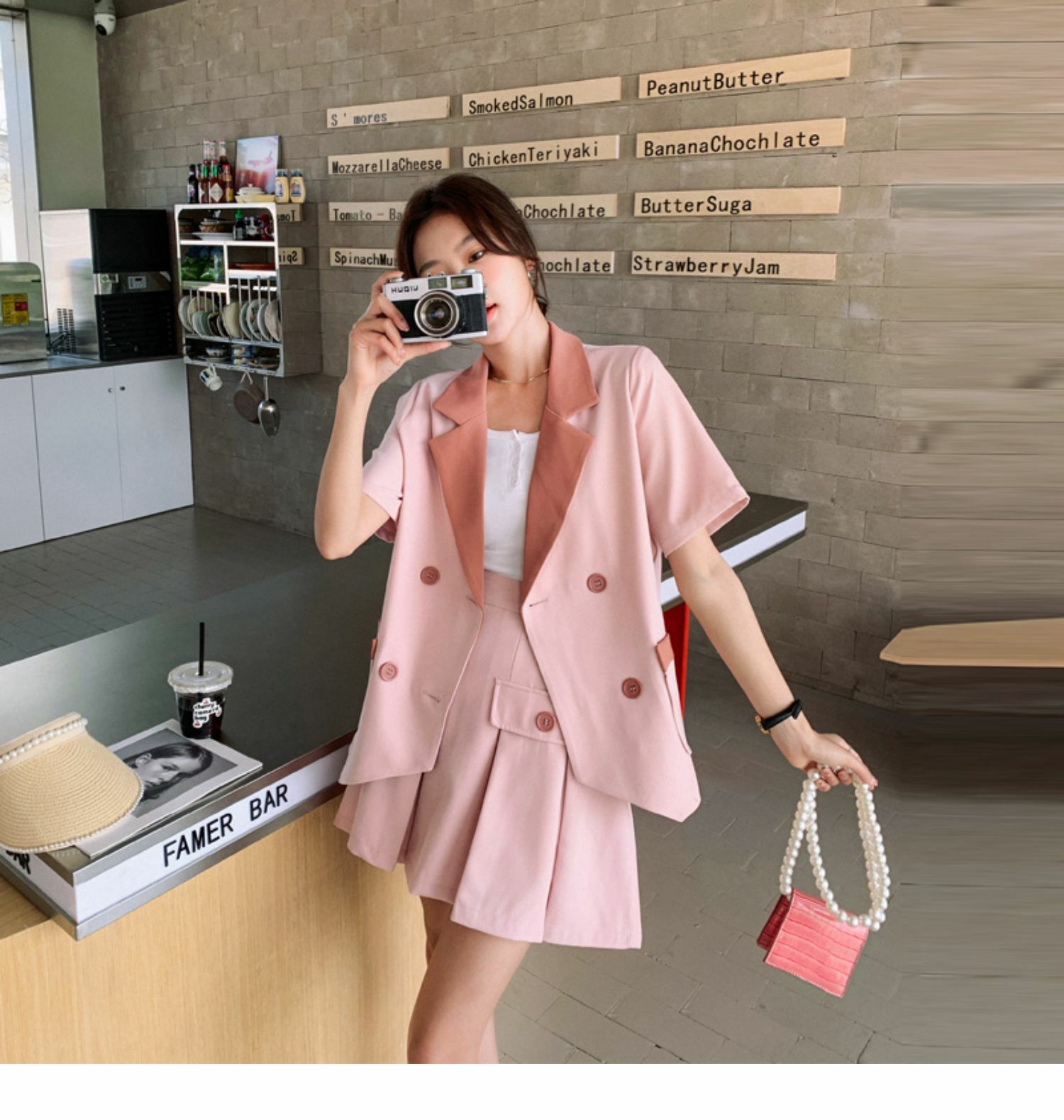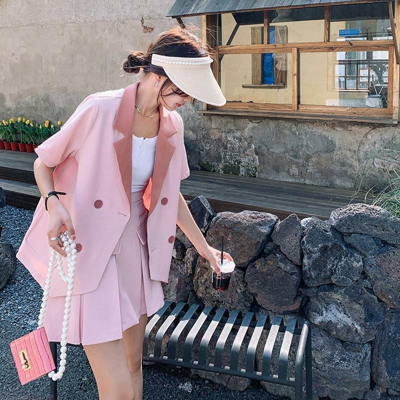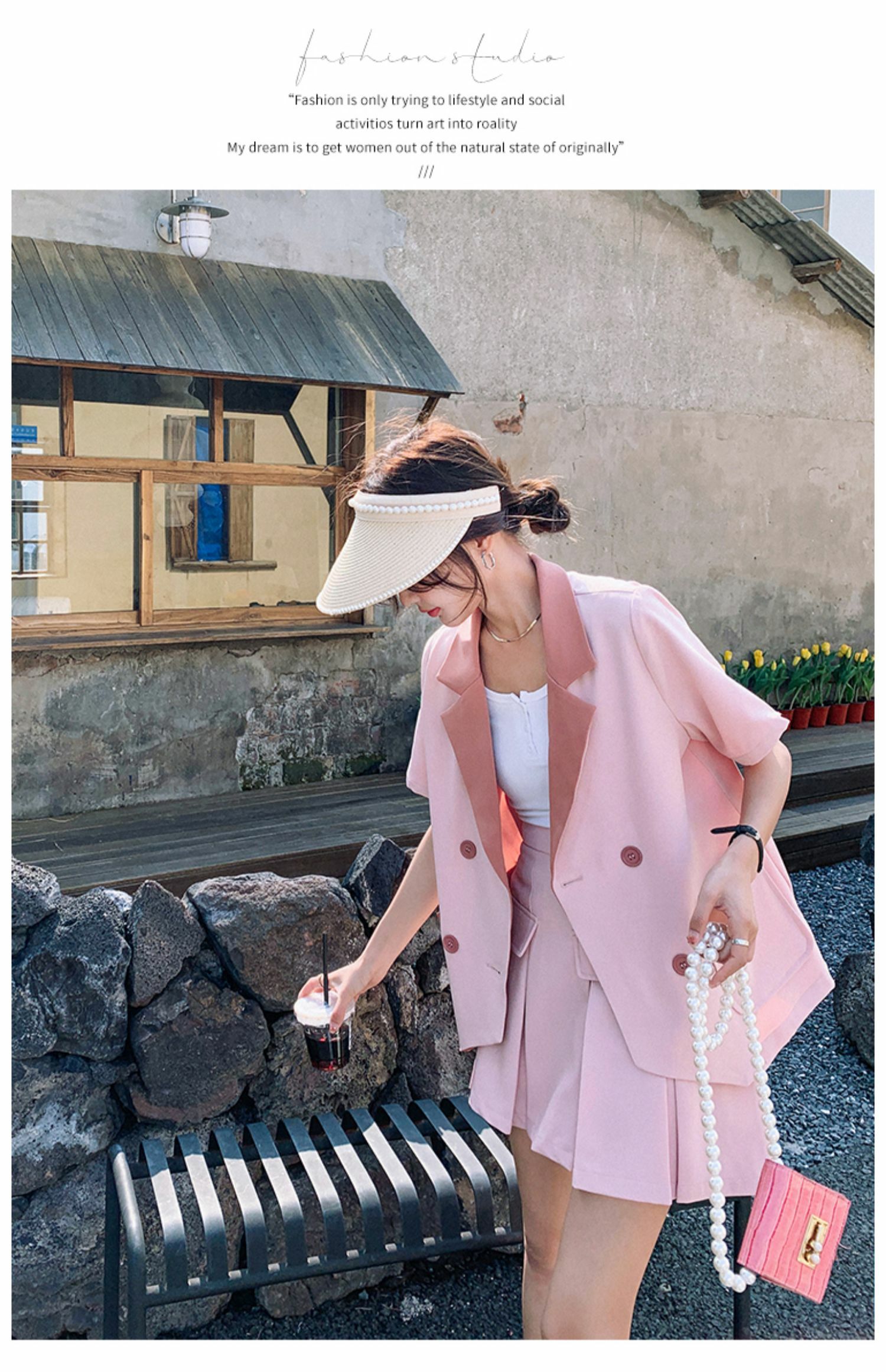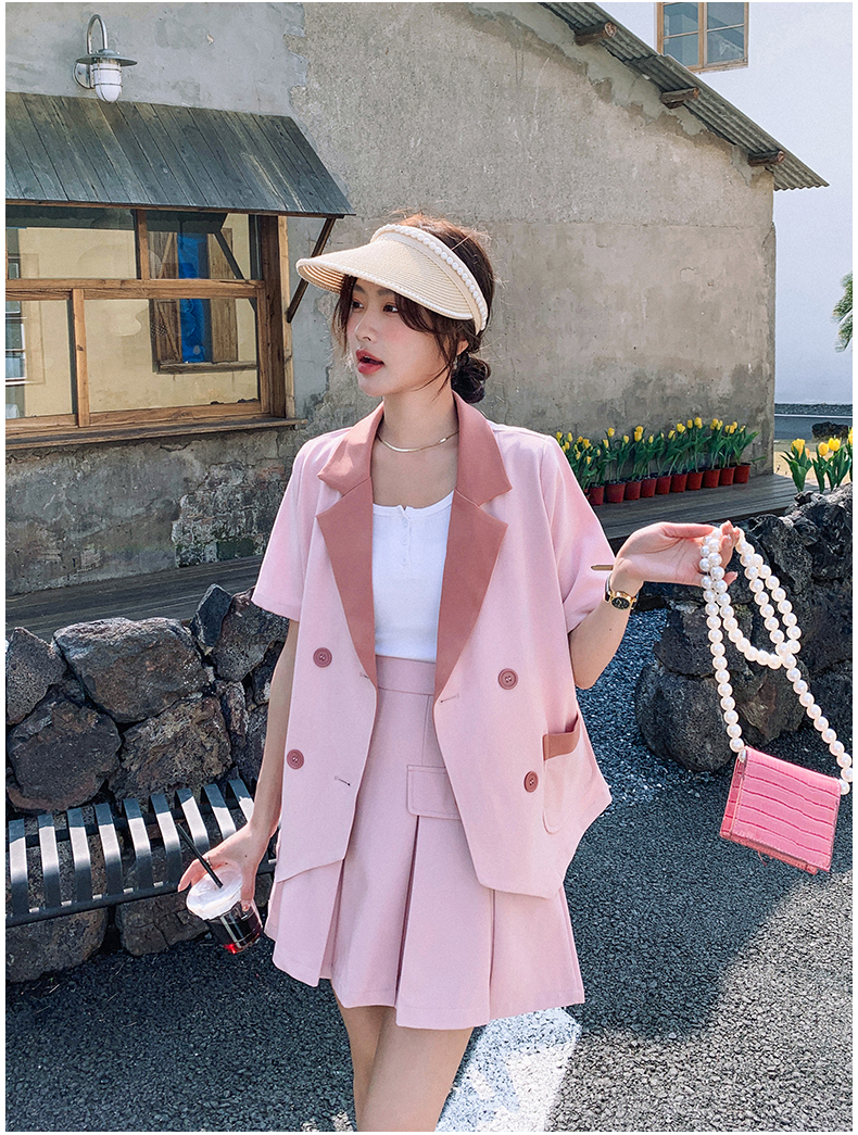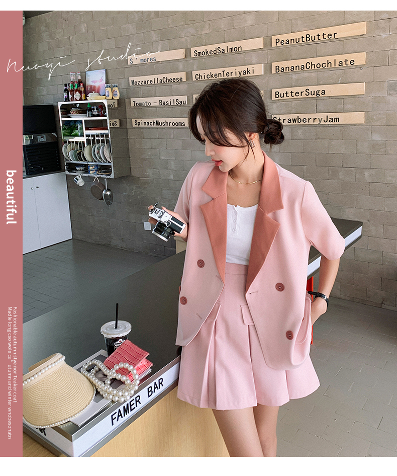 獨家訂製│韓系率性撞色西裝外套+百褶裙兩件式套裝組(04TA3411)