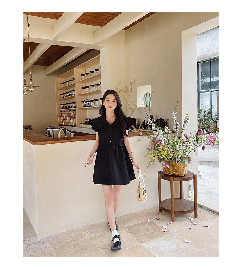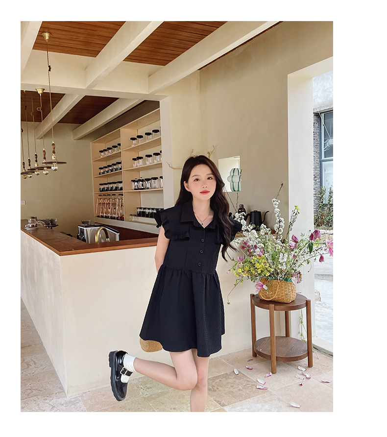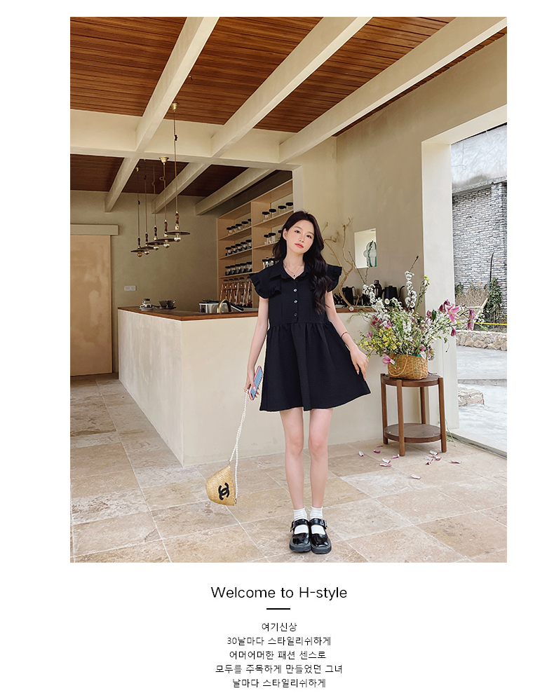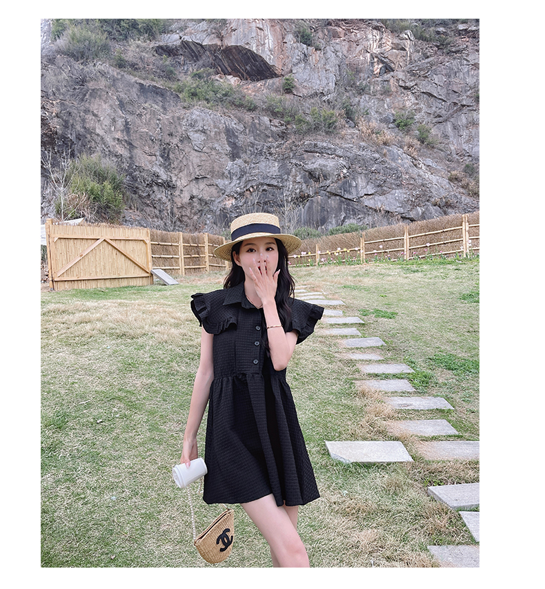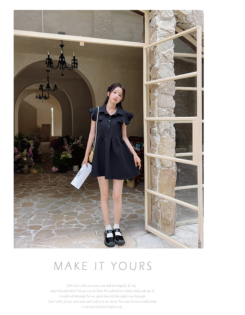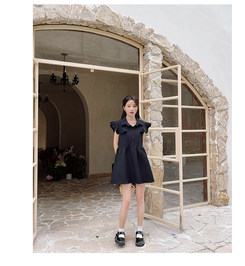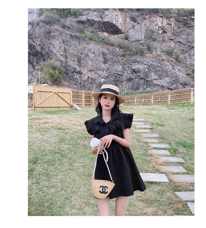 獨家訂製│韓系甜美感壓紋飛飛袖收腰連衣裙(04TA3412)