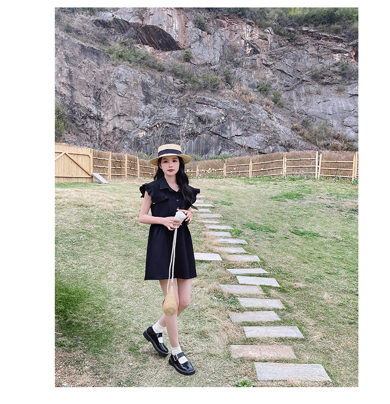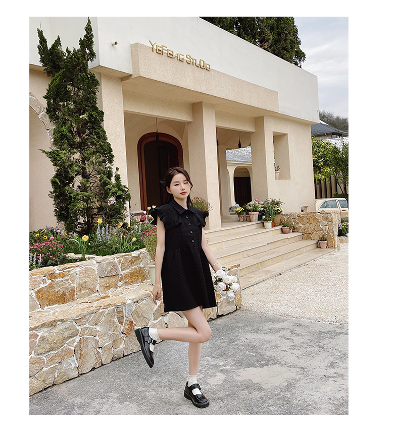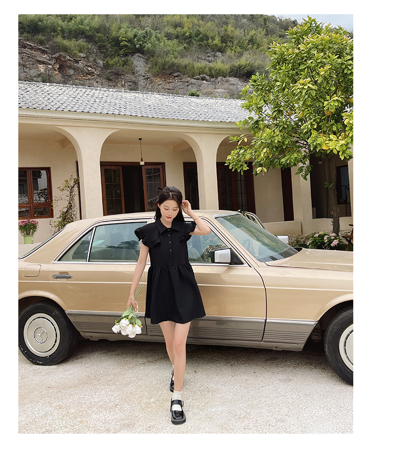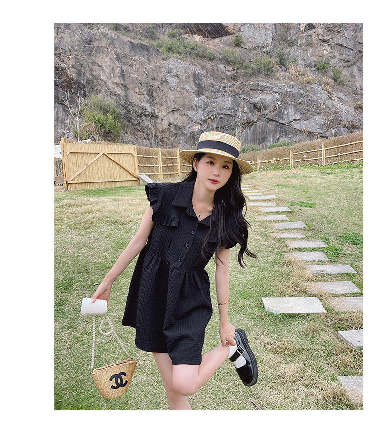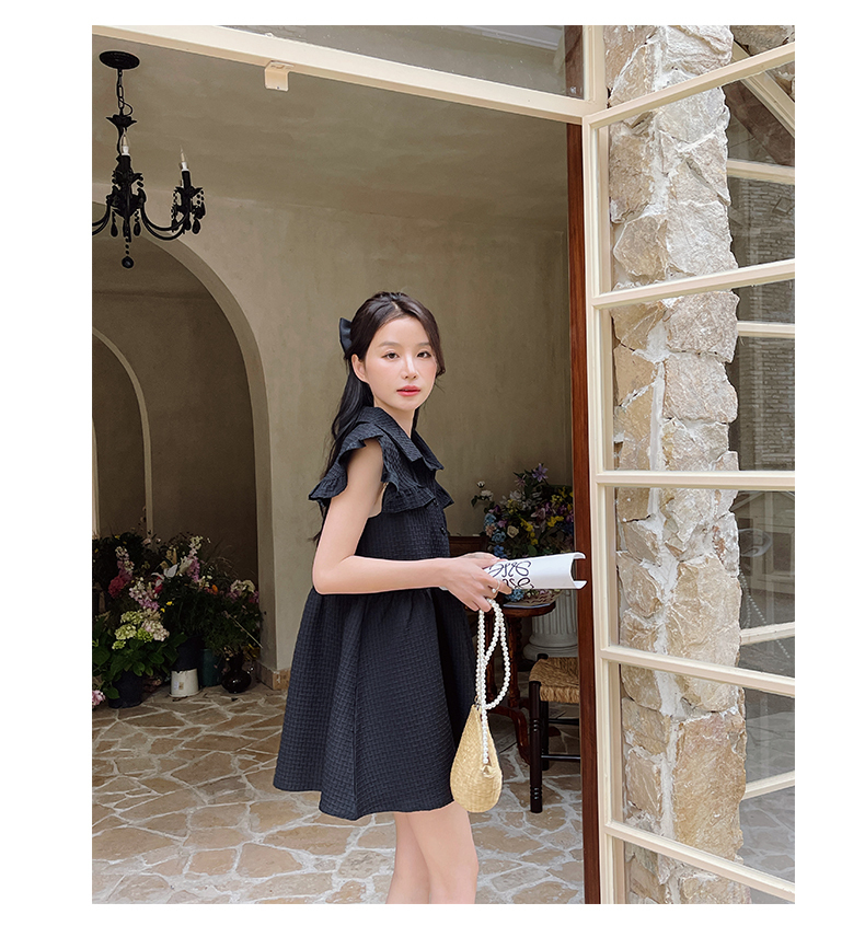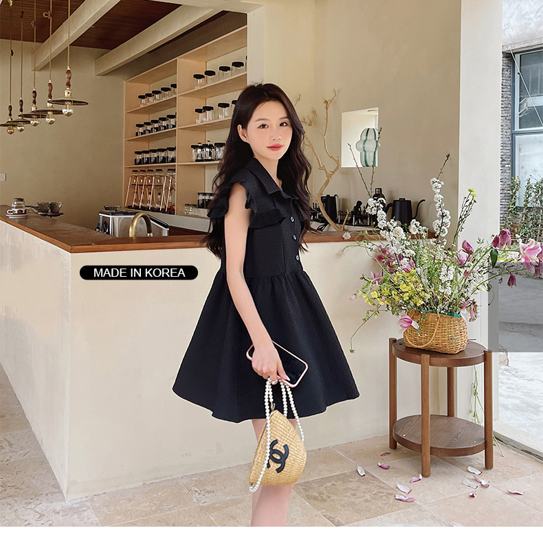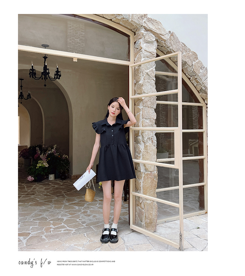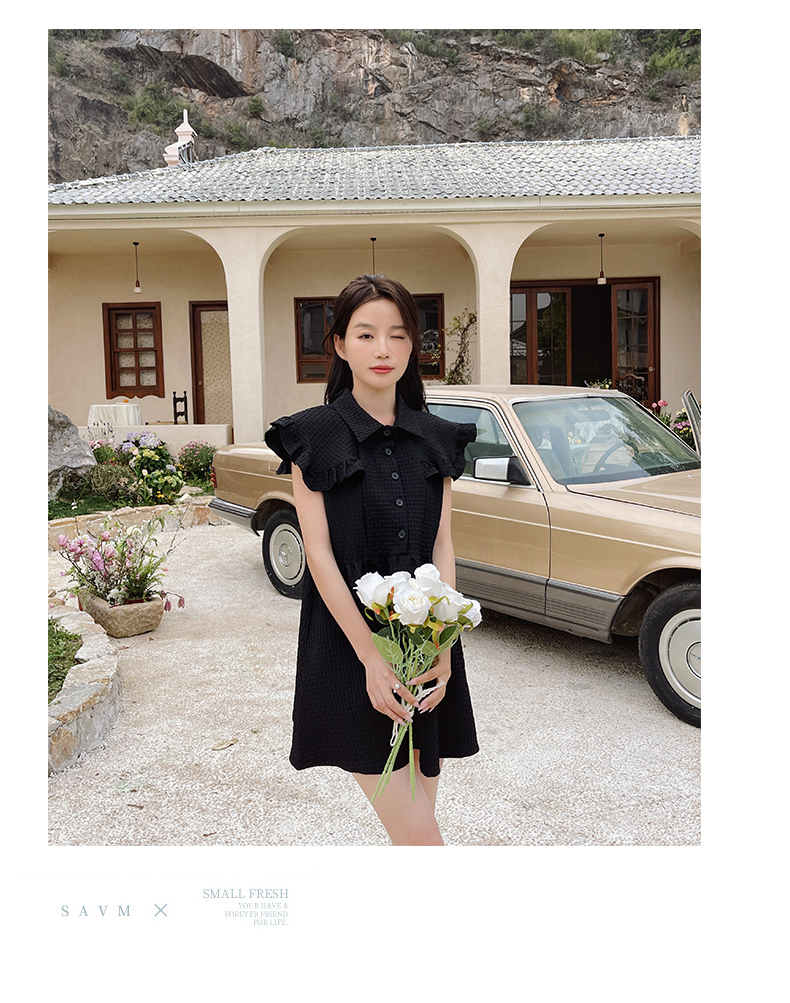 獨家訂製│韓系甜美感壓紋飛飛袖收腰連衣裙(04TA3412)