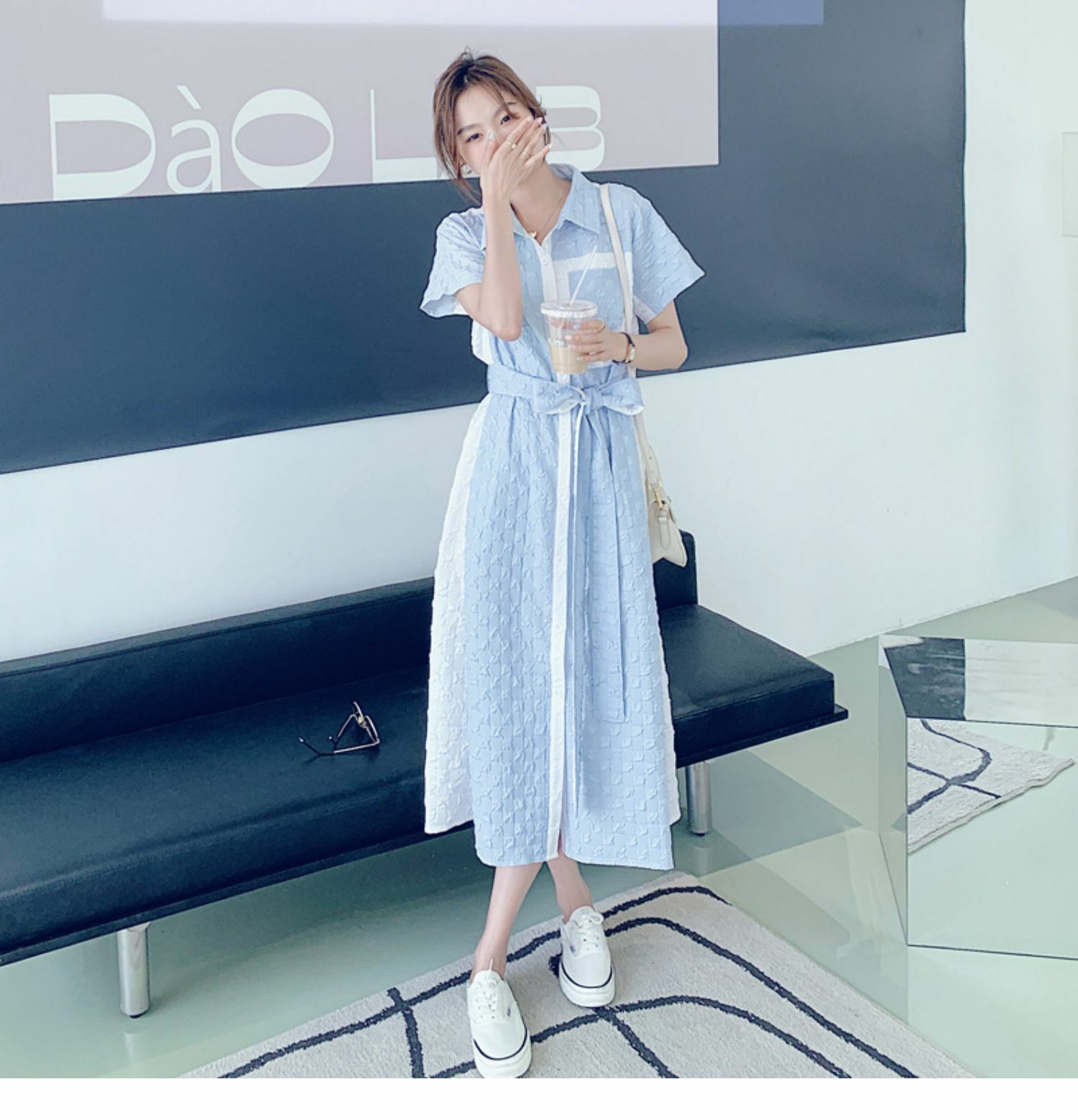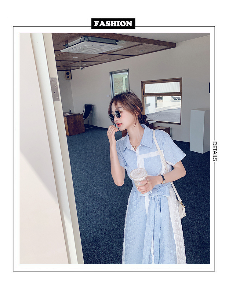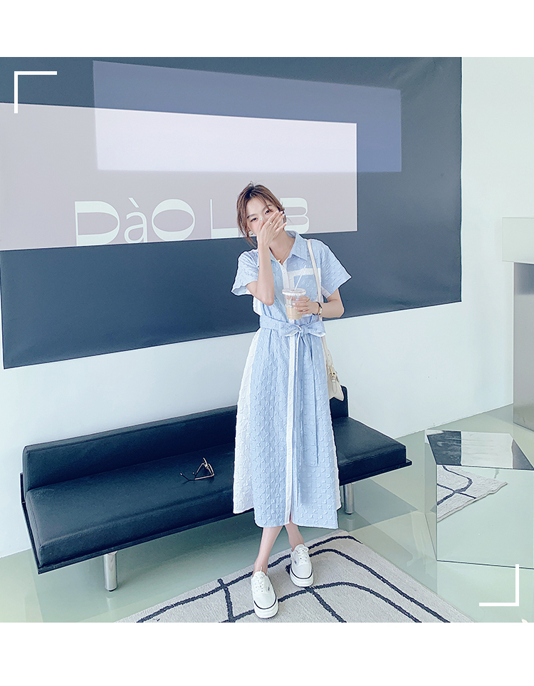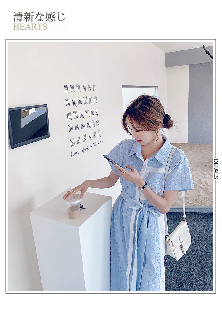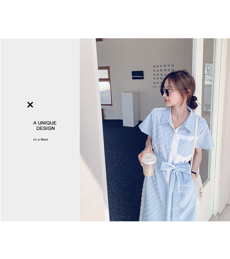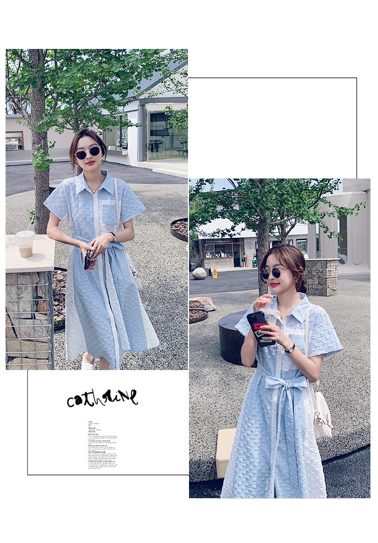 獨家訂製│韓系氣質感撞色壓紋繫帶連衣裙(04TA3414)