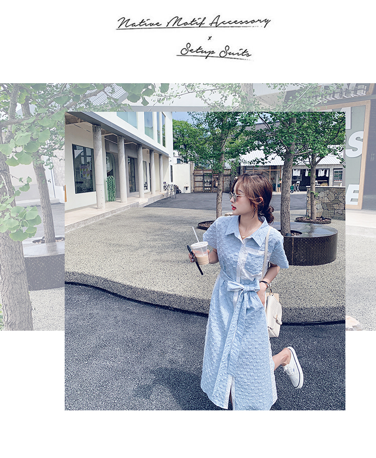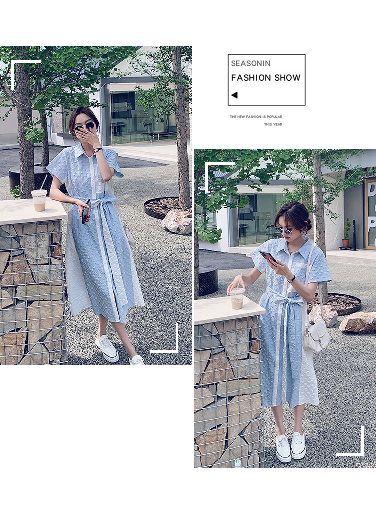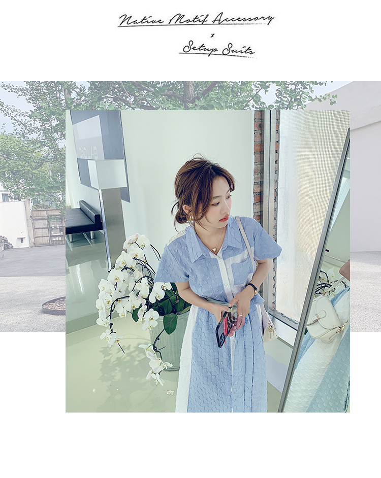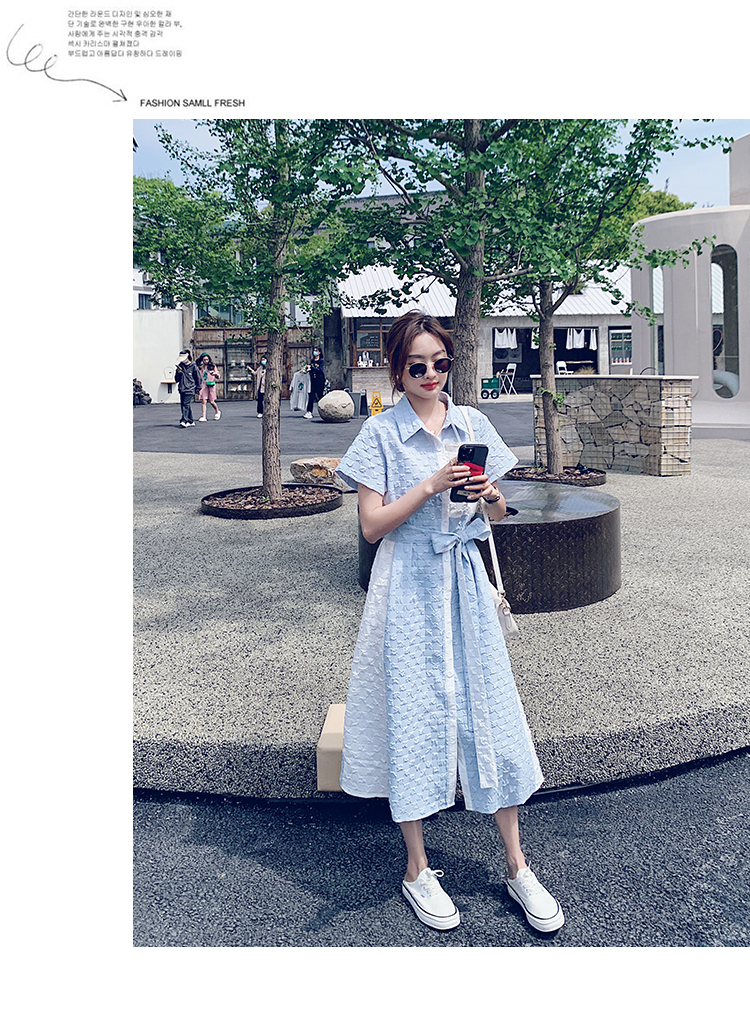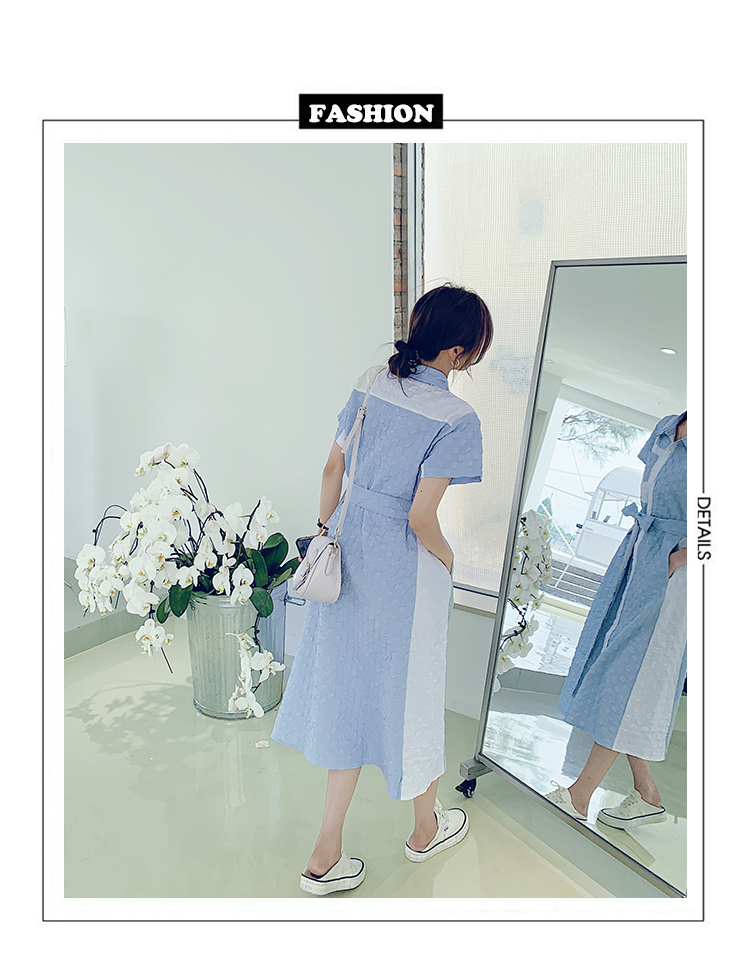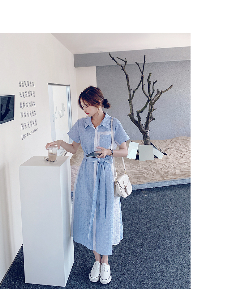 獨家訂製│韓系氣質感撞色壓紋繫帶連衣裙(04TA3414)