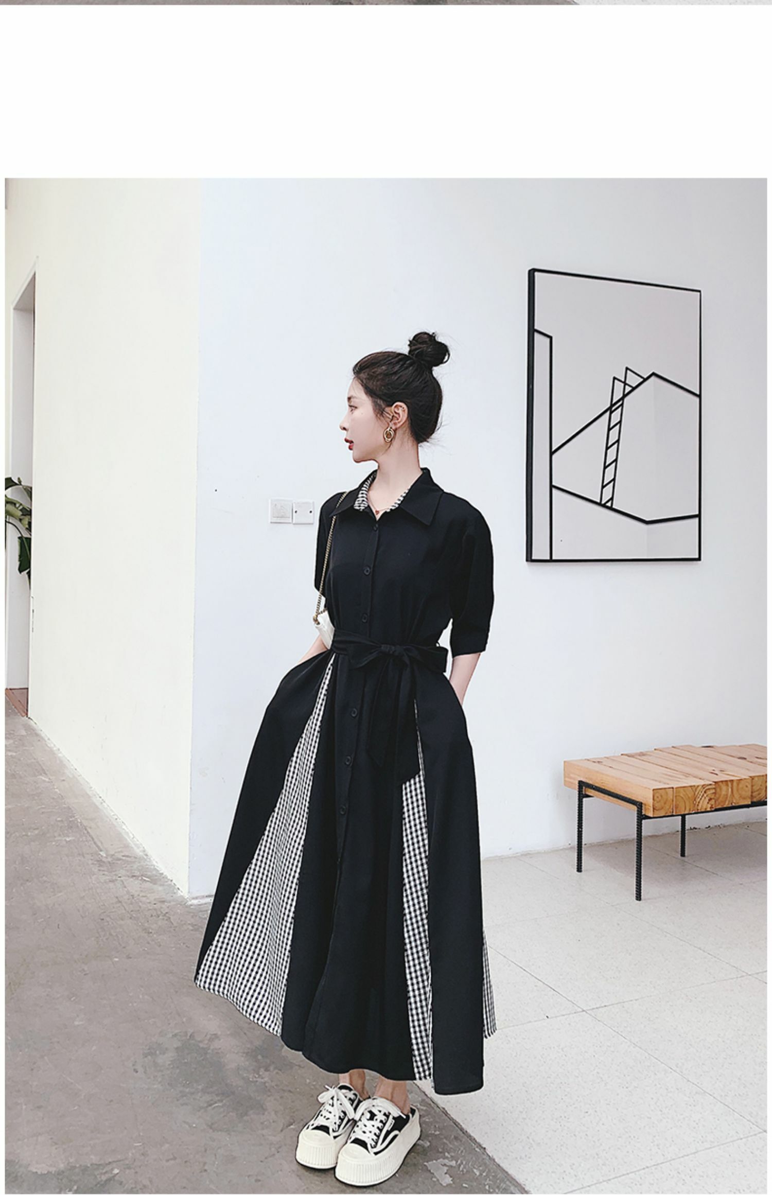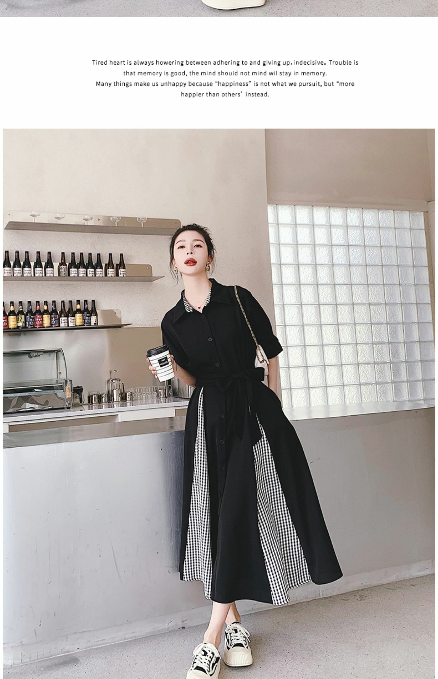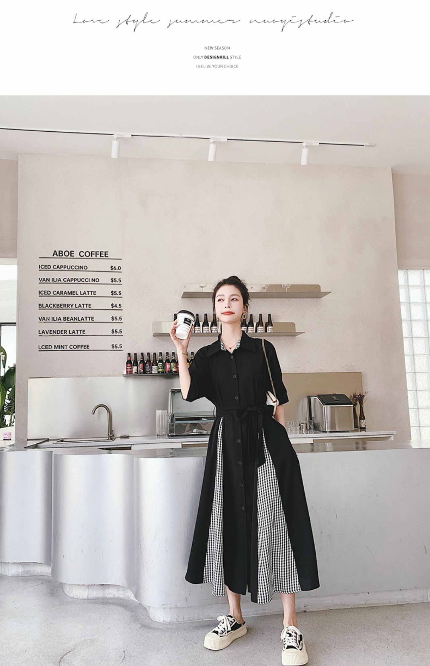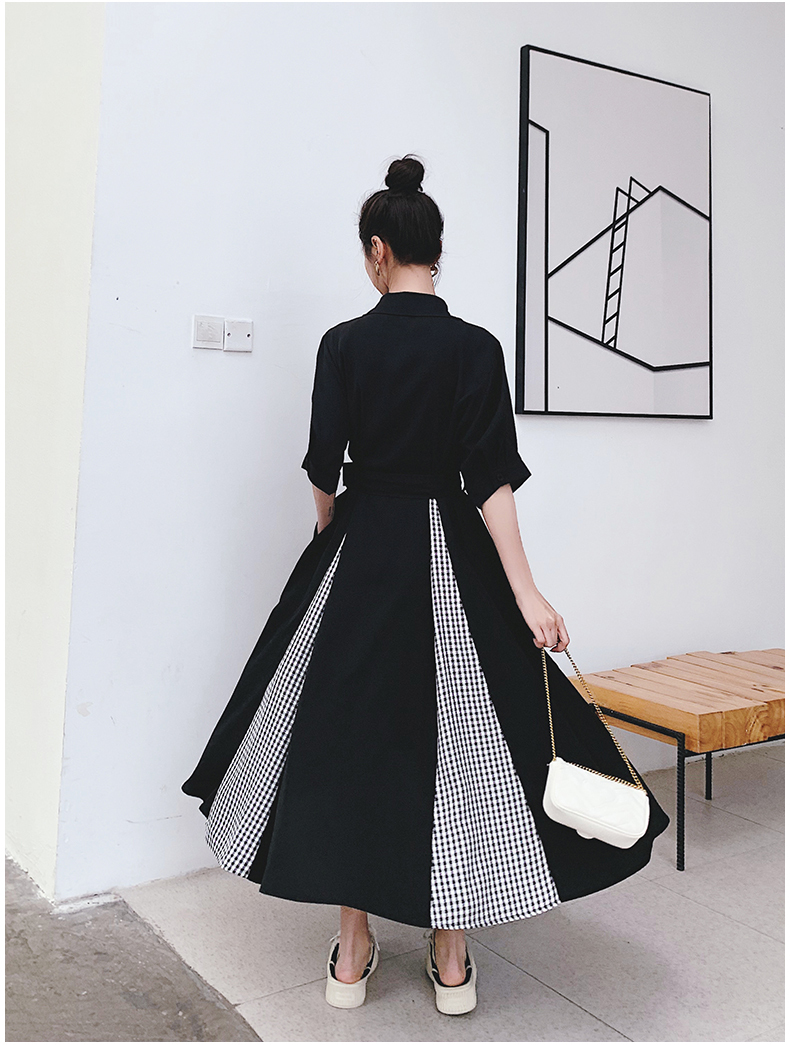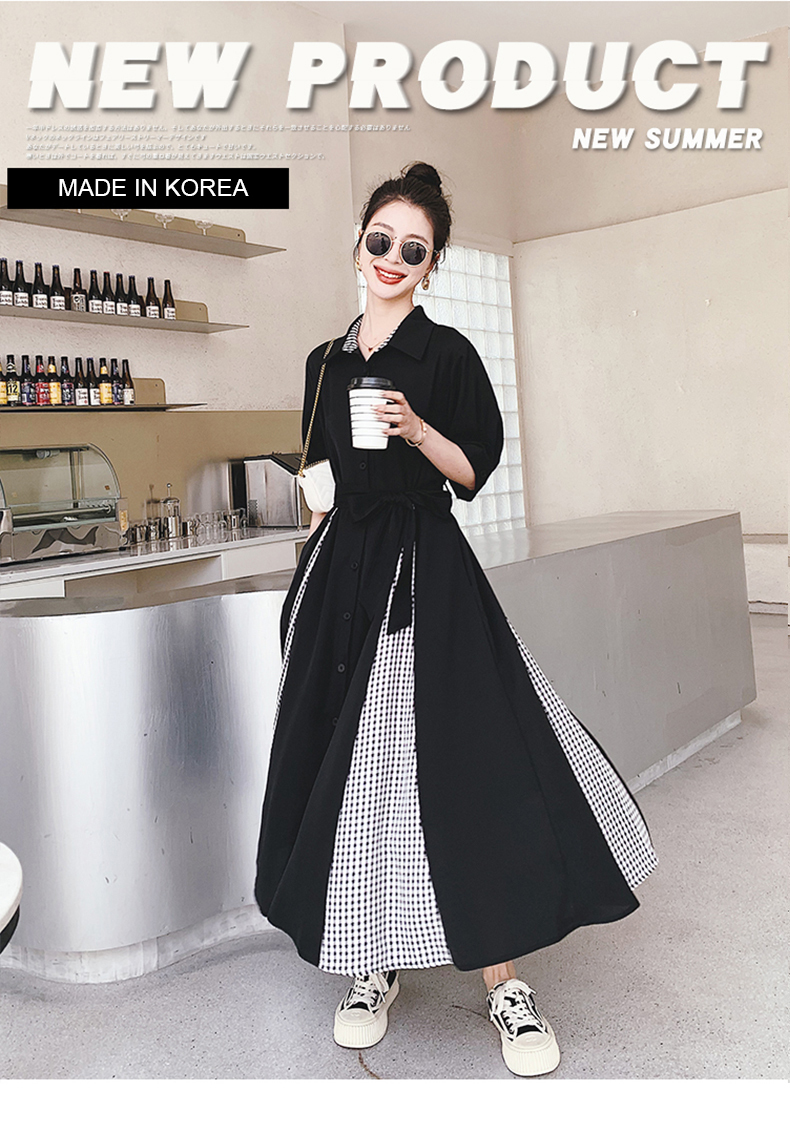 獨家訂製│韓系氣質感撞色拼接繫帶連衣裙(04TA3419)