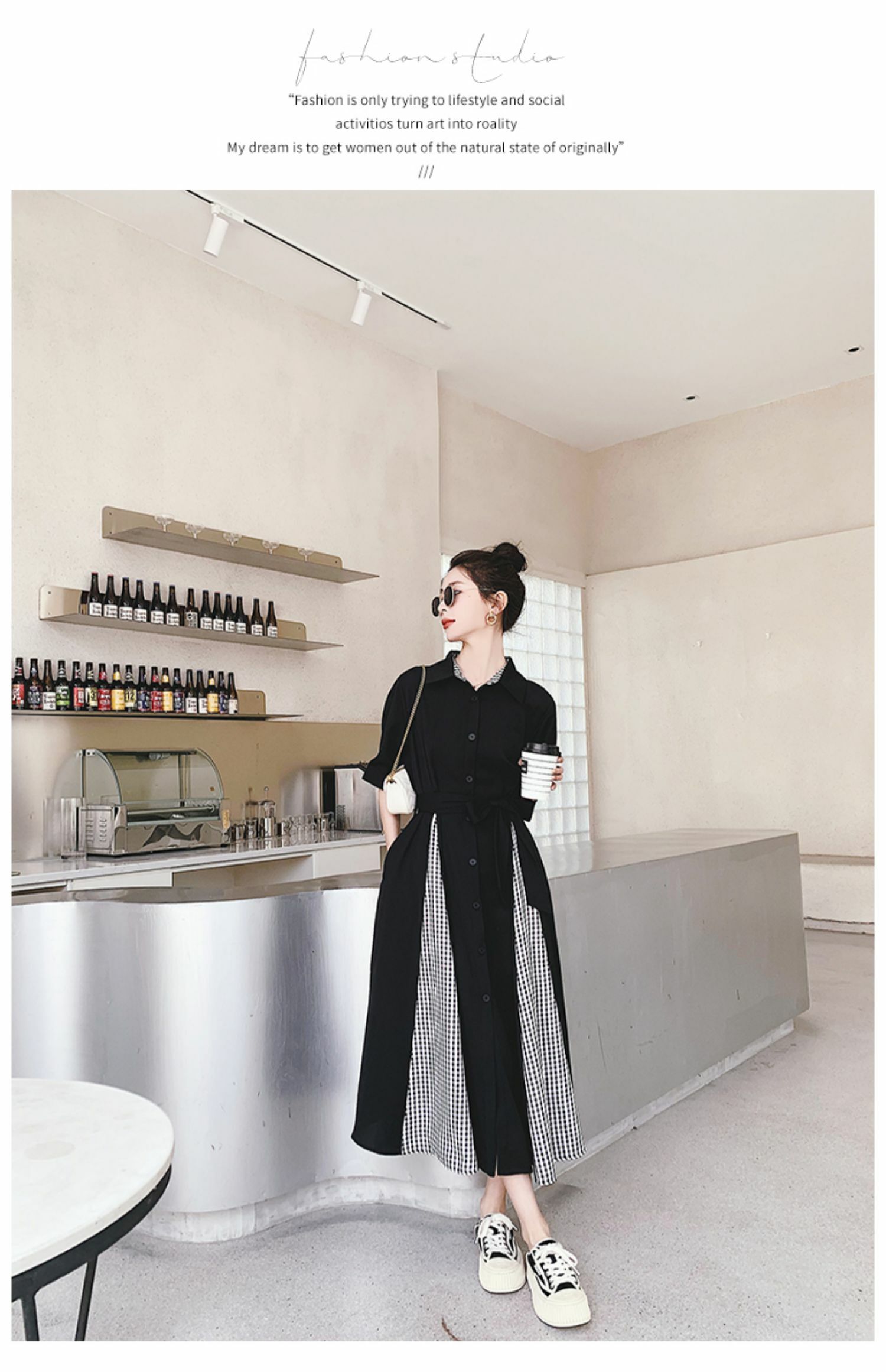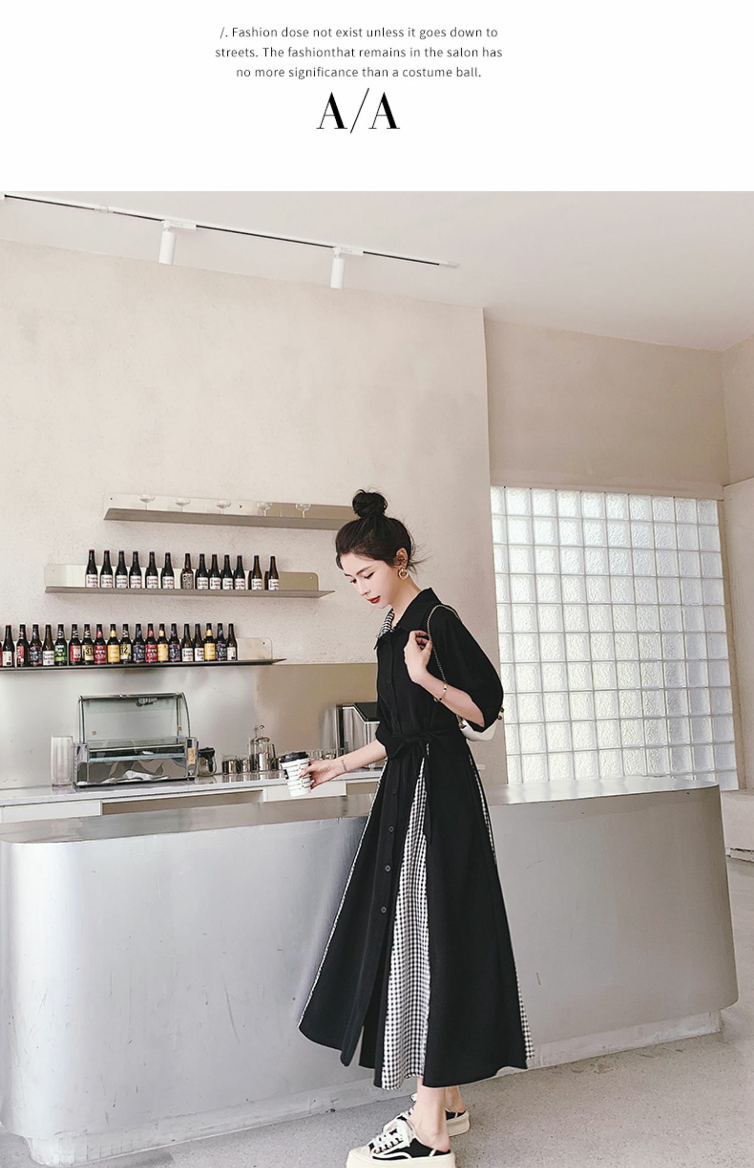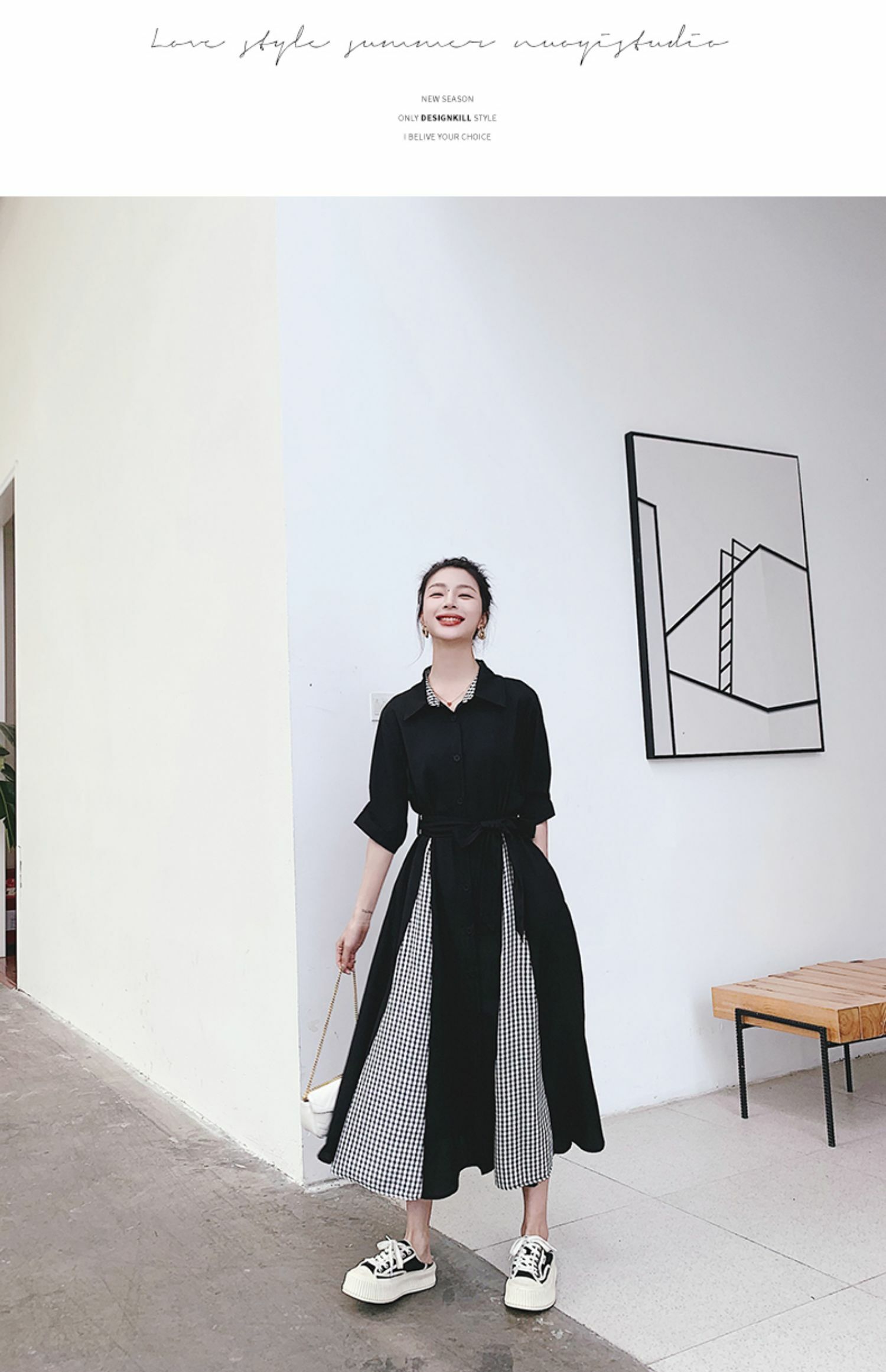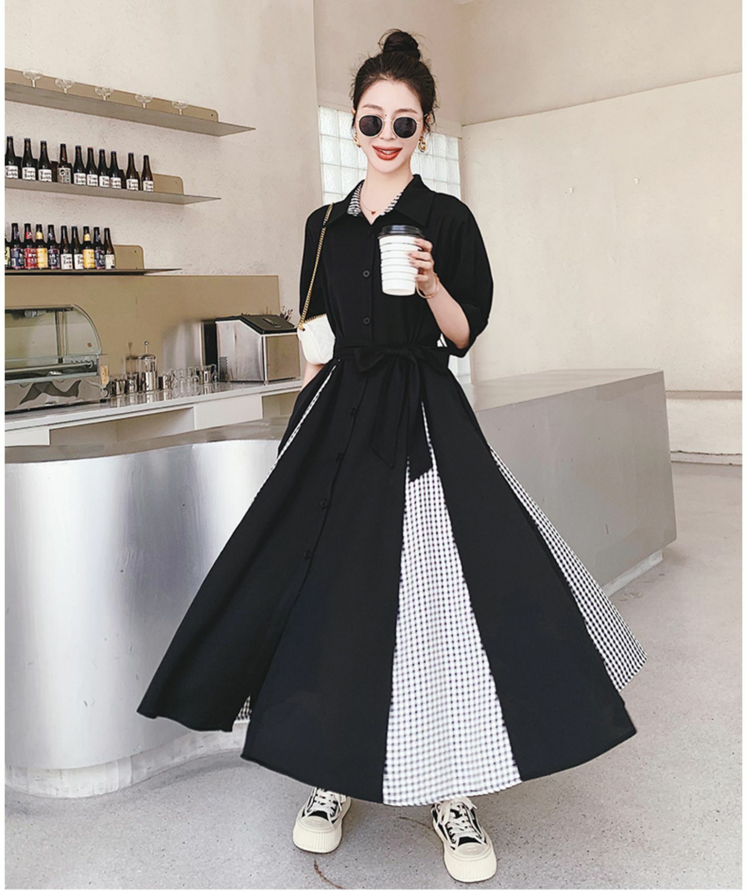 獨家訂製│韓系氣質感撞色拼接繫帶連衣裙(04TA3419)