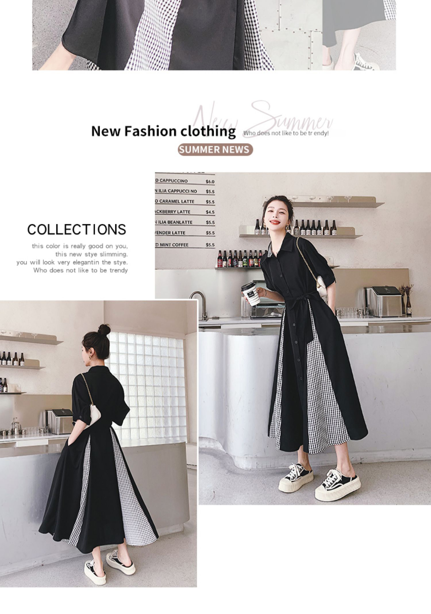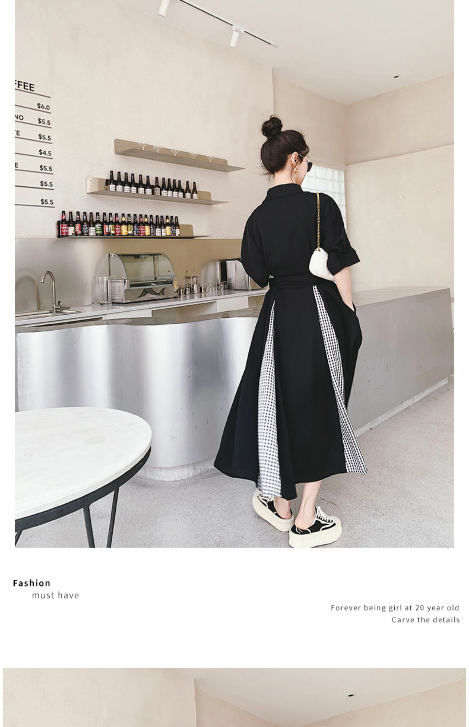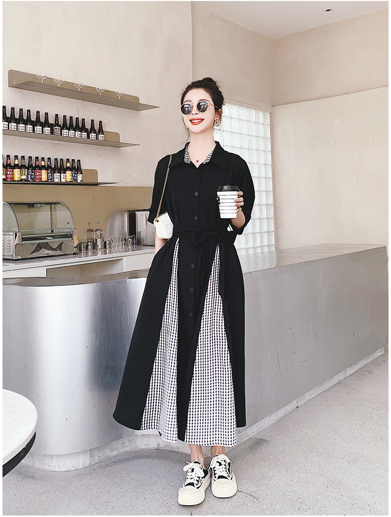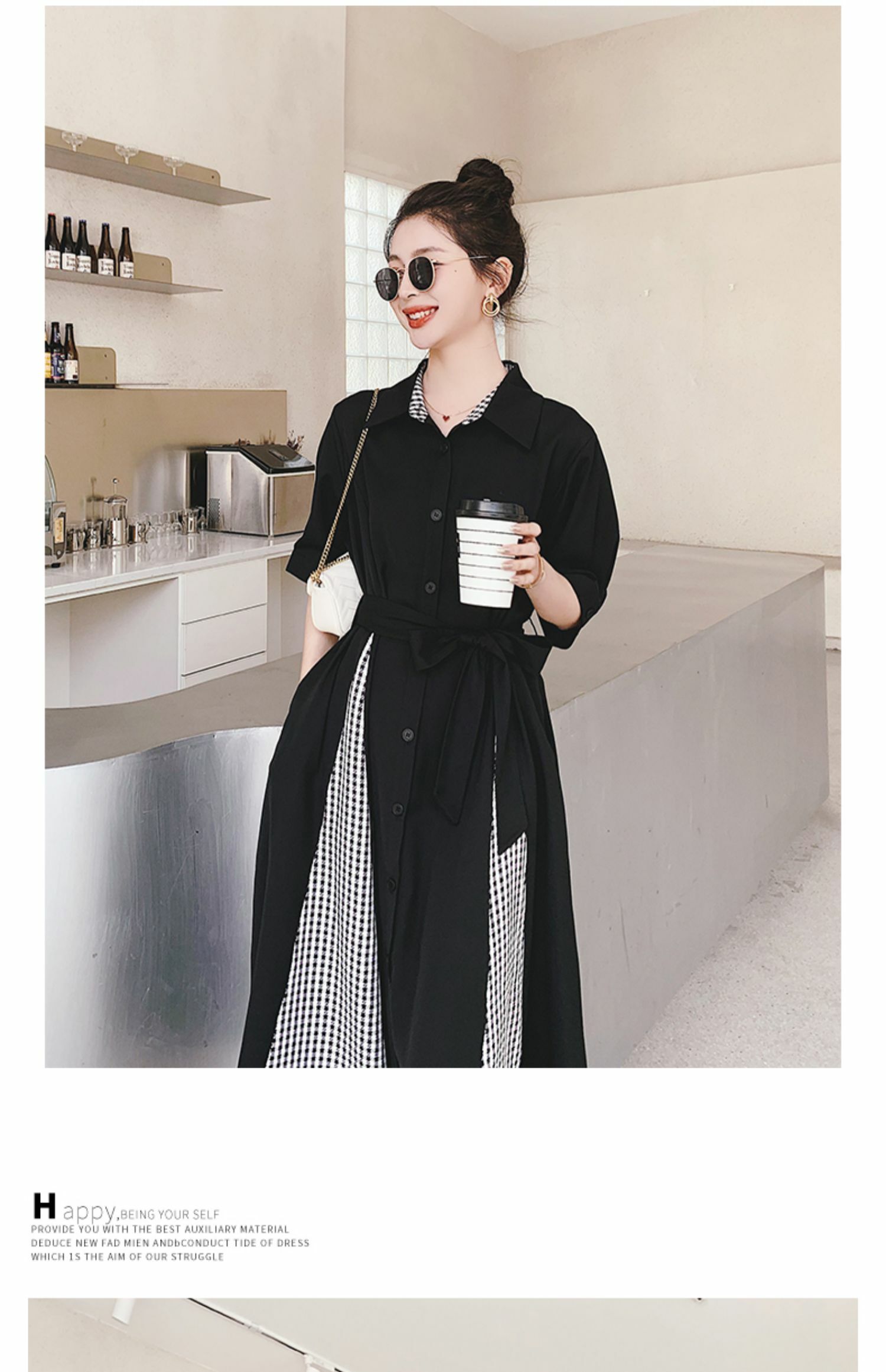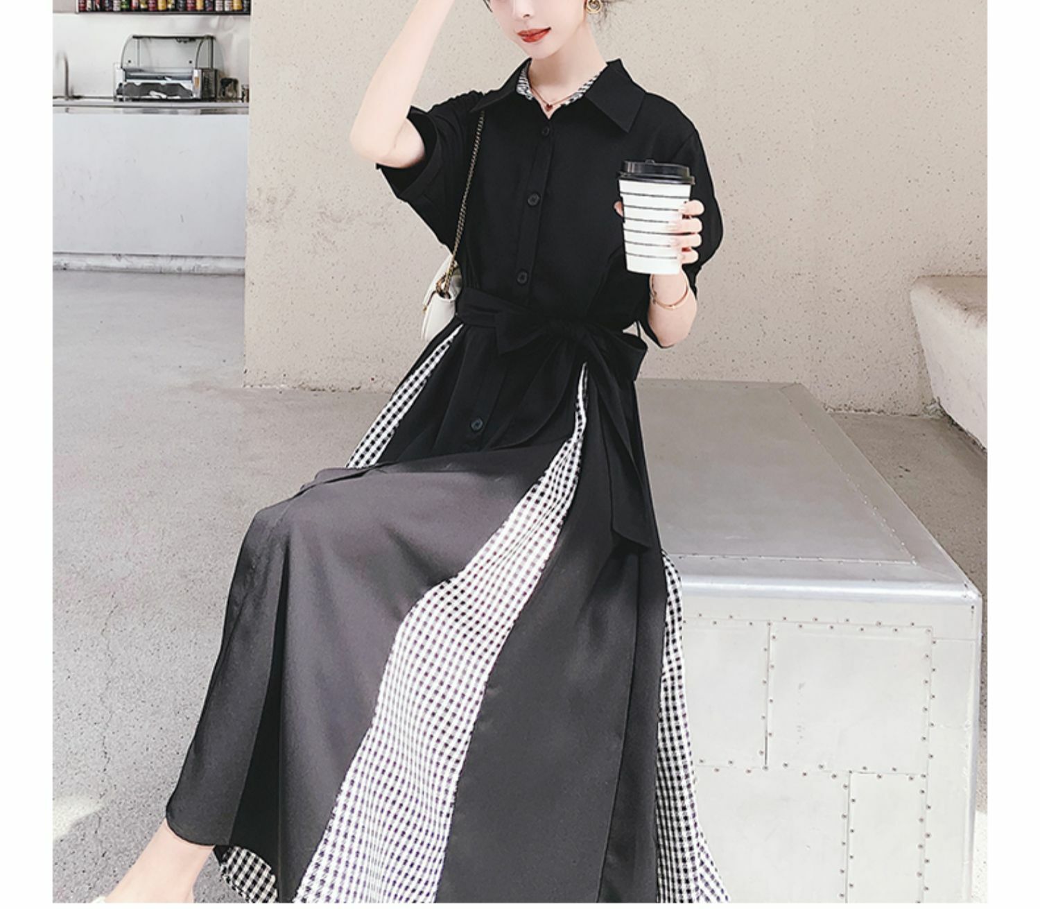 獨家訂製│韓系氣質感撞色拼接繫帶連衣裙(04TA3419)
