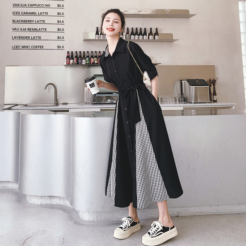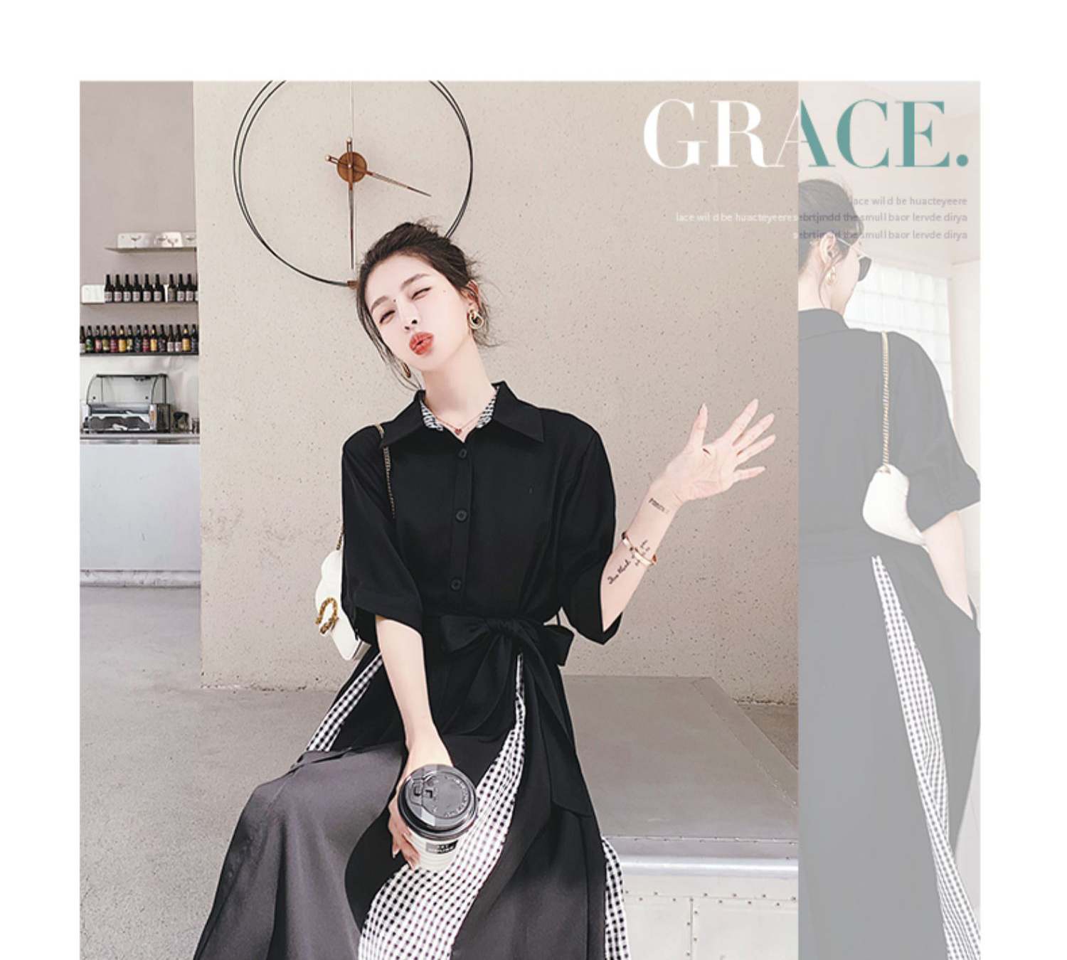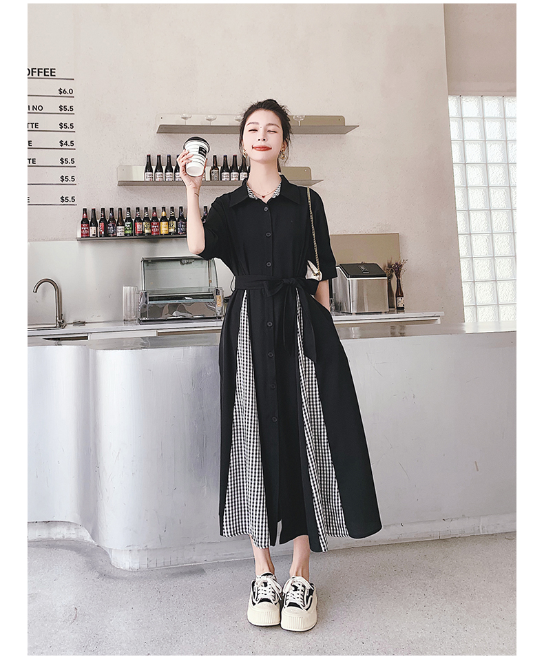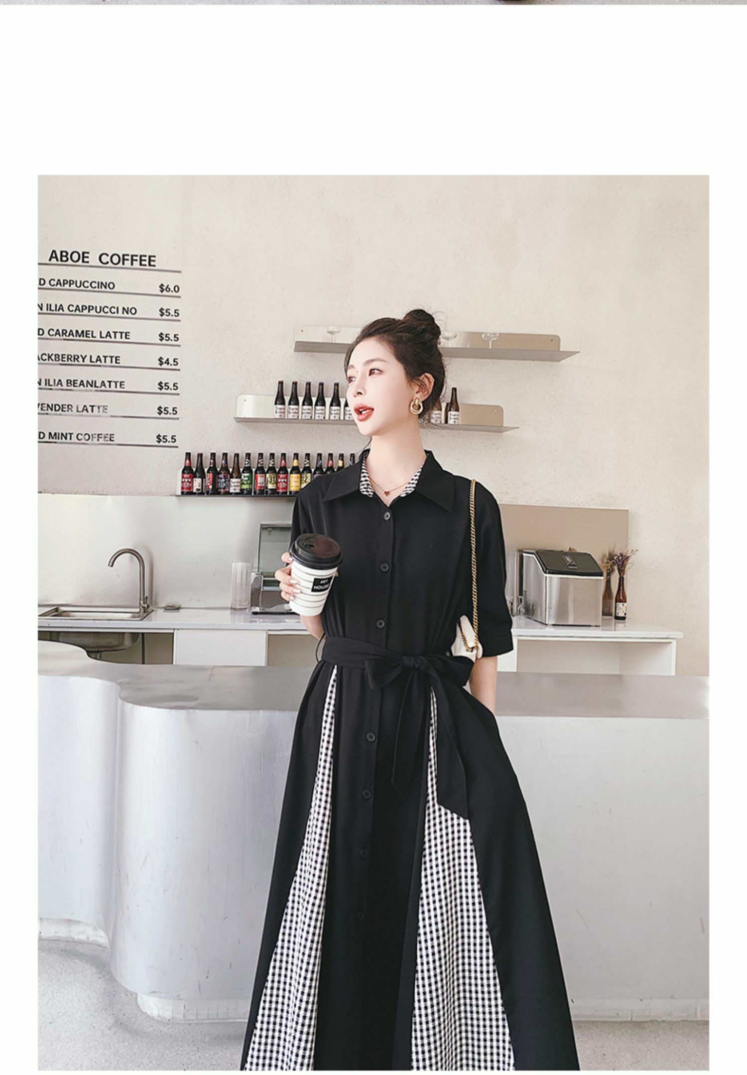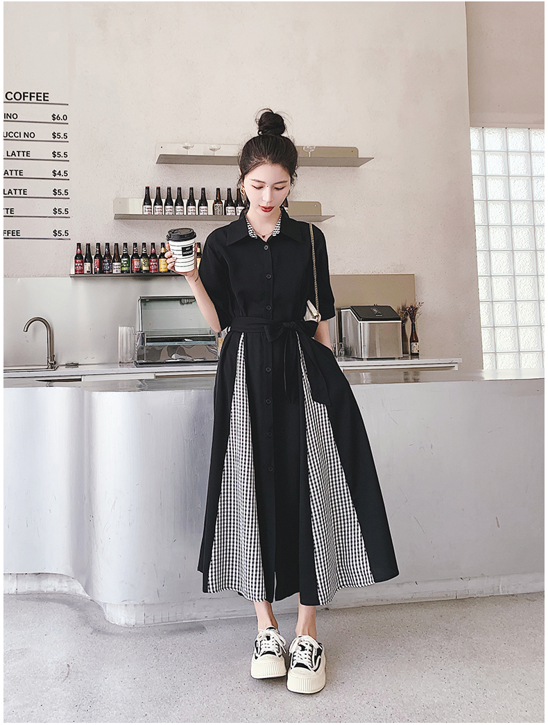 獨家訂製│韓系氣質感撞色拼接繫帶連衣裙(04TA3419)
