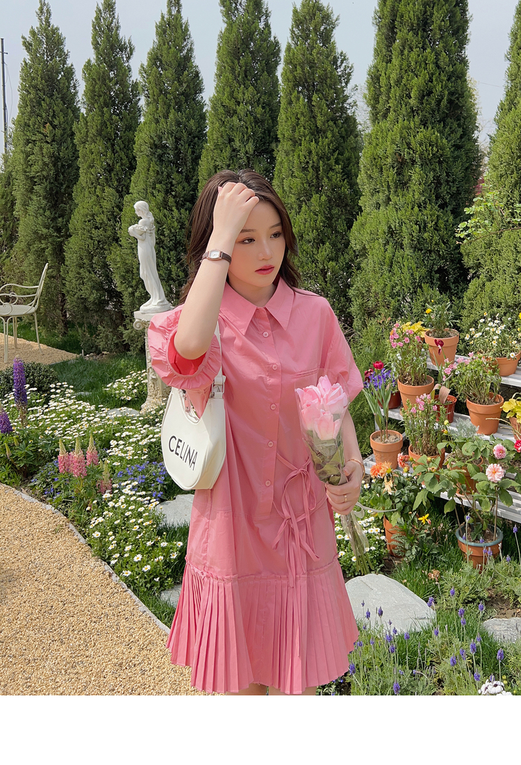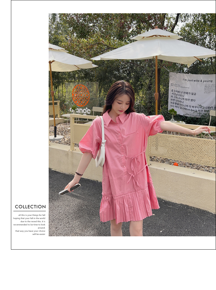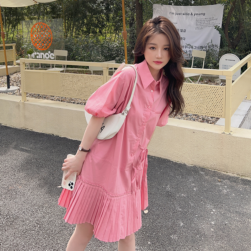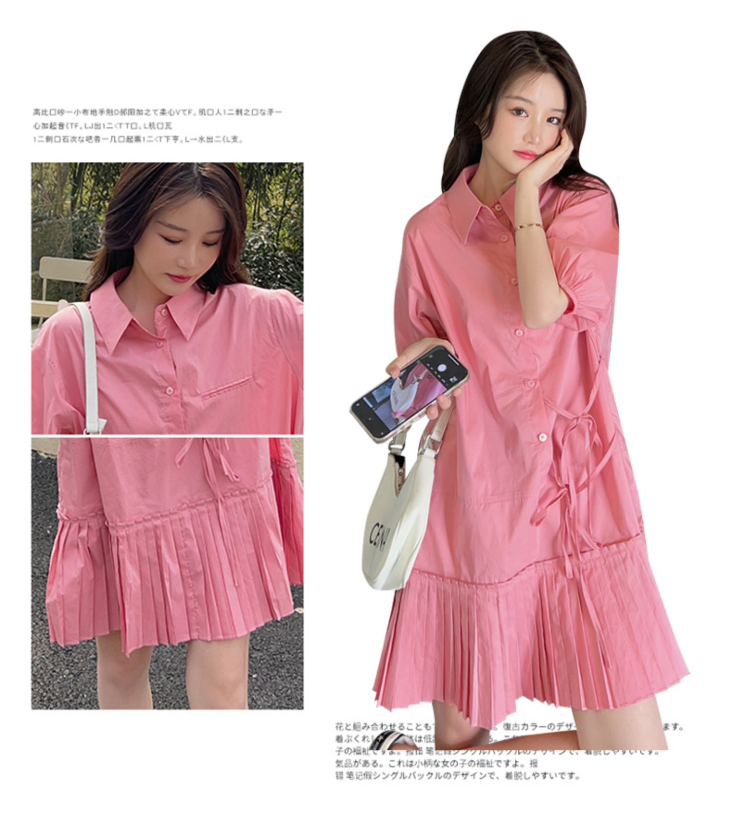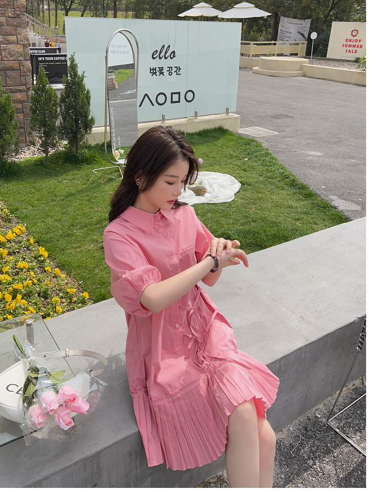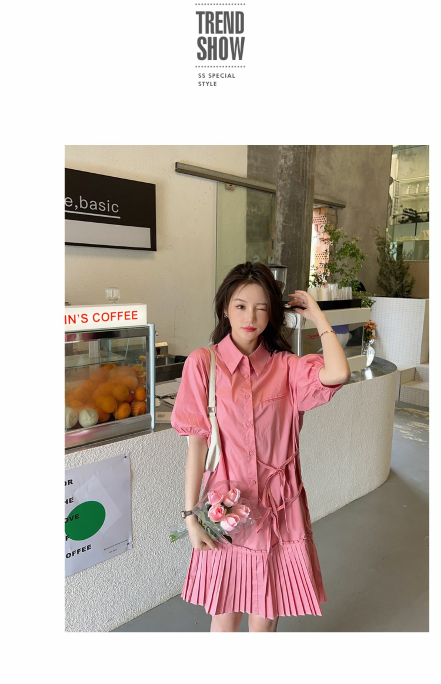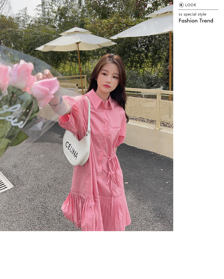 獨家訂製│韓系甜酷風綁帶百褶魚尾連衣裙(04TA3425)
