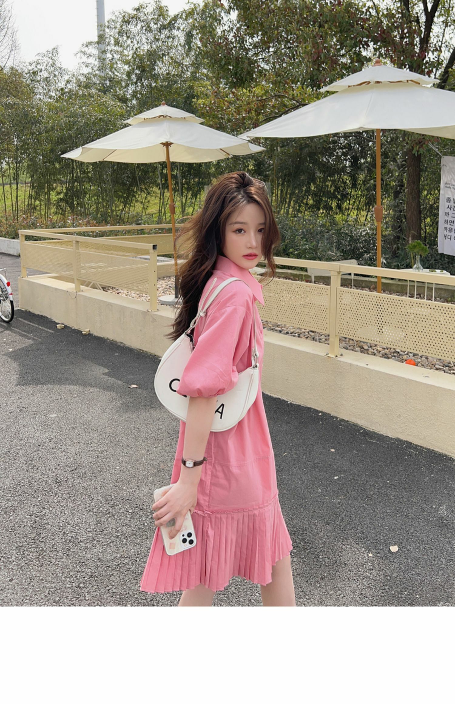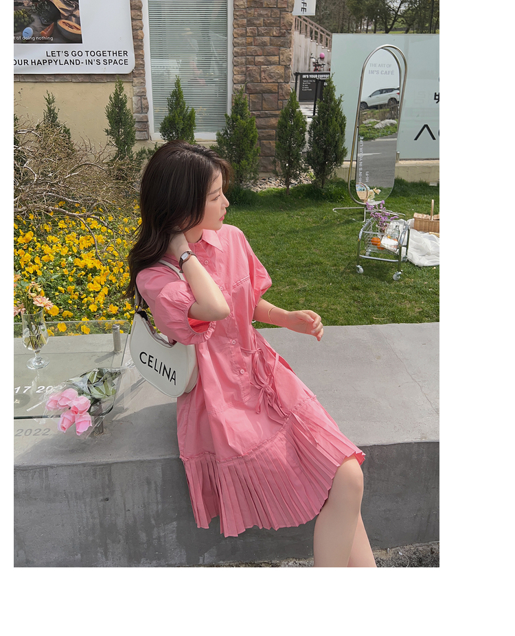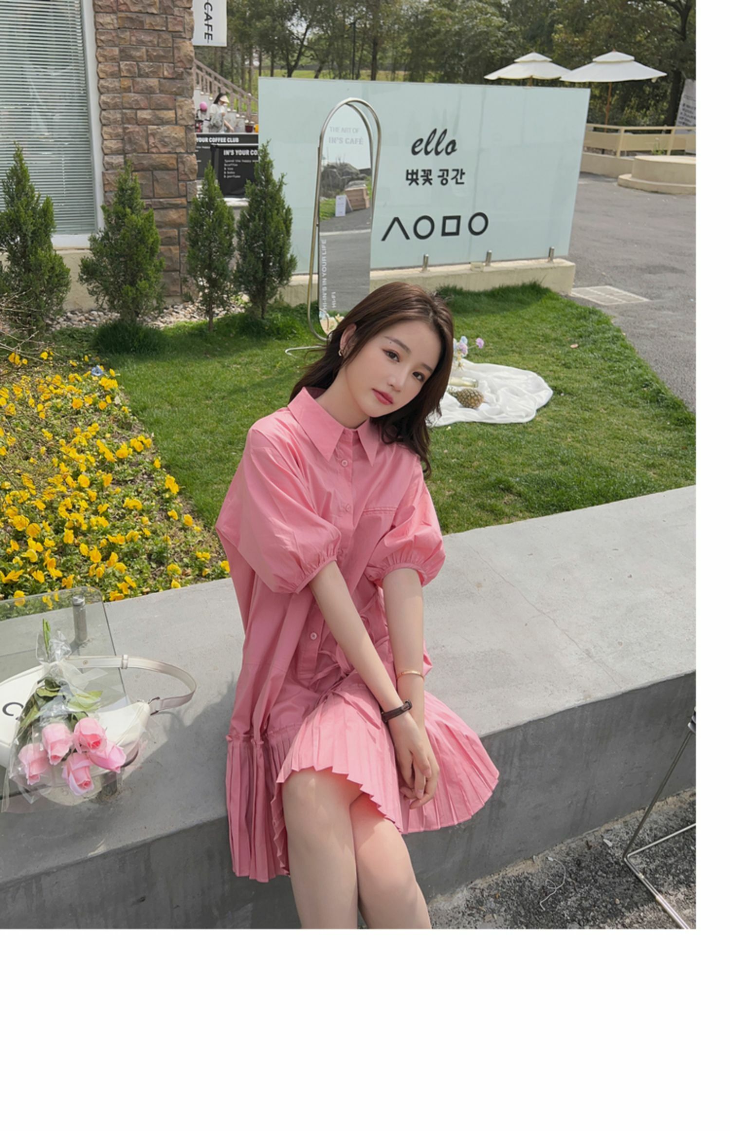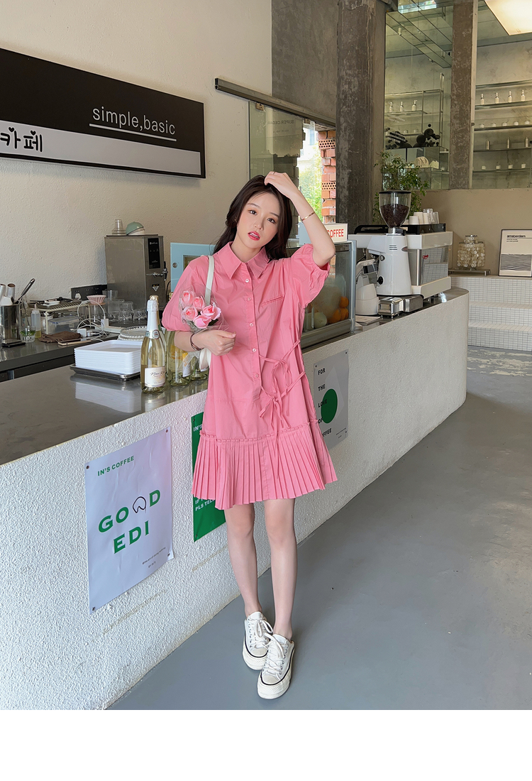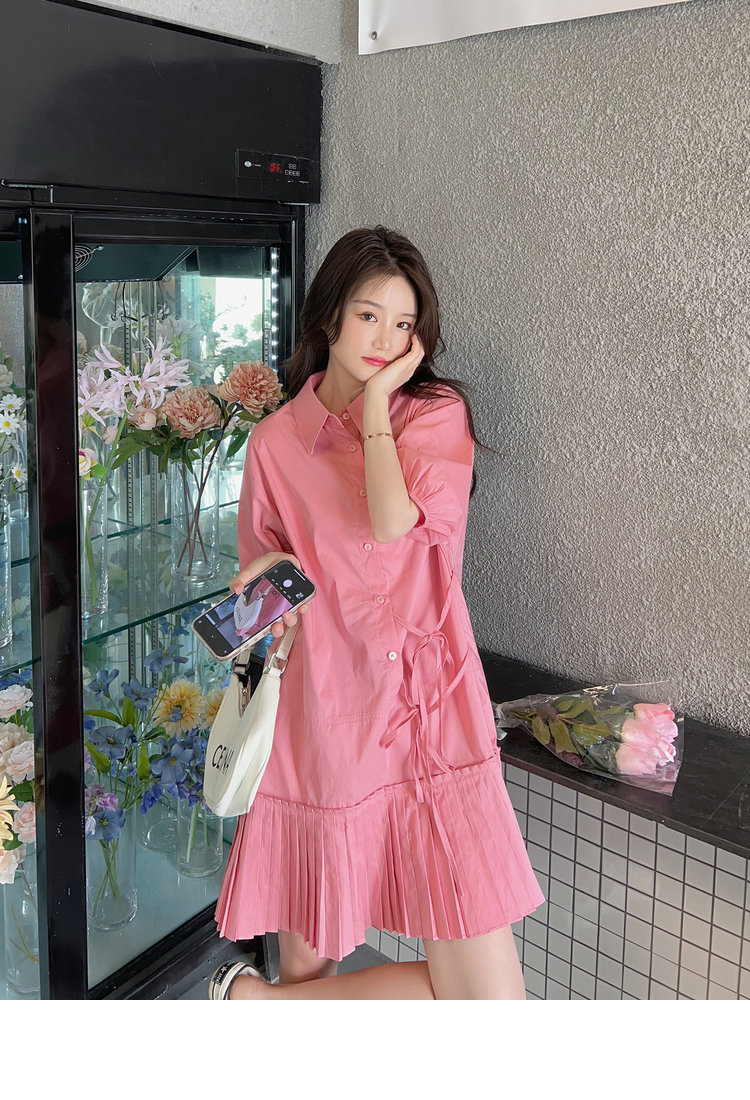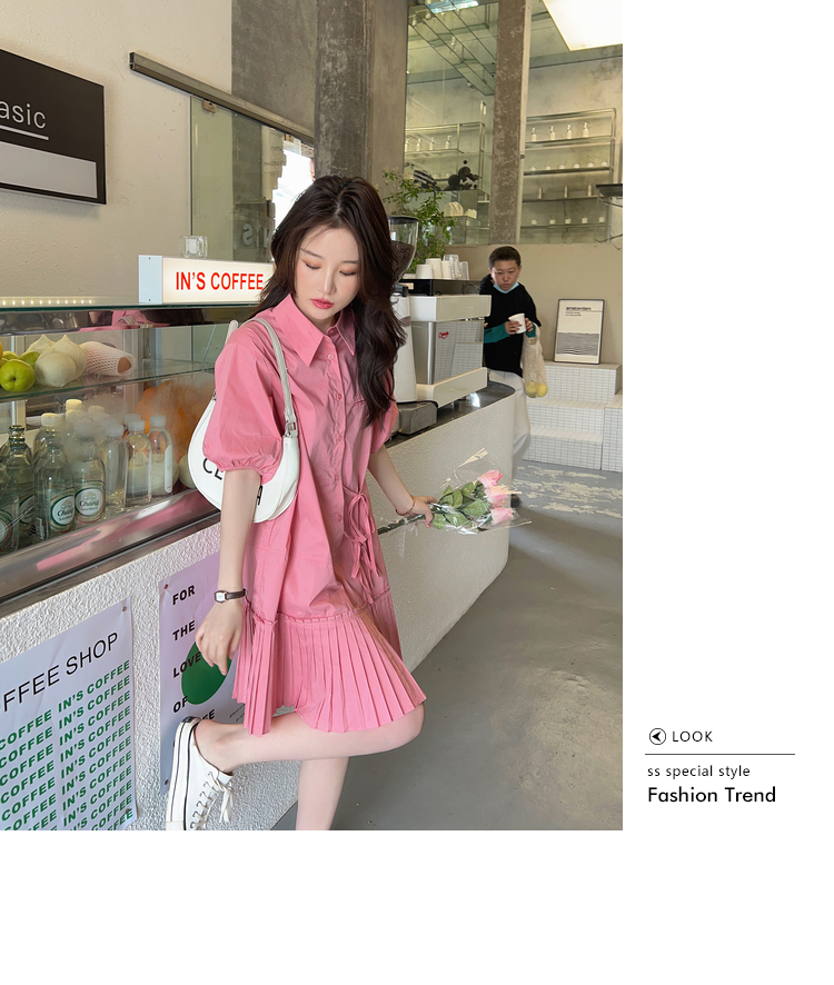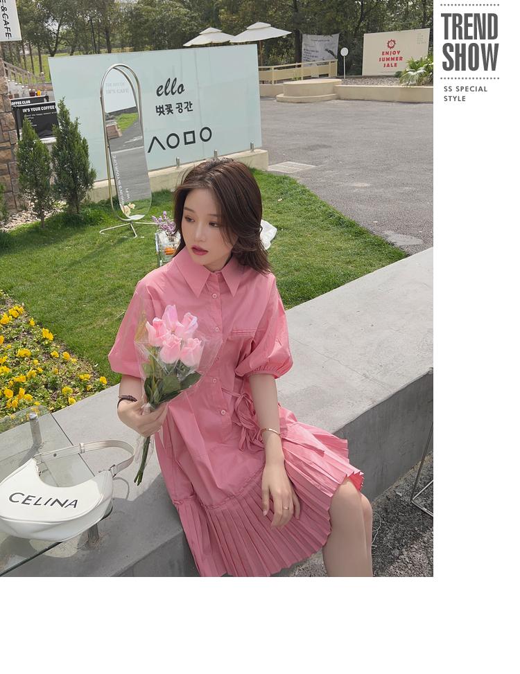 獨家訂製│韓系甜酷風綁帶百褶魚尾連衣裙(04TA3425)