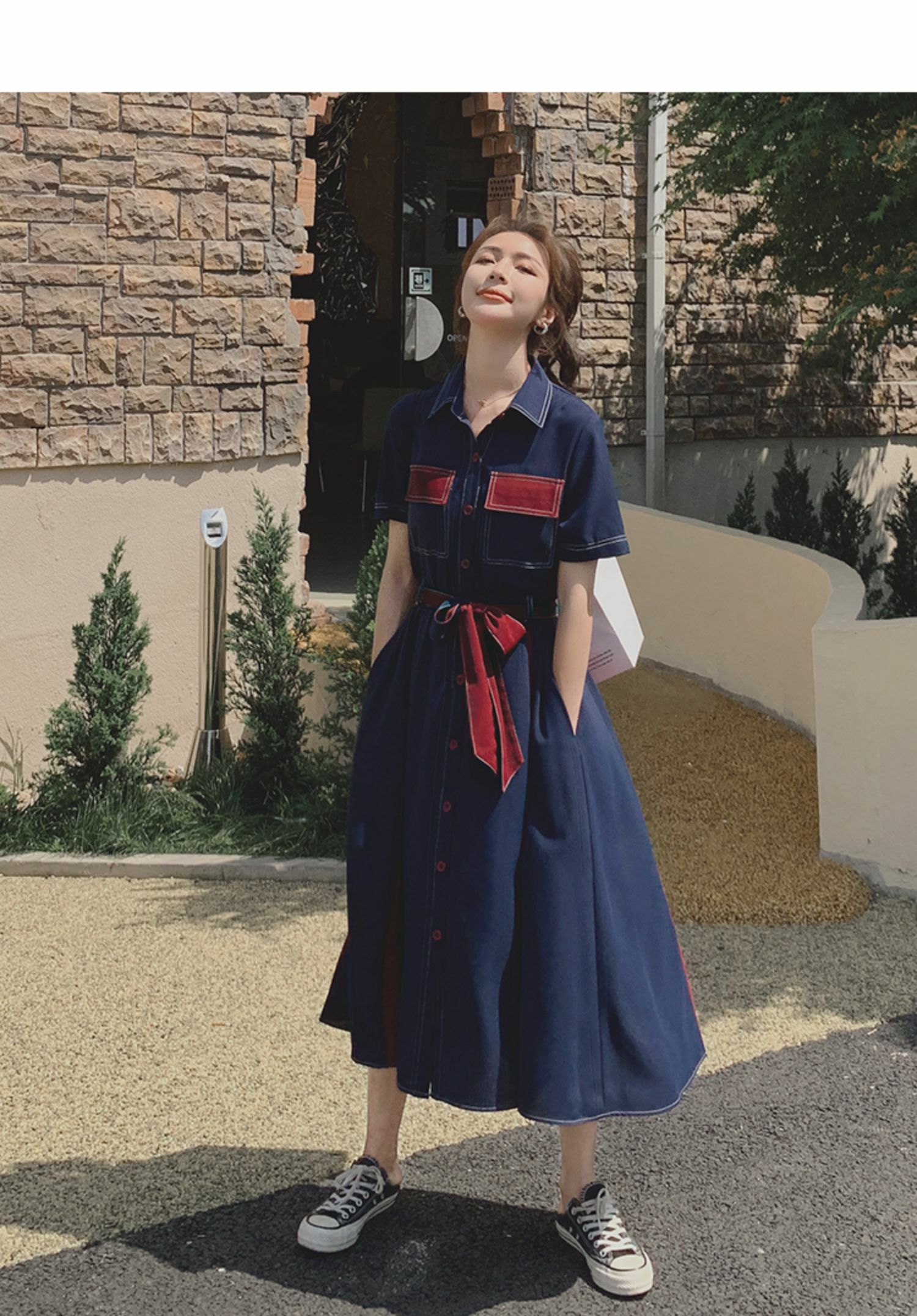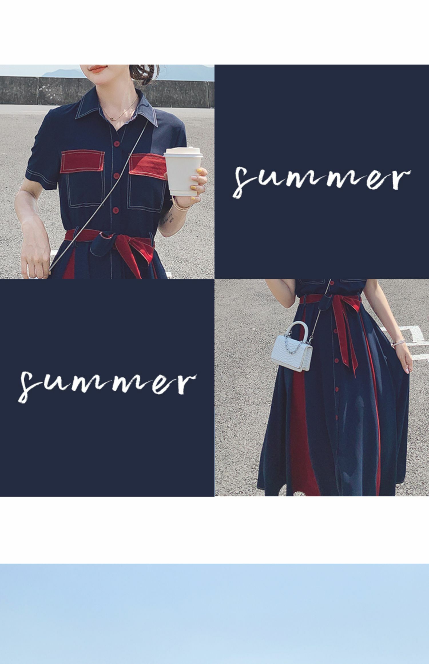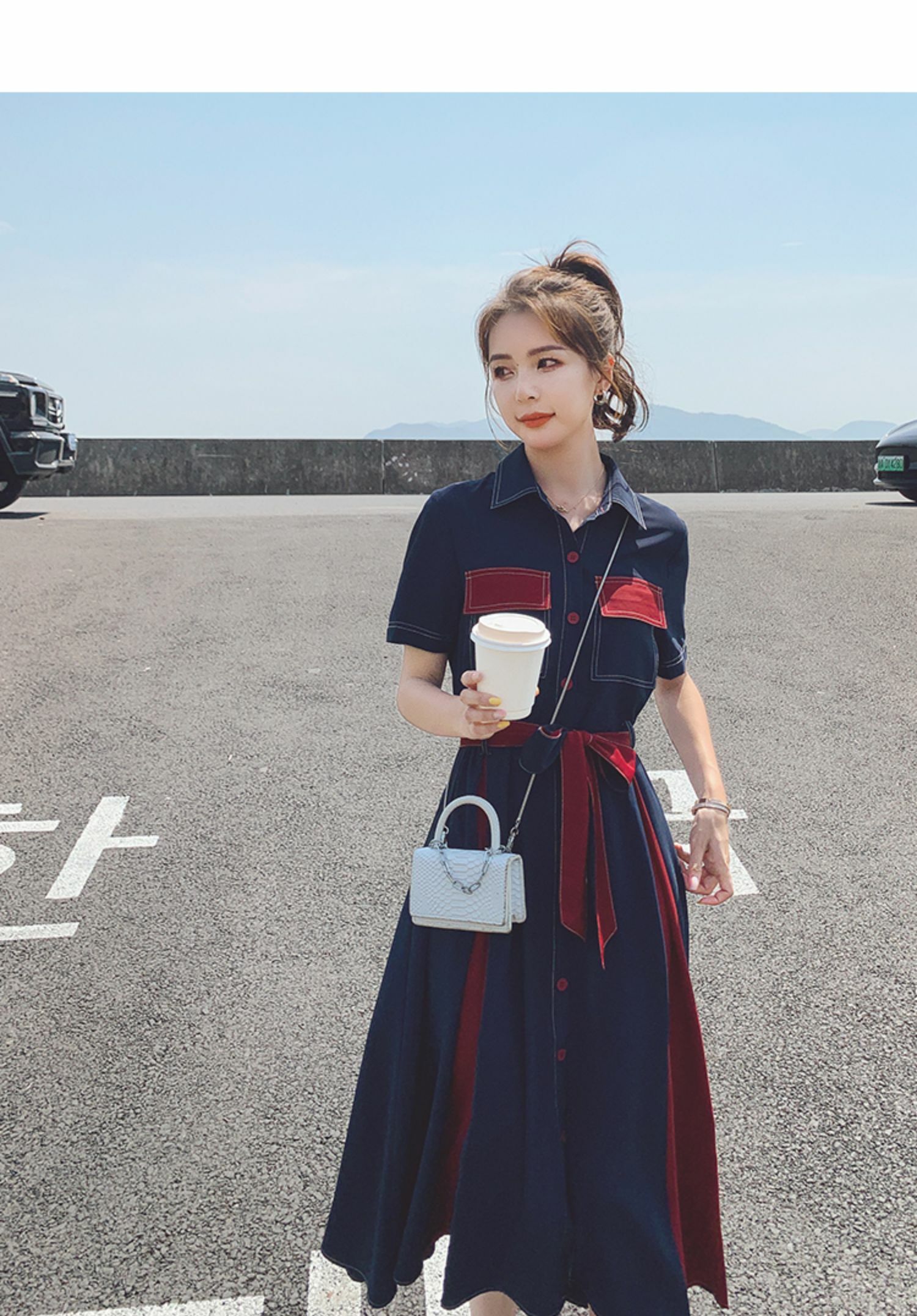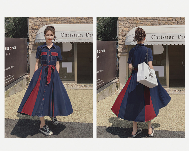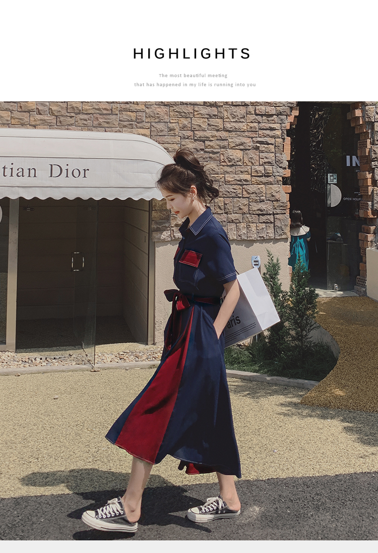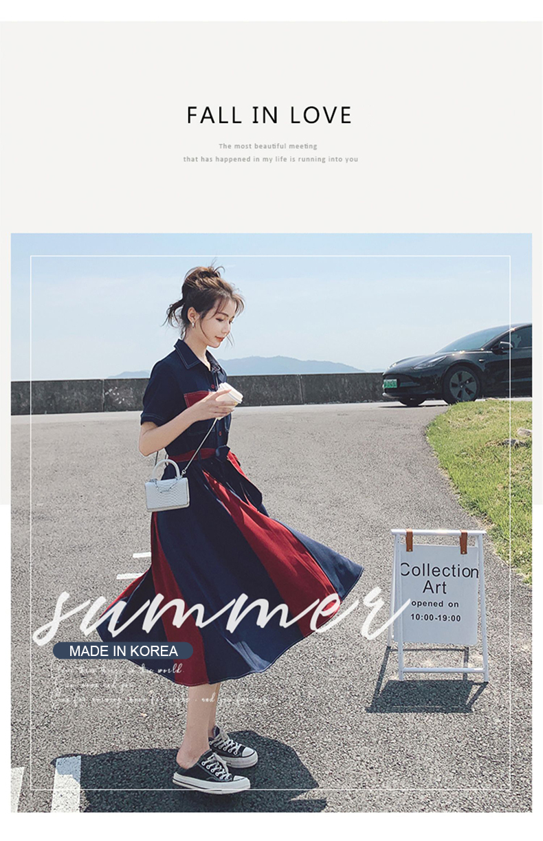 獨家訂製│韓系氣質感撞色繫帶連衣裙(04TA3429)