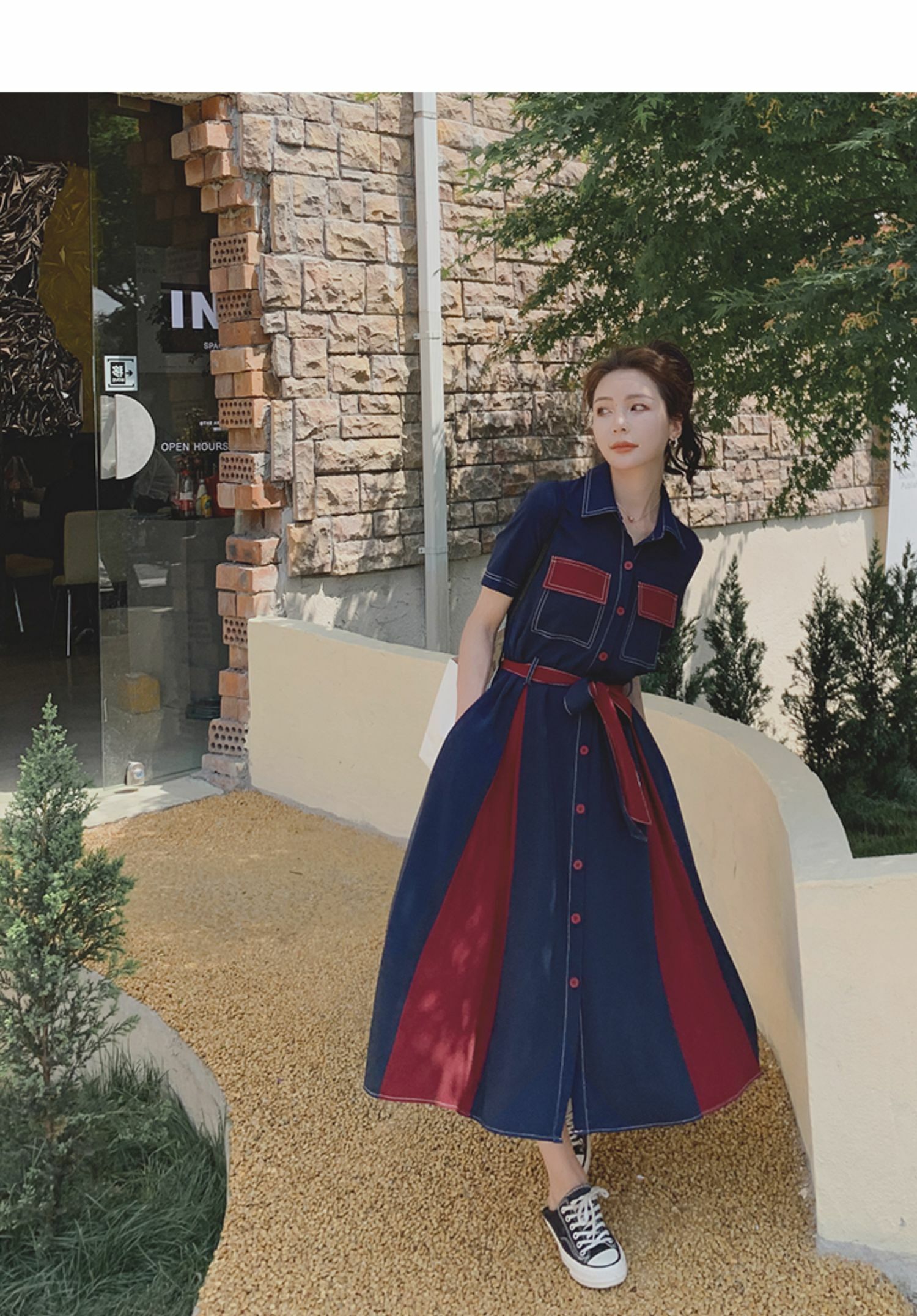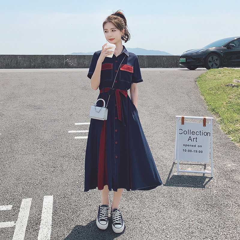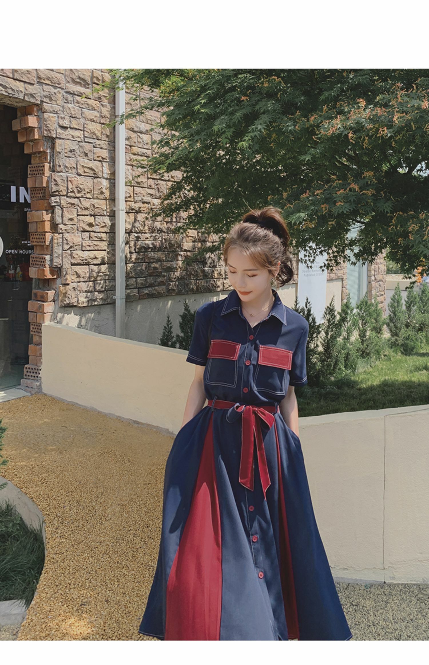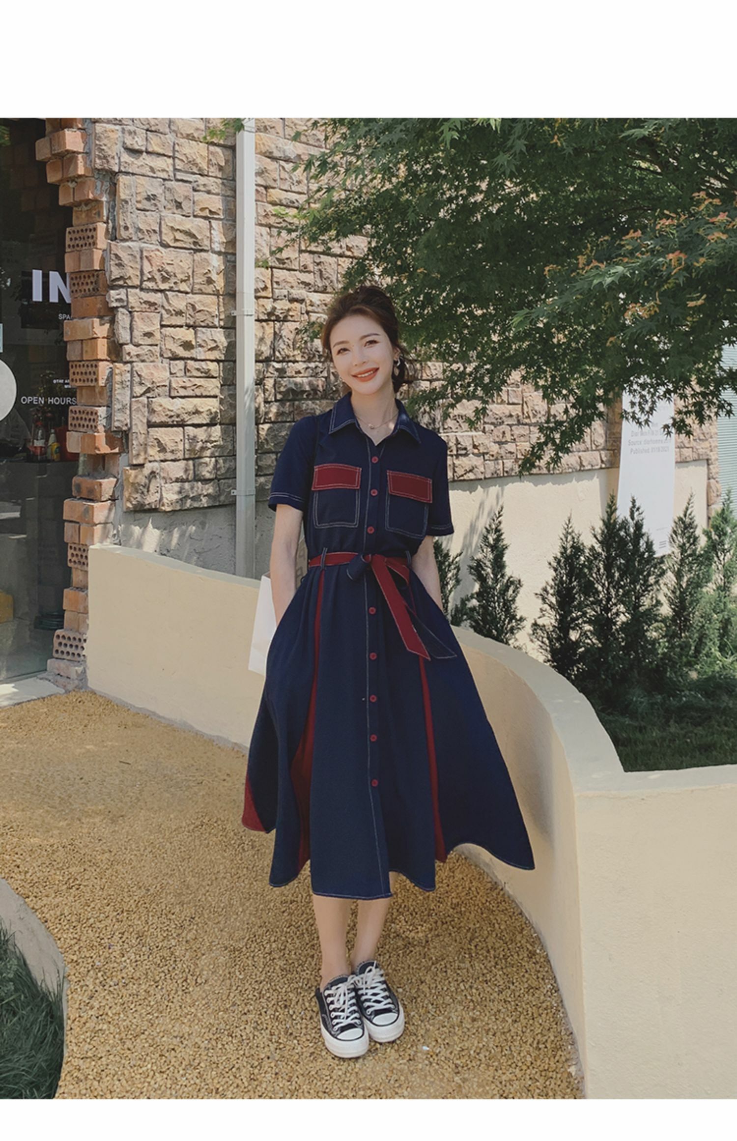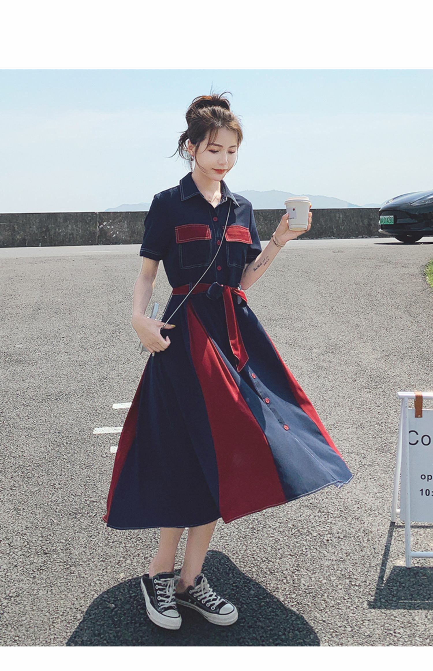 獨家訂製│韓系氣質感撞色繫帶連衣裙(04TA3429)