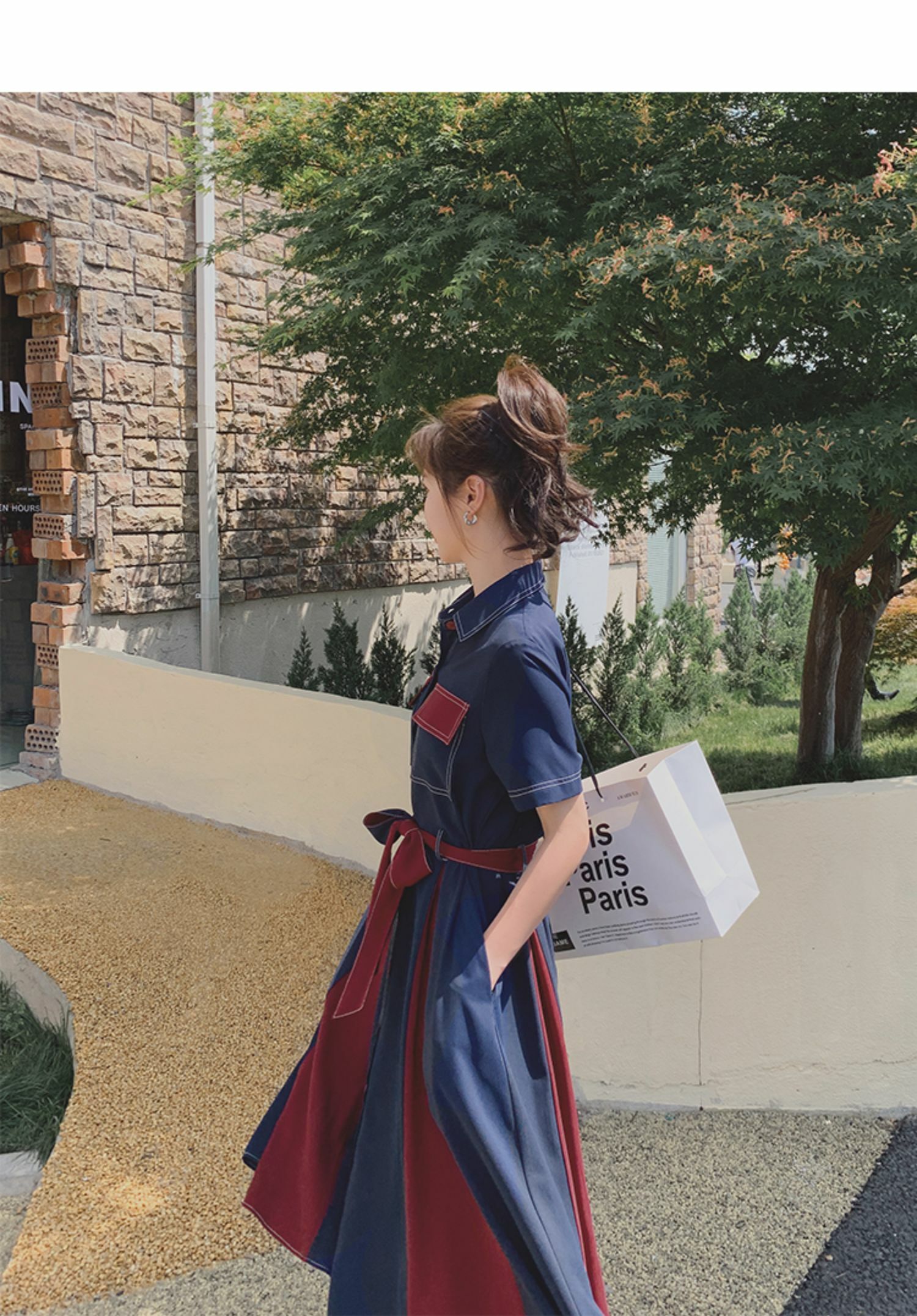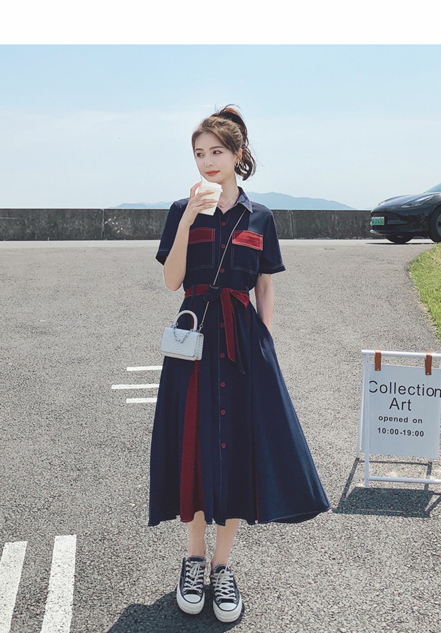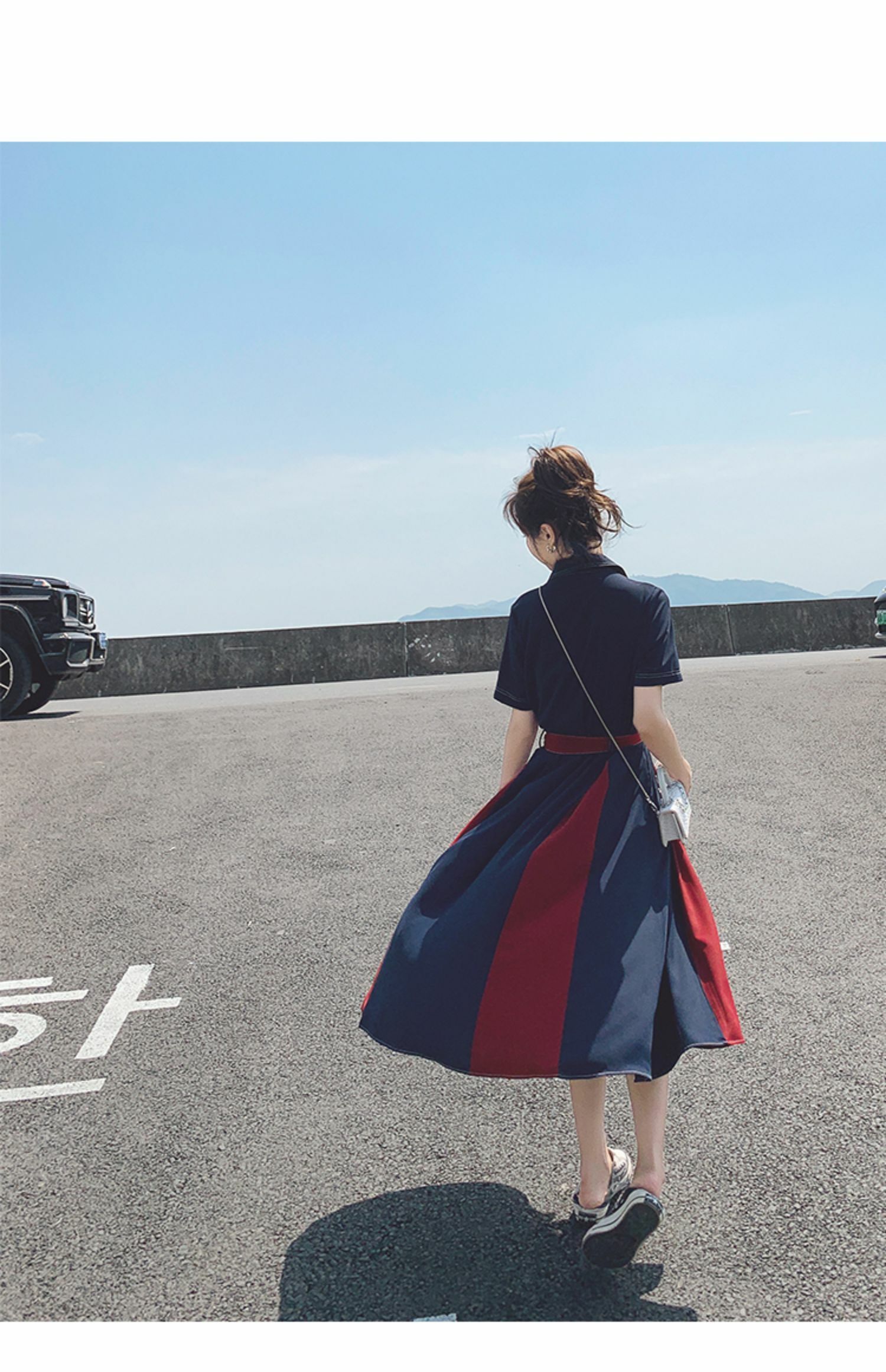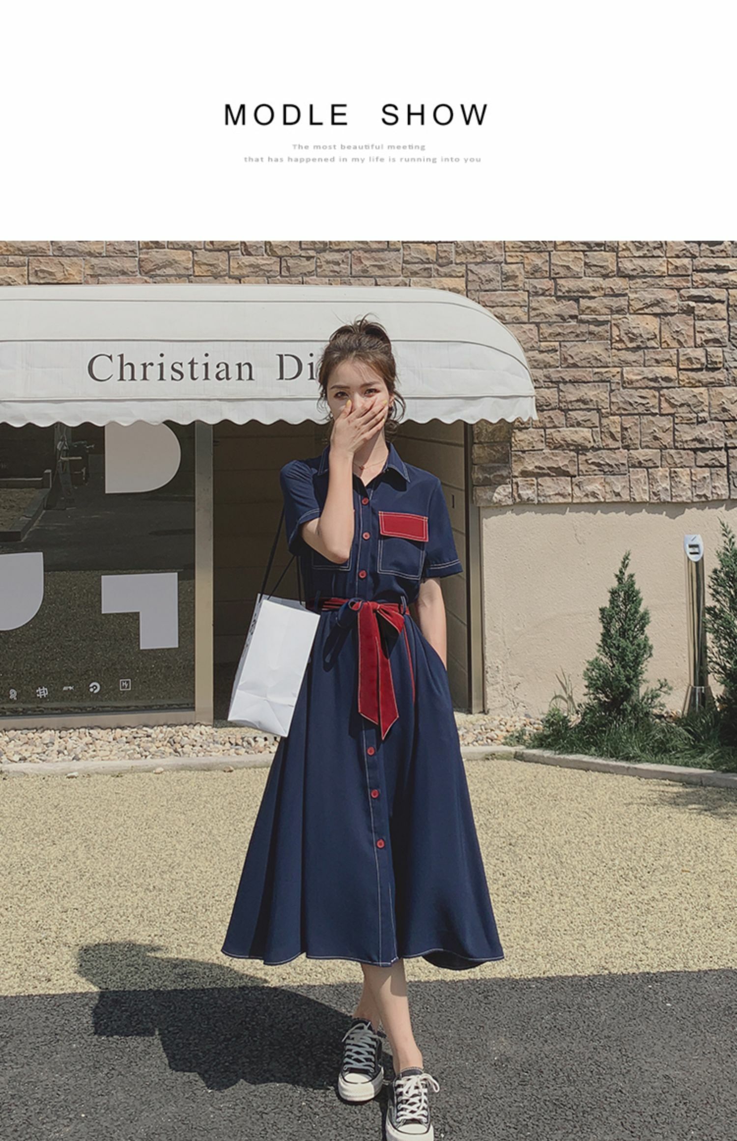 獨家訂製│韓系氣質感撞色繫帶連衣裙(04TA3429)