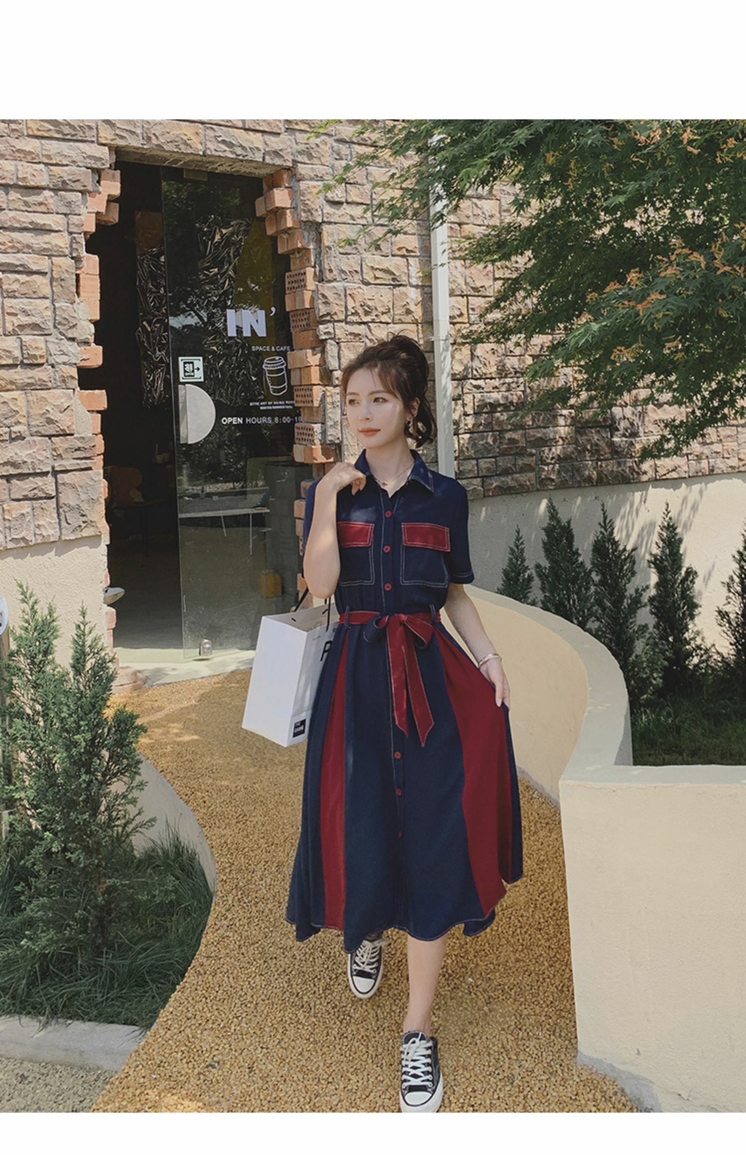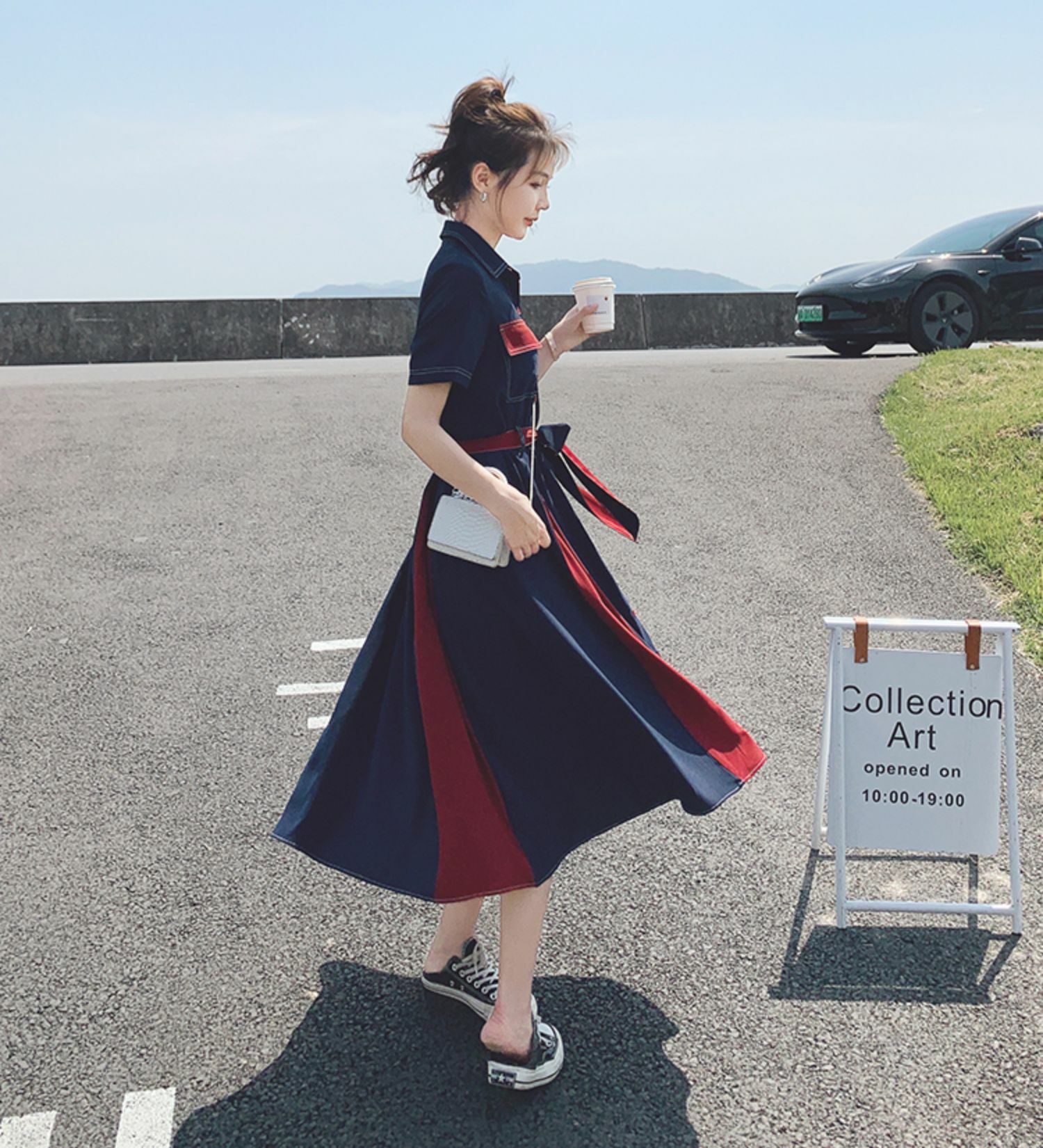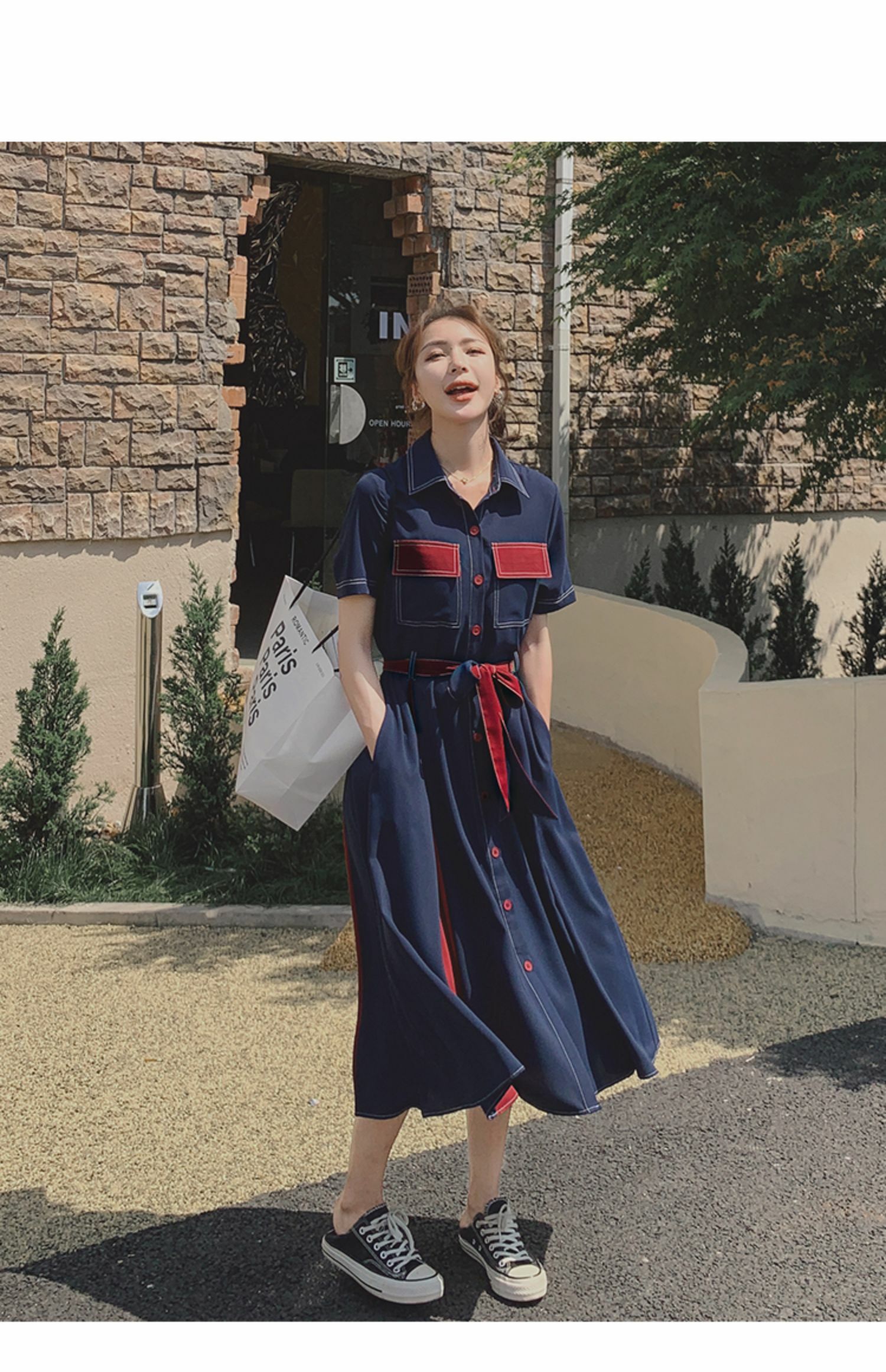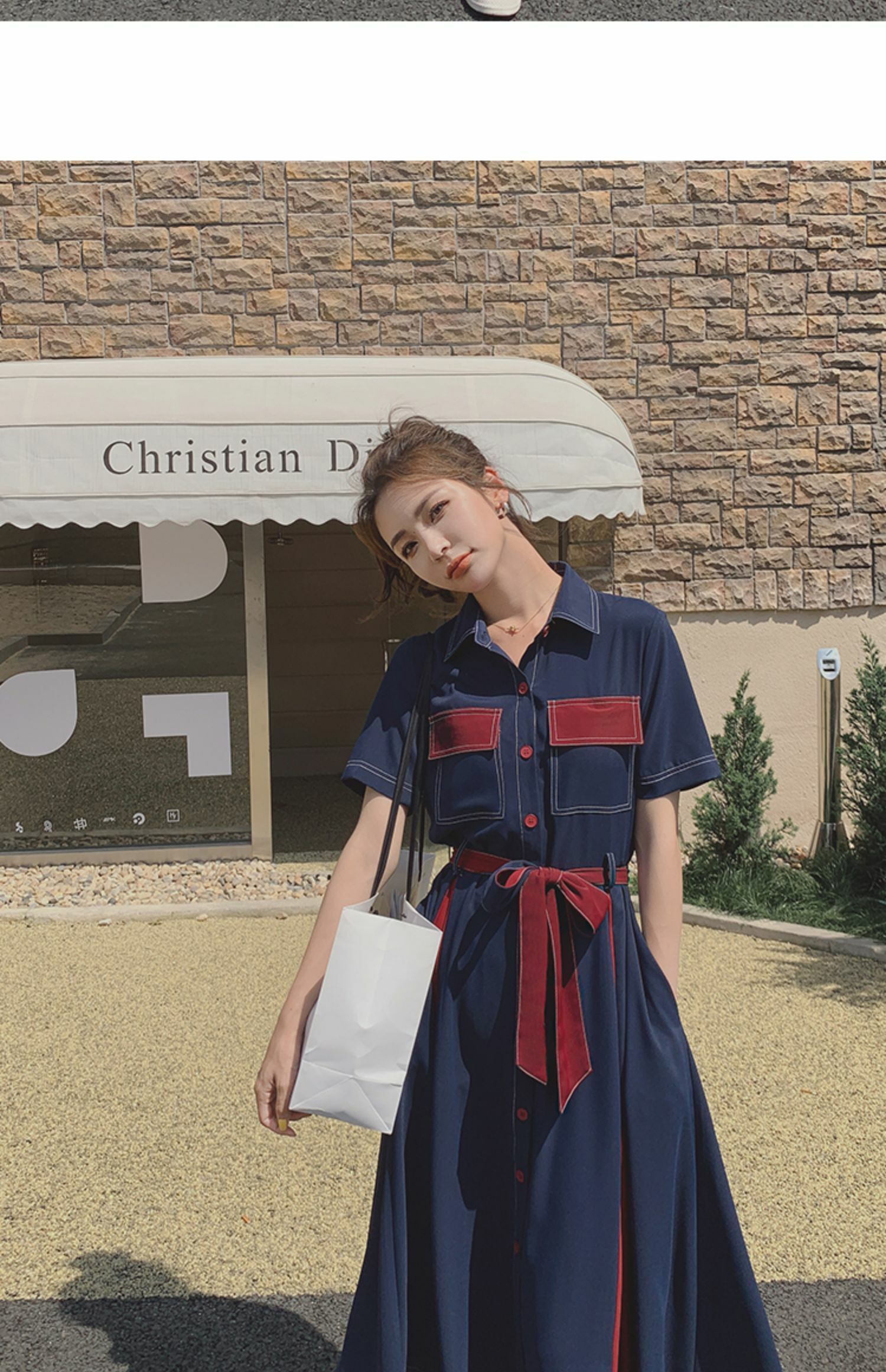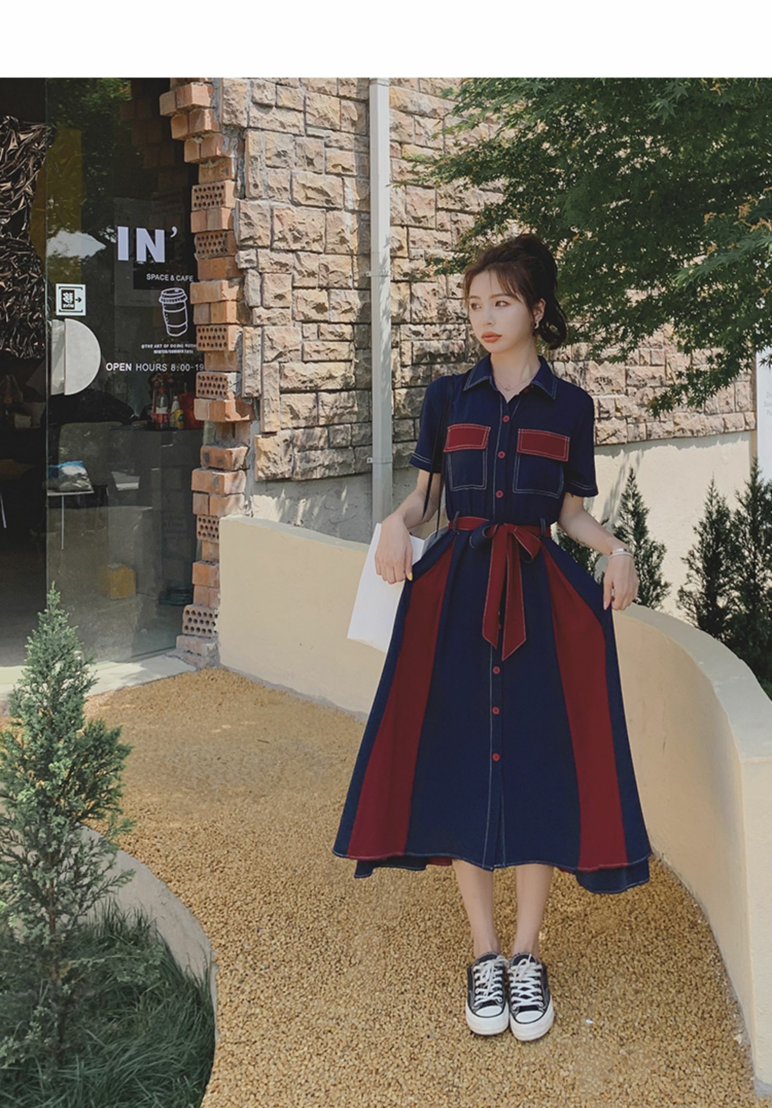 獨家訂製│韓系氣質感撞色繫帶連衣裙(04TA3429)