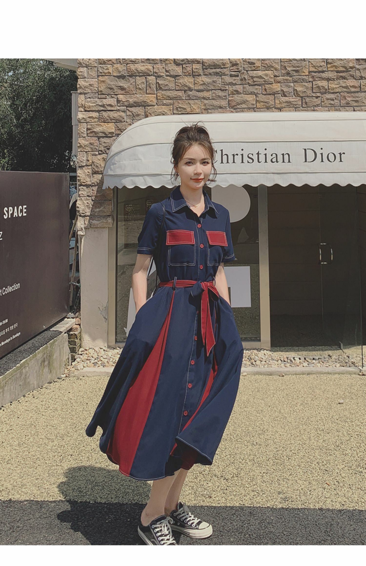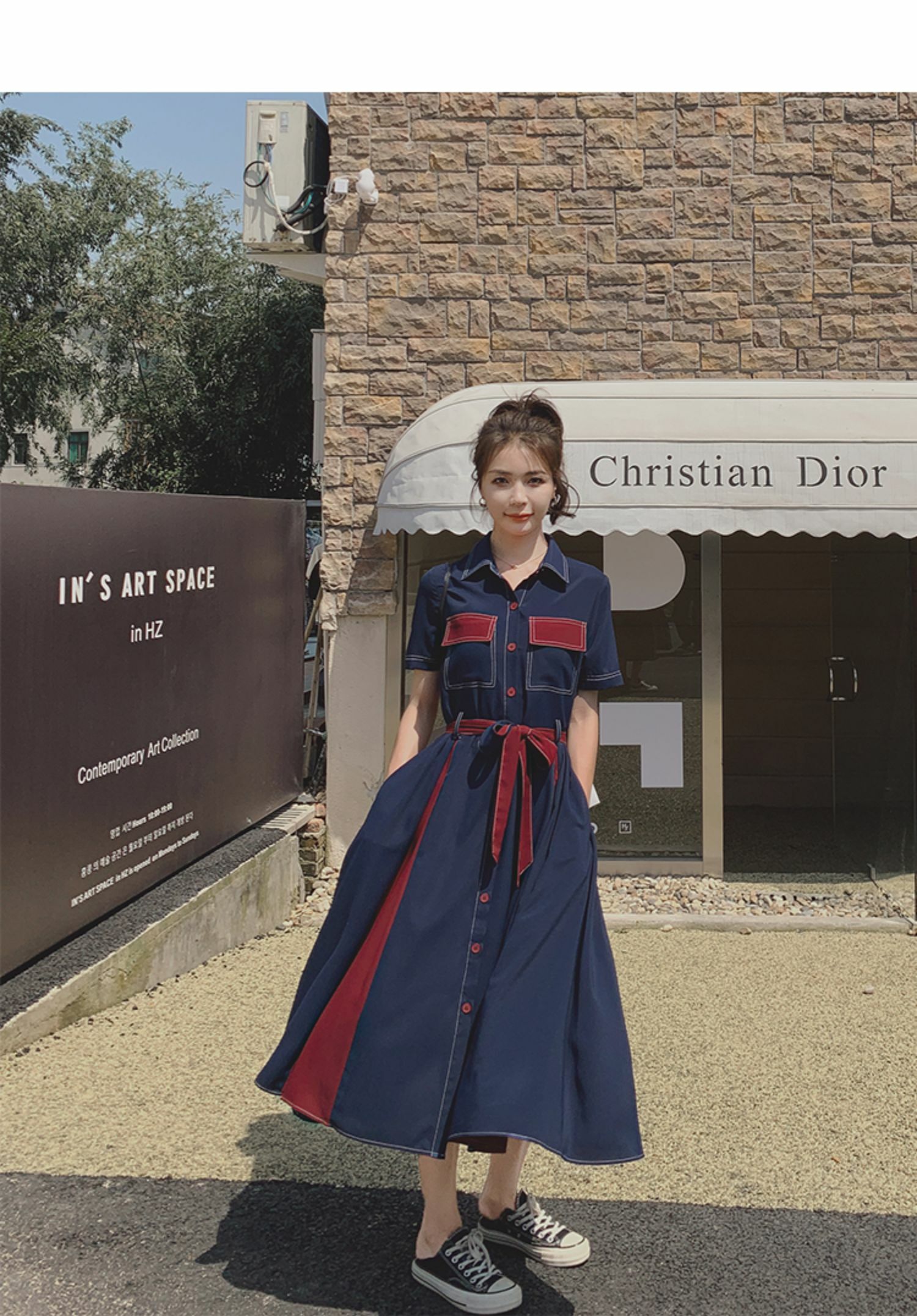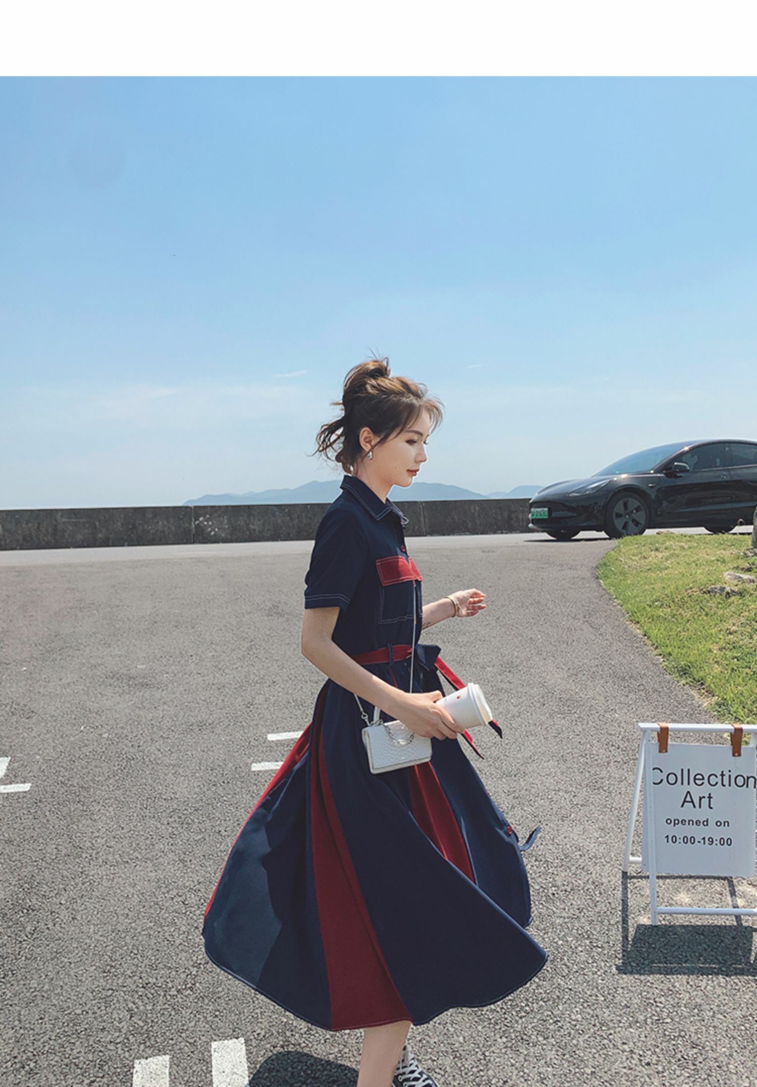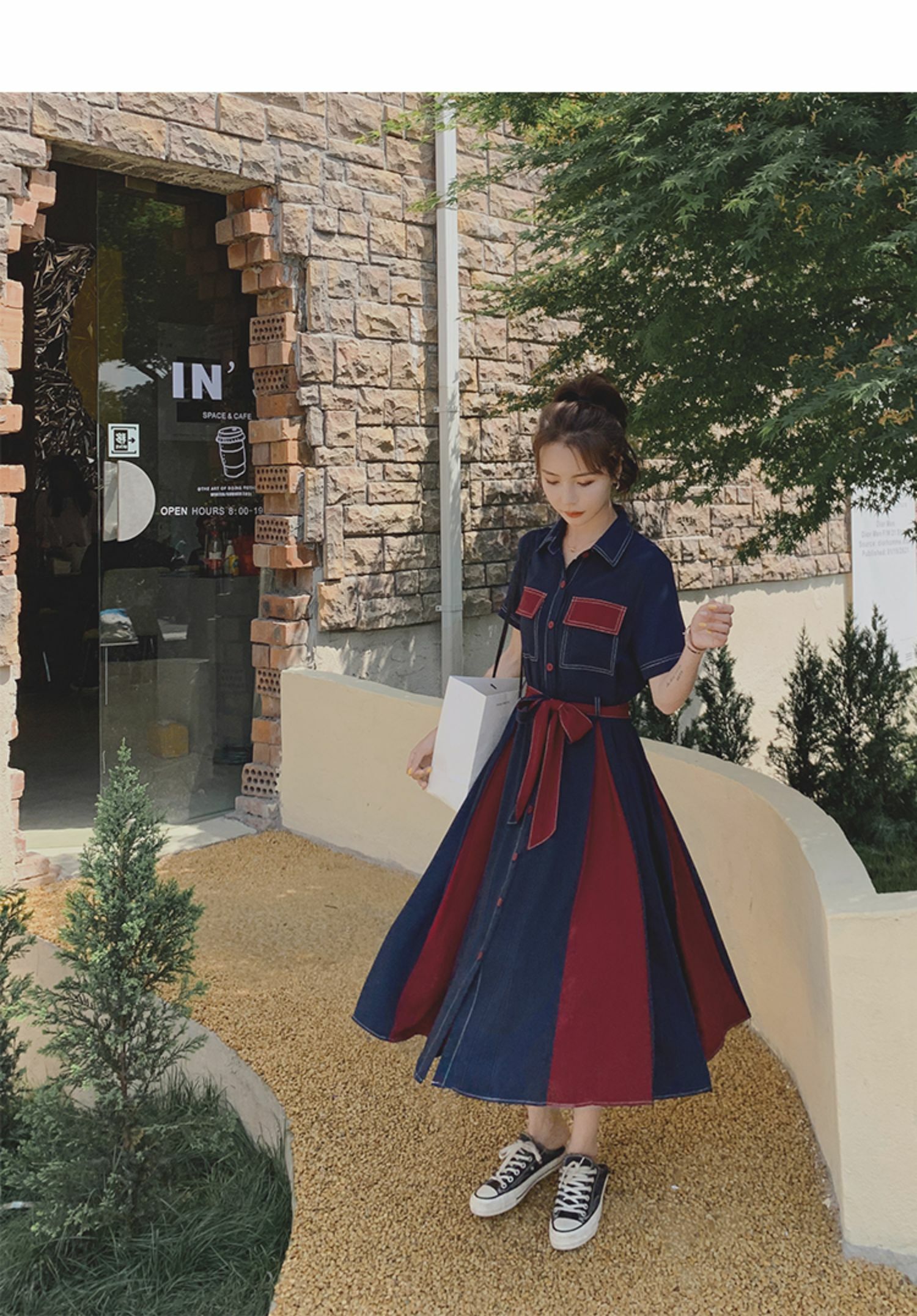 獨家訂製│韓系氣質感撞色繫帶連衣裙(04TA3429)