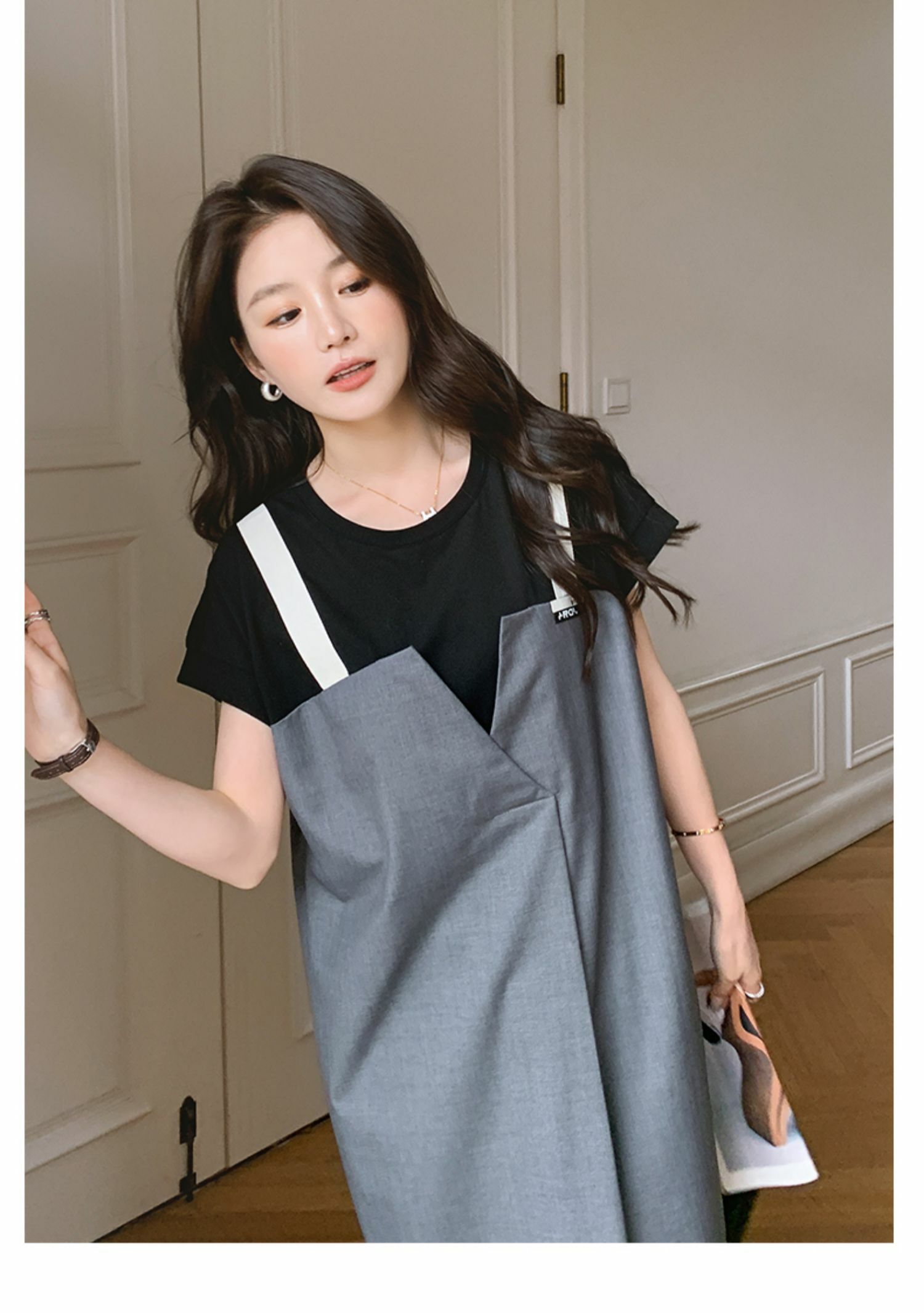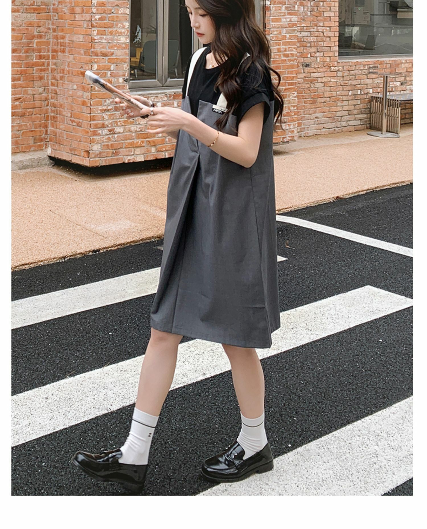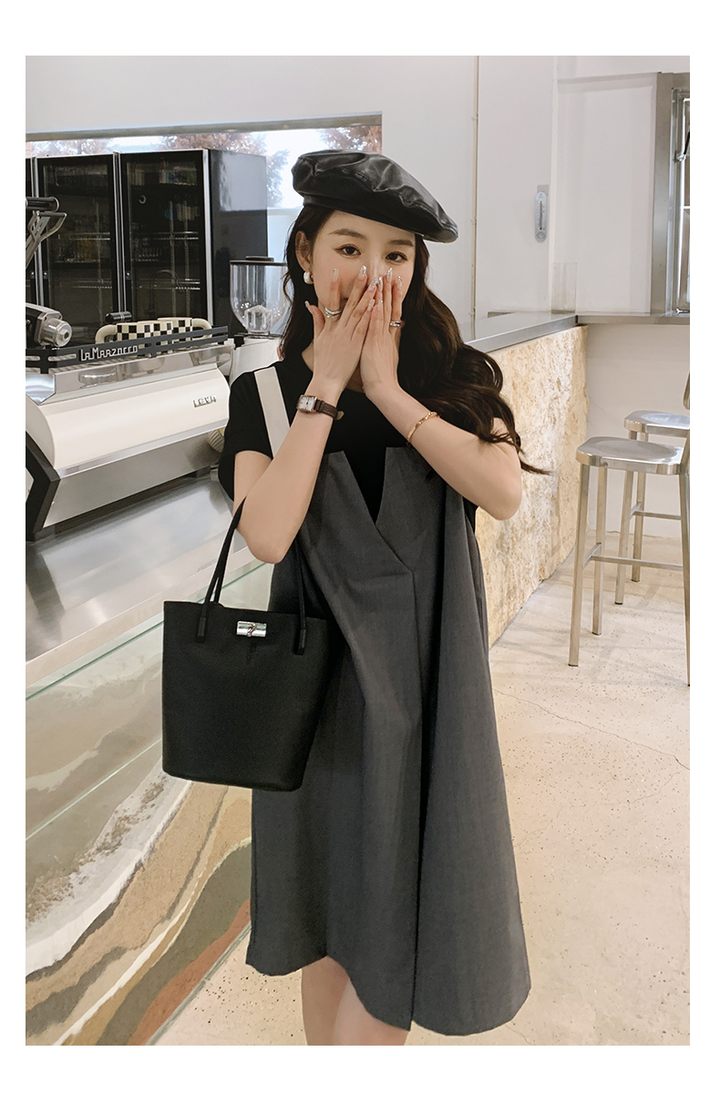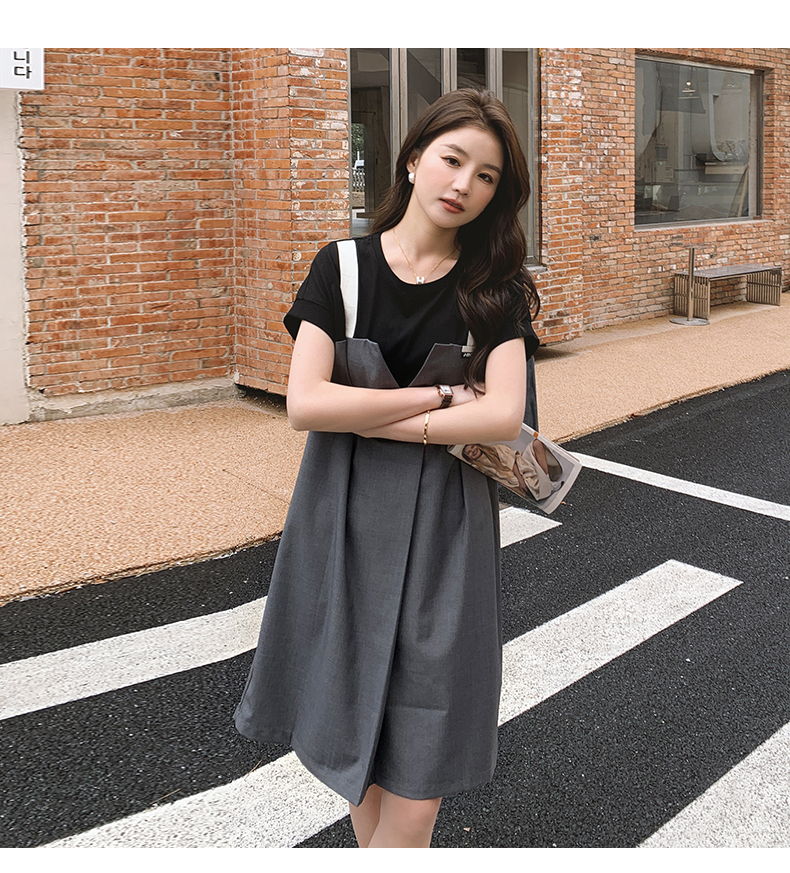 獨家訂製│韓系甜酷風拼接吊帶假兩件式連衣裙(04TA3438)