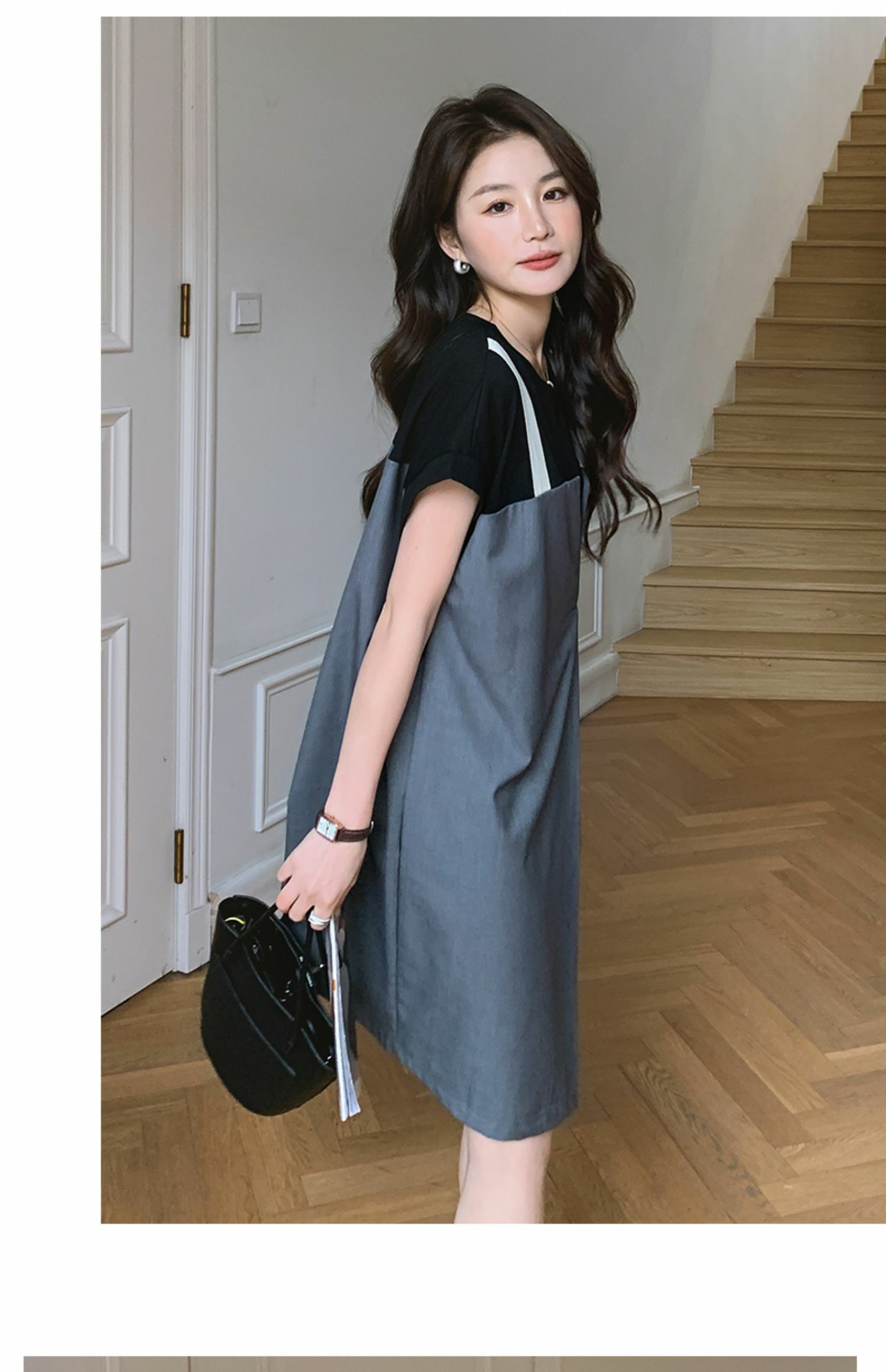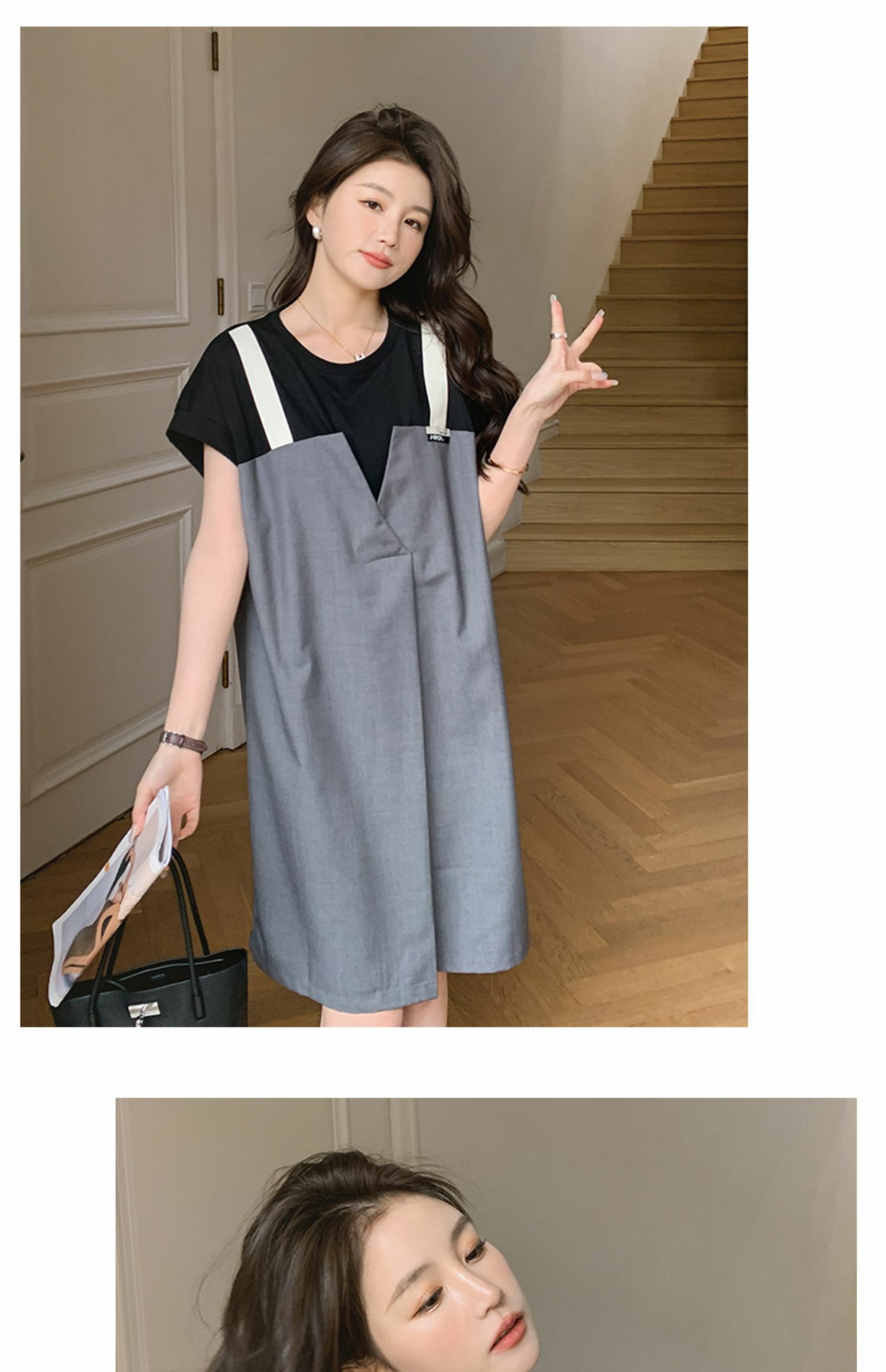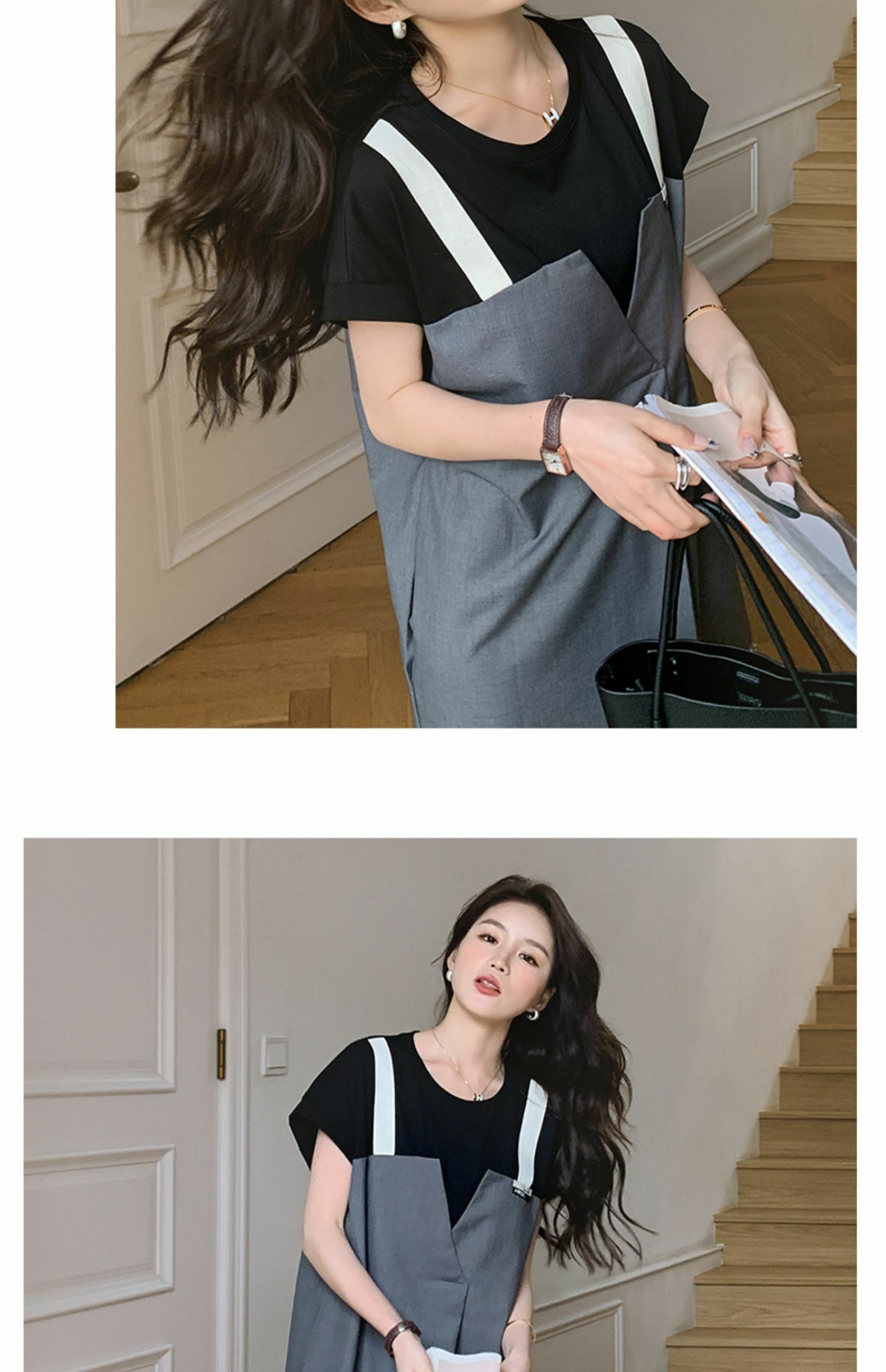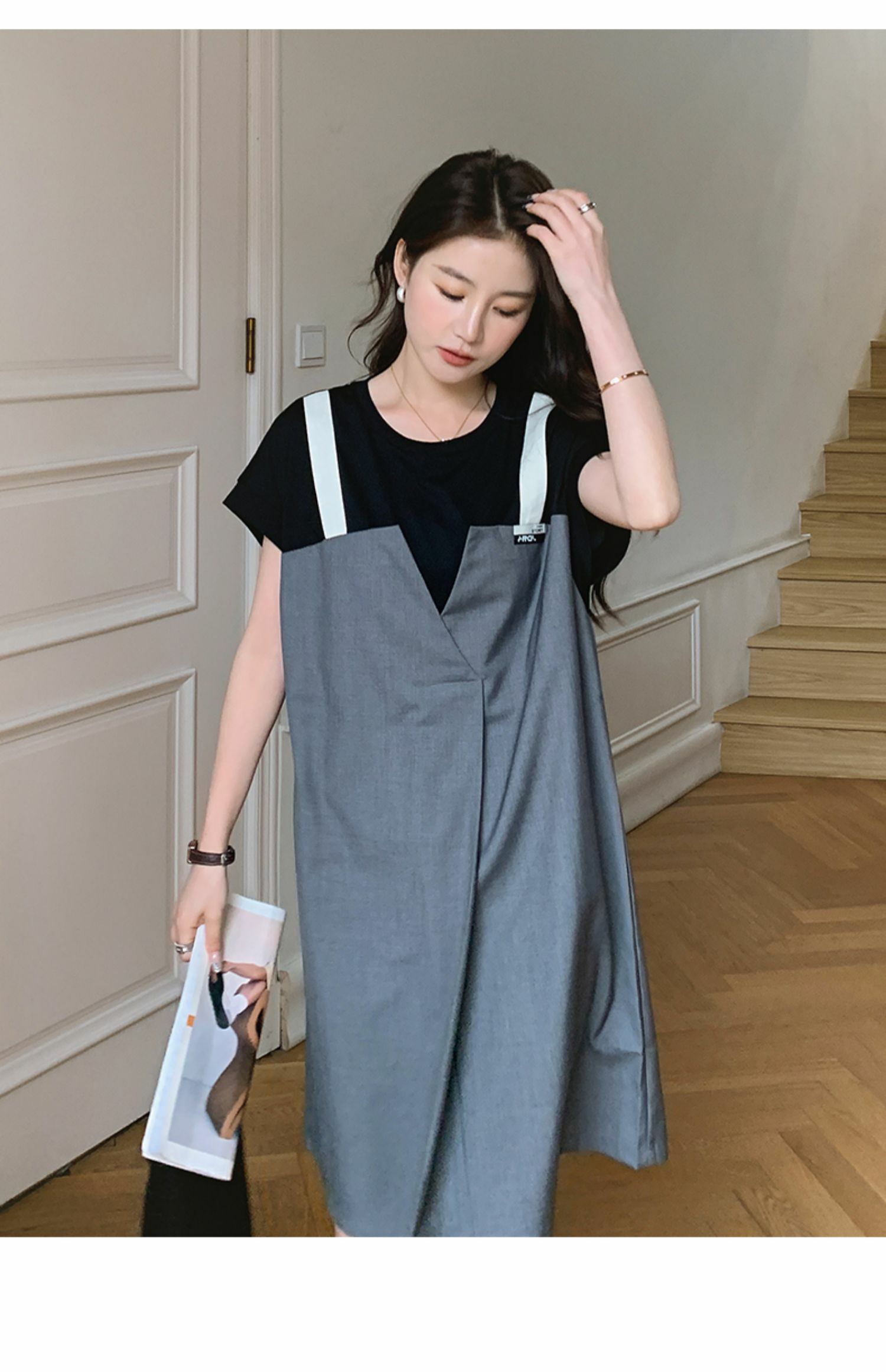 獨家訂製│韓系甜酷風拼接吊帶假兩件式連衣裙(04TA3438)