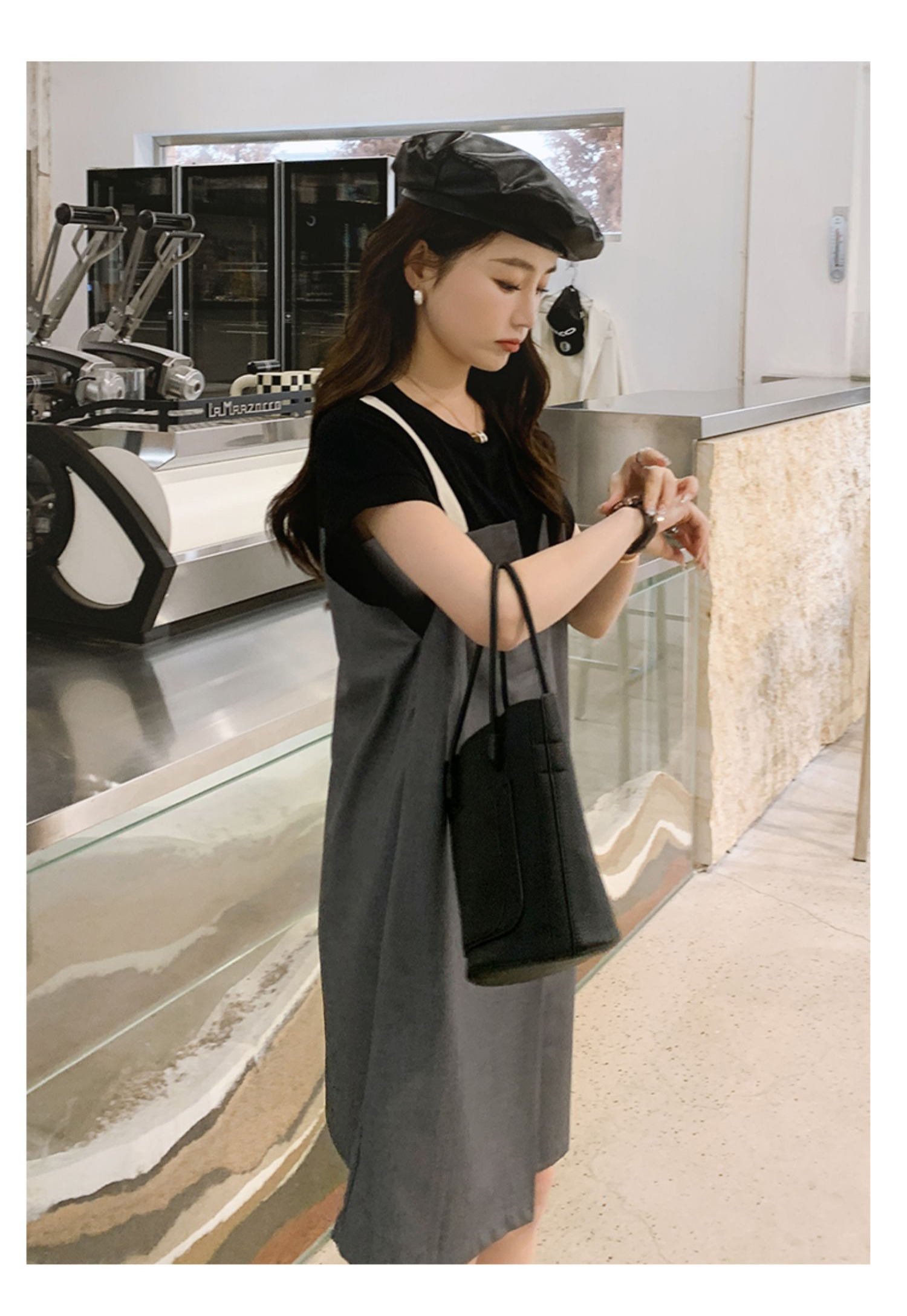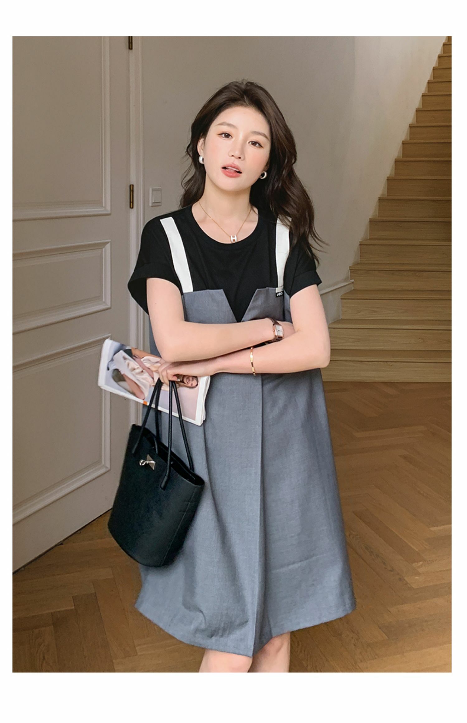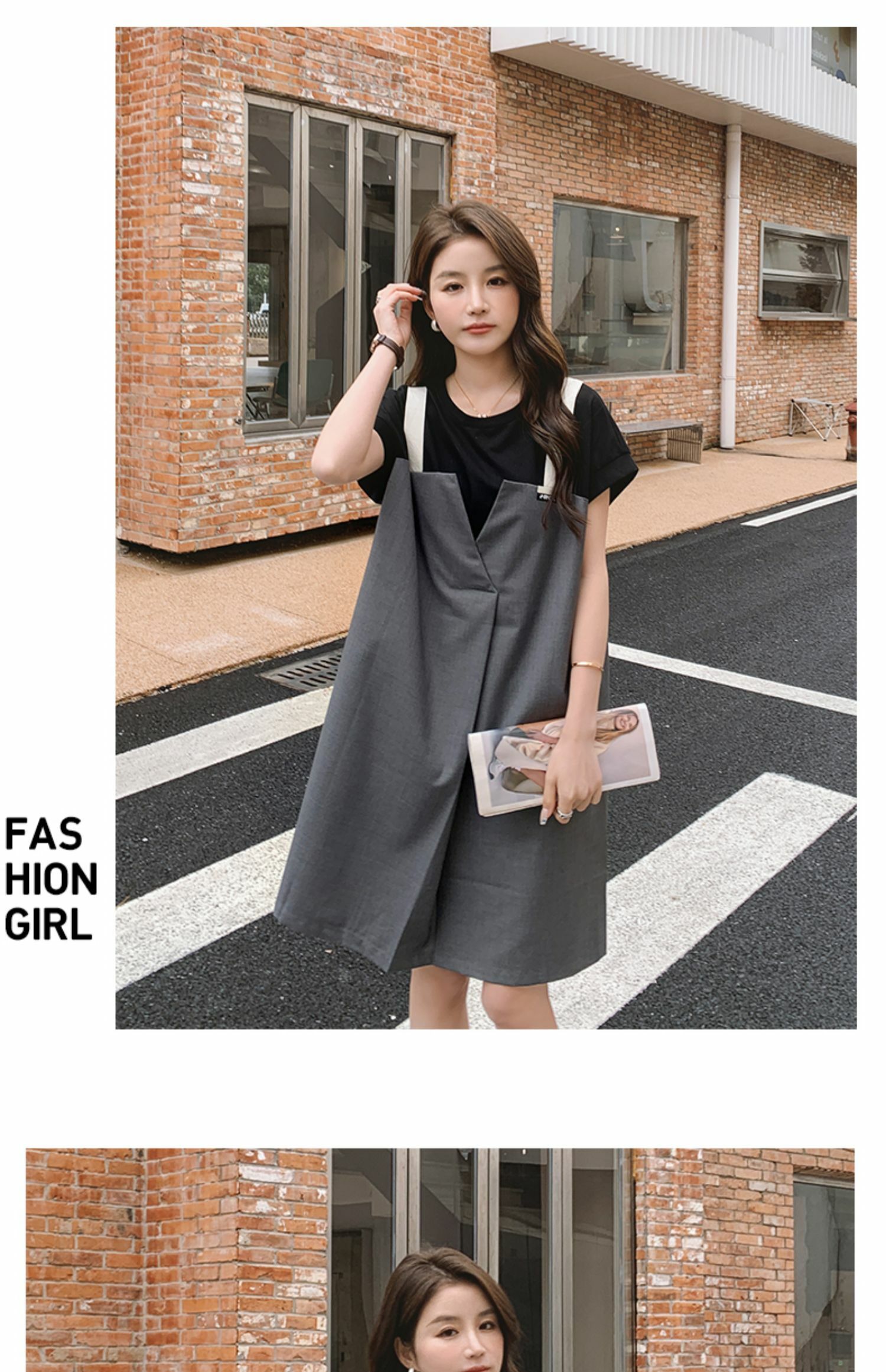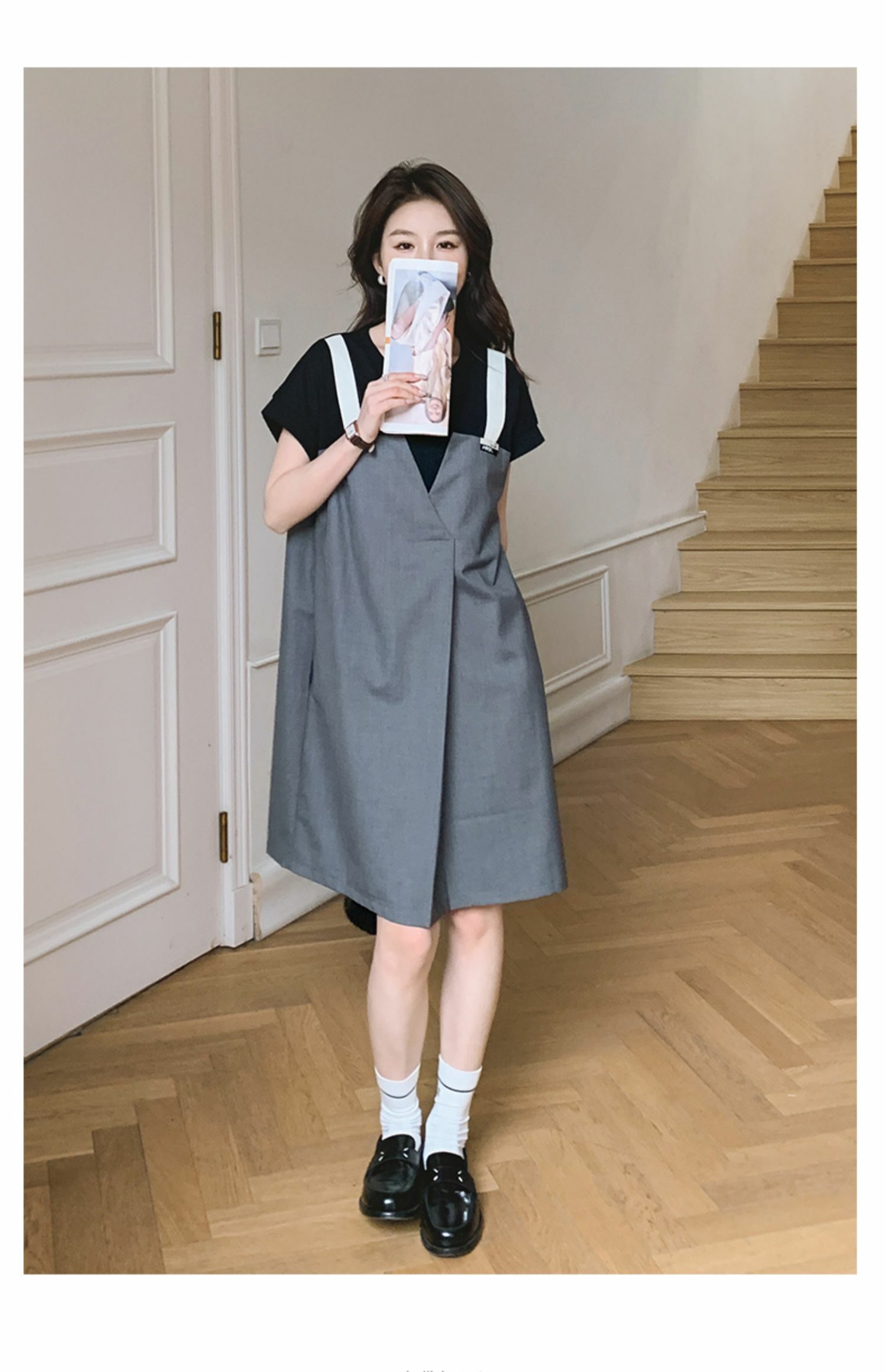 獨家訂製│韓系甜酷風拼接吊帶假兩件式連衣裙(04TA3438)