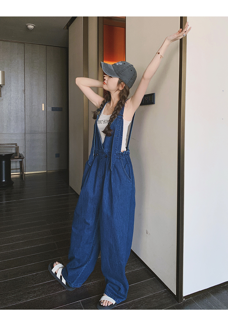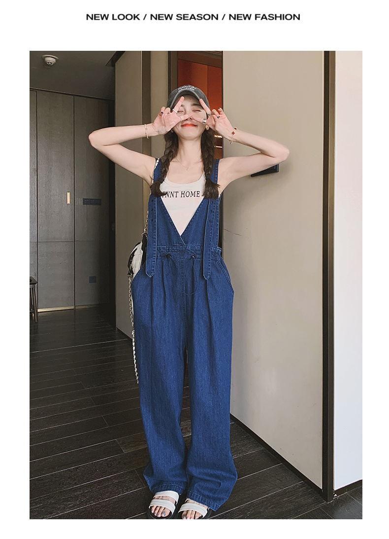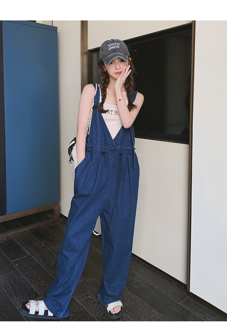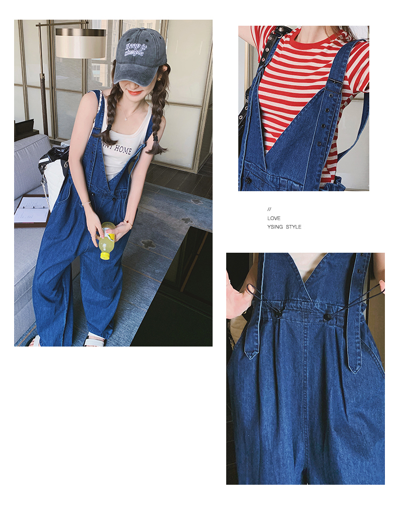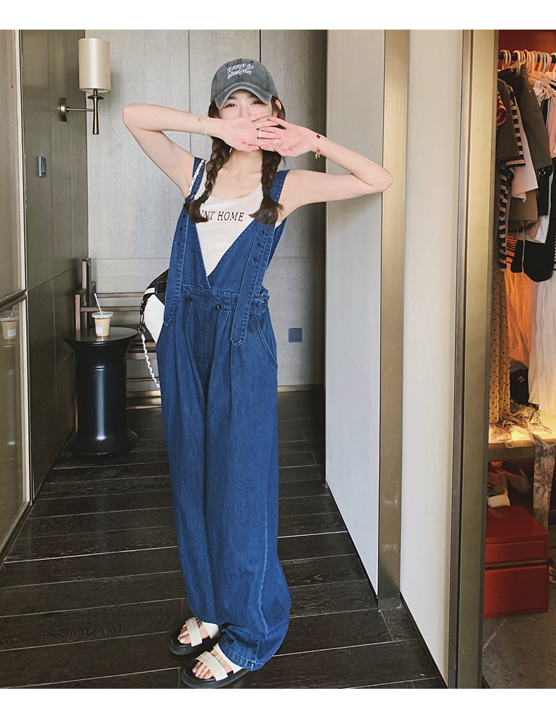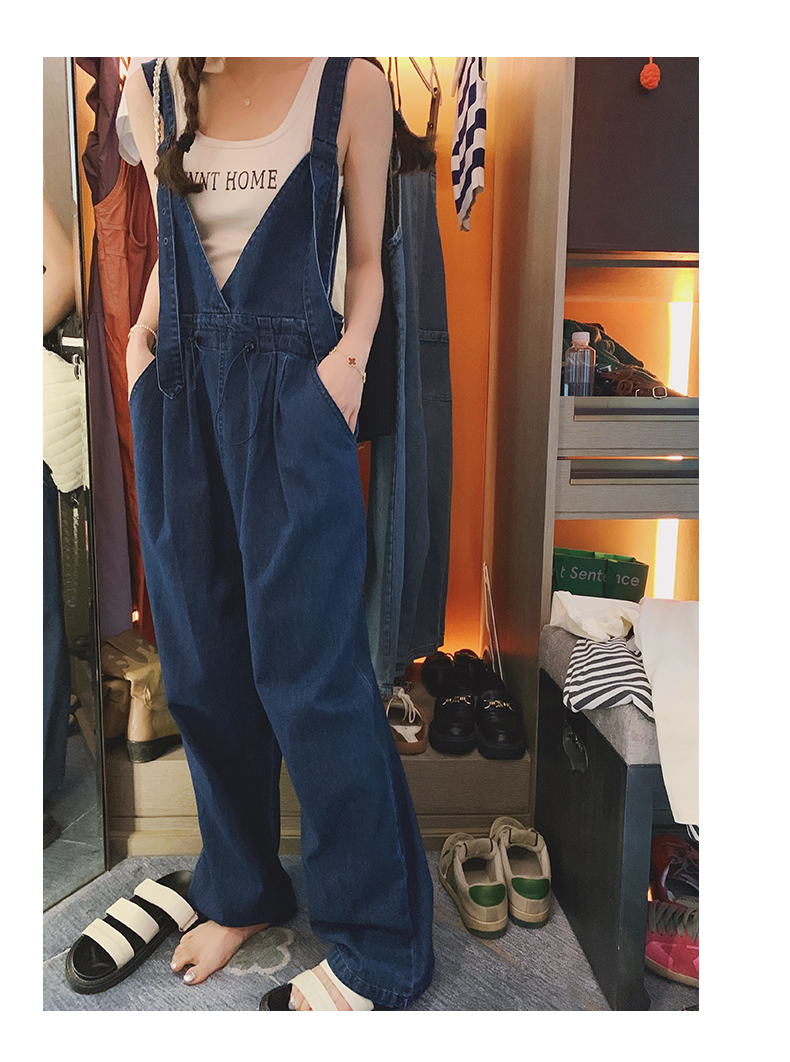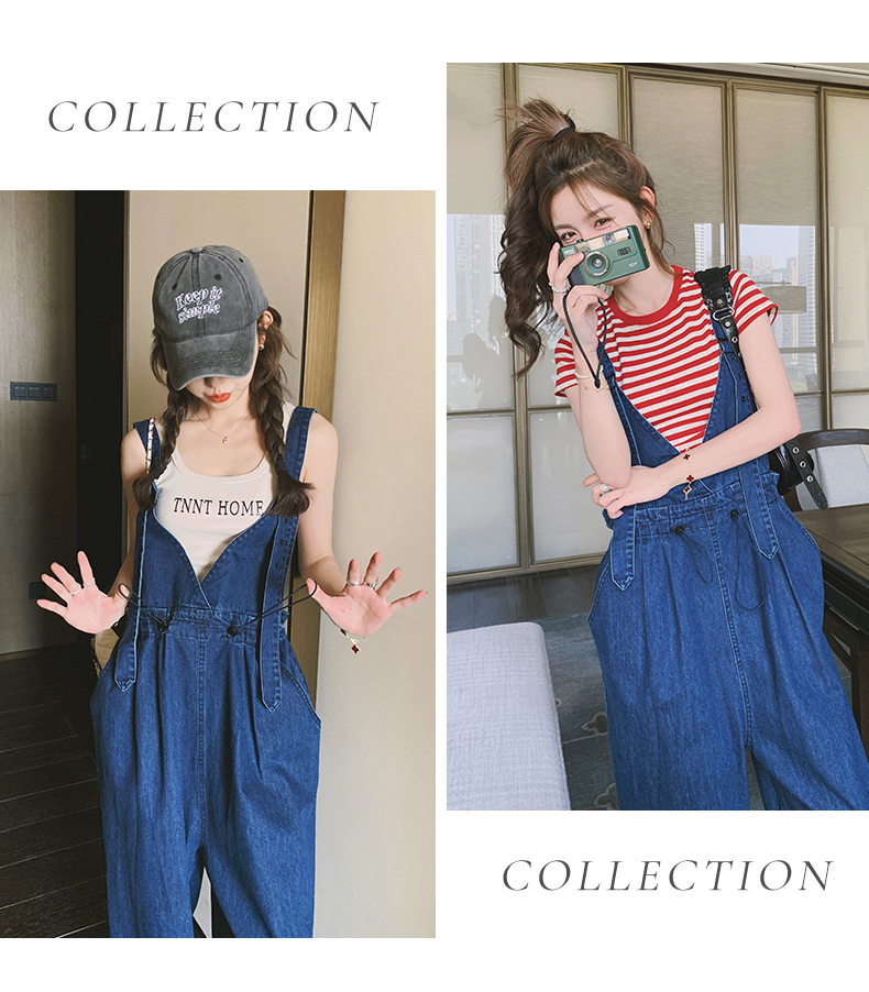 獨家訂製│韓系甜酷風抽繩收腰牛仔吊帶褲(04TA3457)