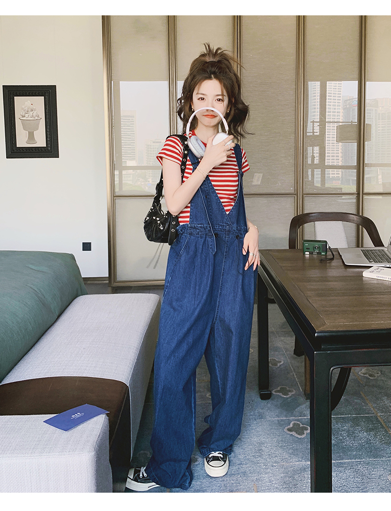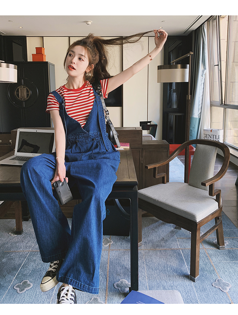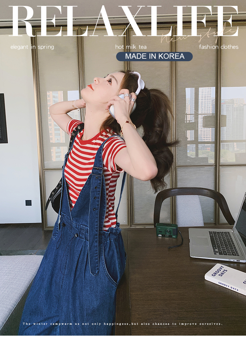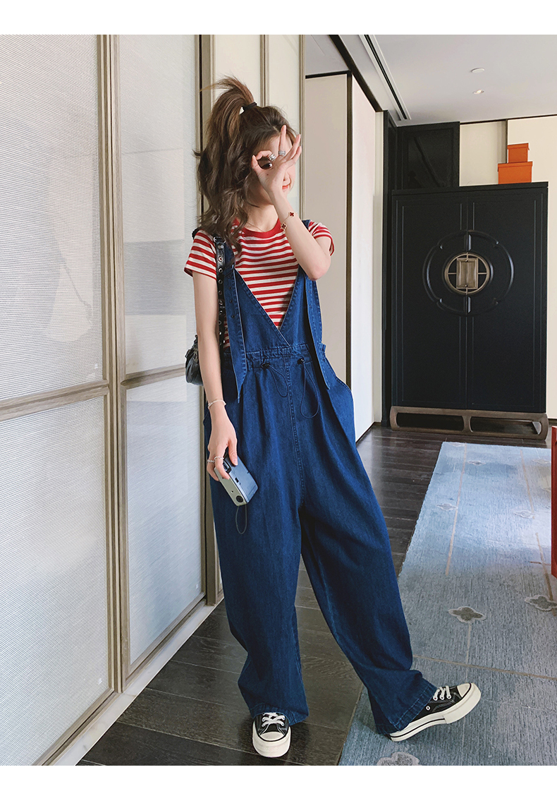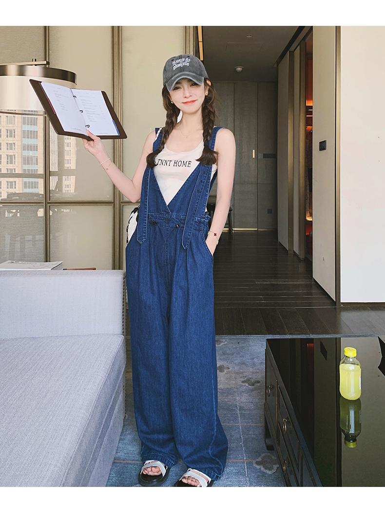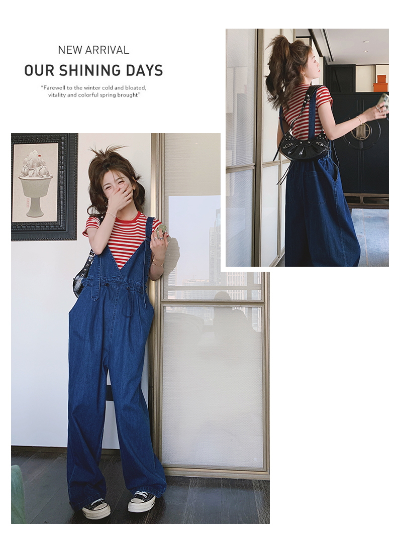 獨家訂製│韓系甜酷風抽繩收腰牛仔吊帶褲(04TA3457)